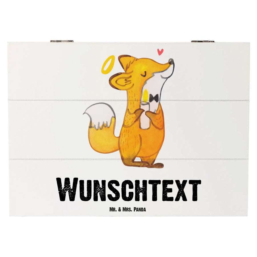 Personalised wooden chest Fox communion - 25 x 18 cm - White