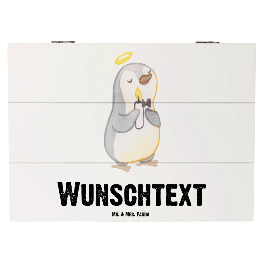 Personalised wooden chest penguin communion - 25 x 18 cm - White