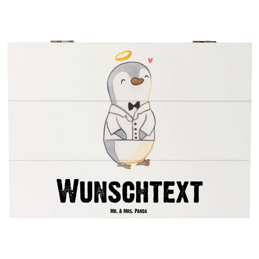 Personalised wooden chest penguin Confirmation shirt - 25 x 18 cm - White