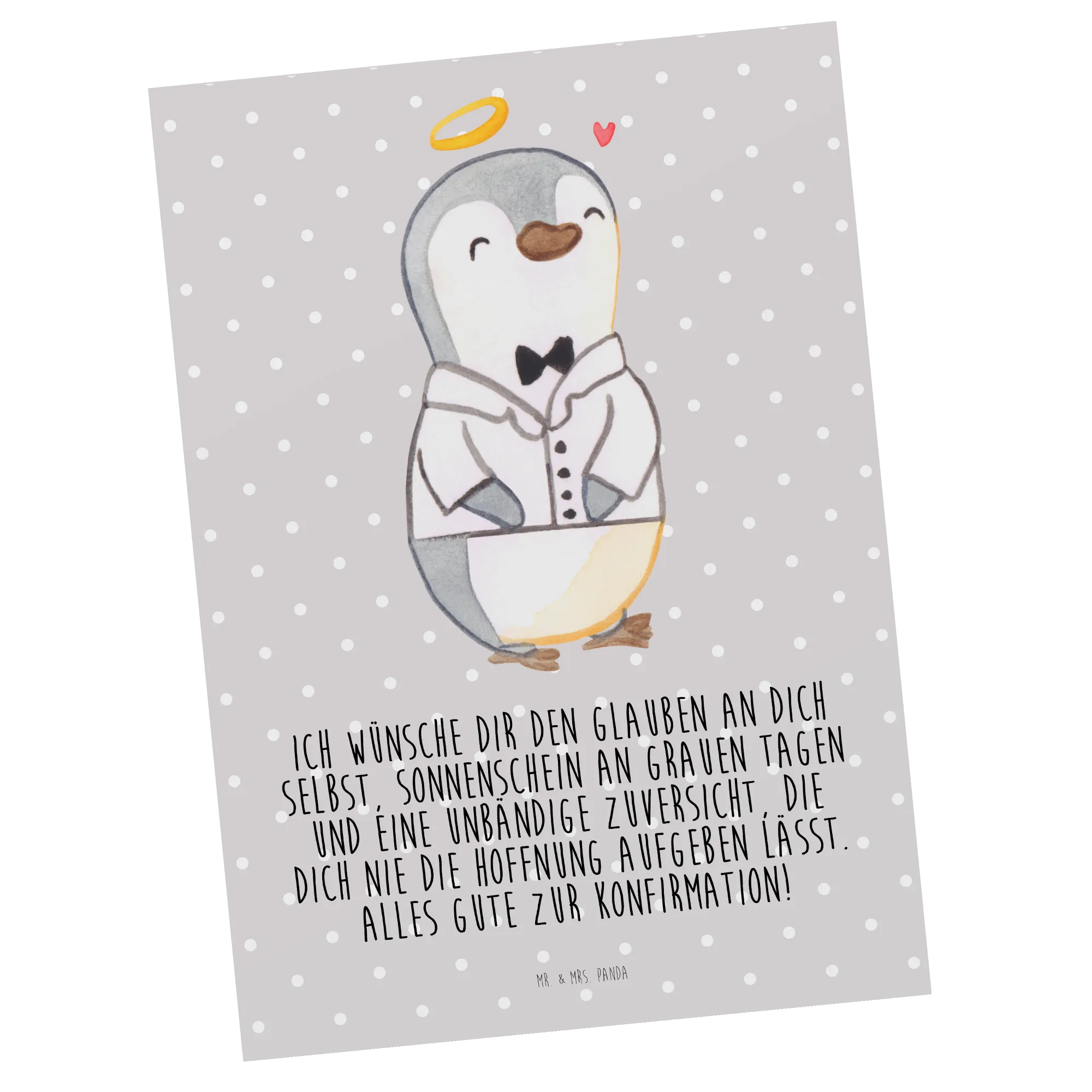 Picture this: a cute little penguin, dressed impeccably in a white shirt, stands with pride and a halo, symbolizing unwavering hope and joy. This motif beautifully represents the spirit of confirmation, reminding you to embrace your journey with confidence. I wish you the belief in yourself, sunshine on gray days, and a steadfast hope that keeps pushing you forward. Enjoy every moment of your celebration!