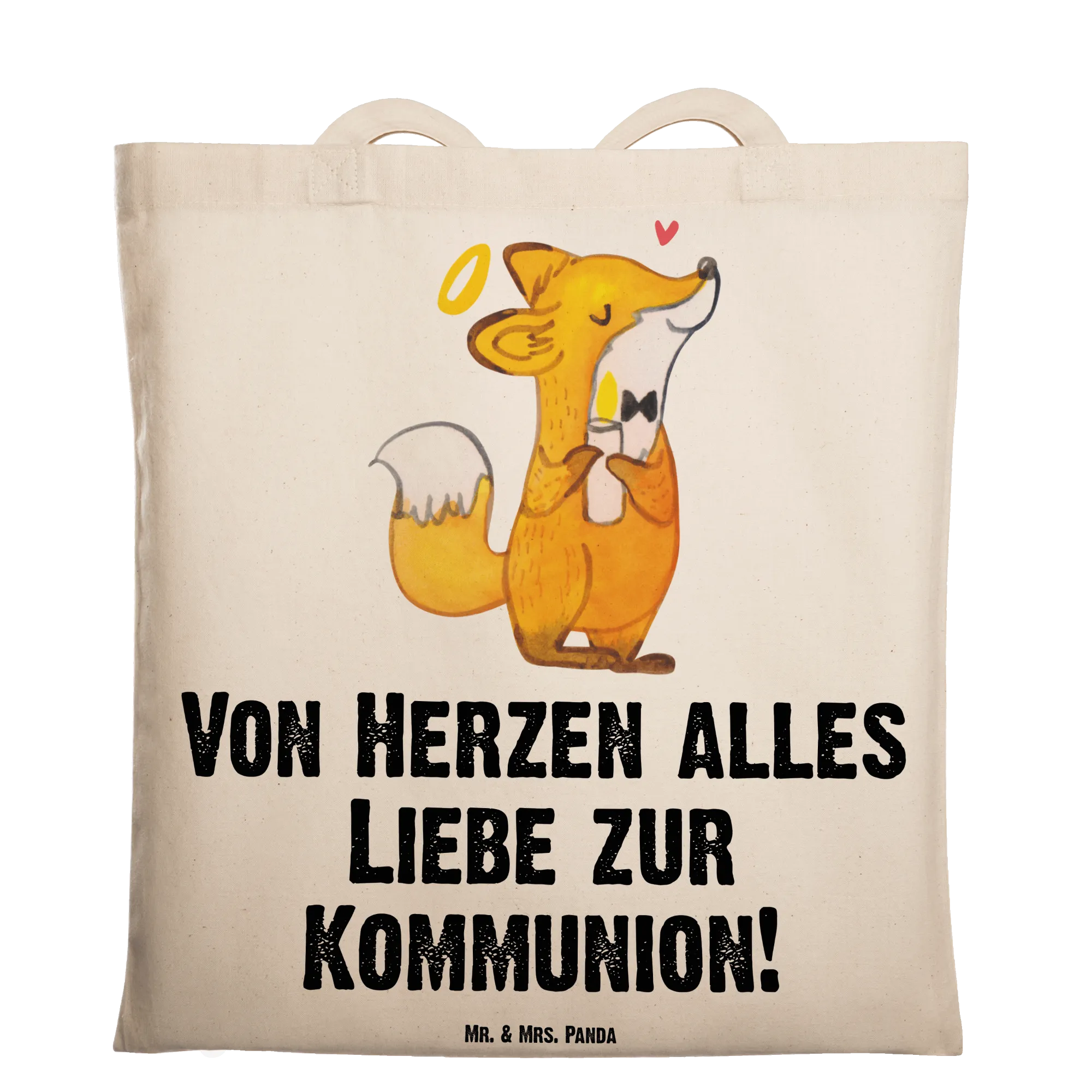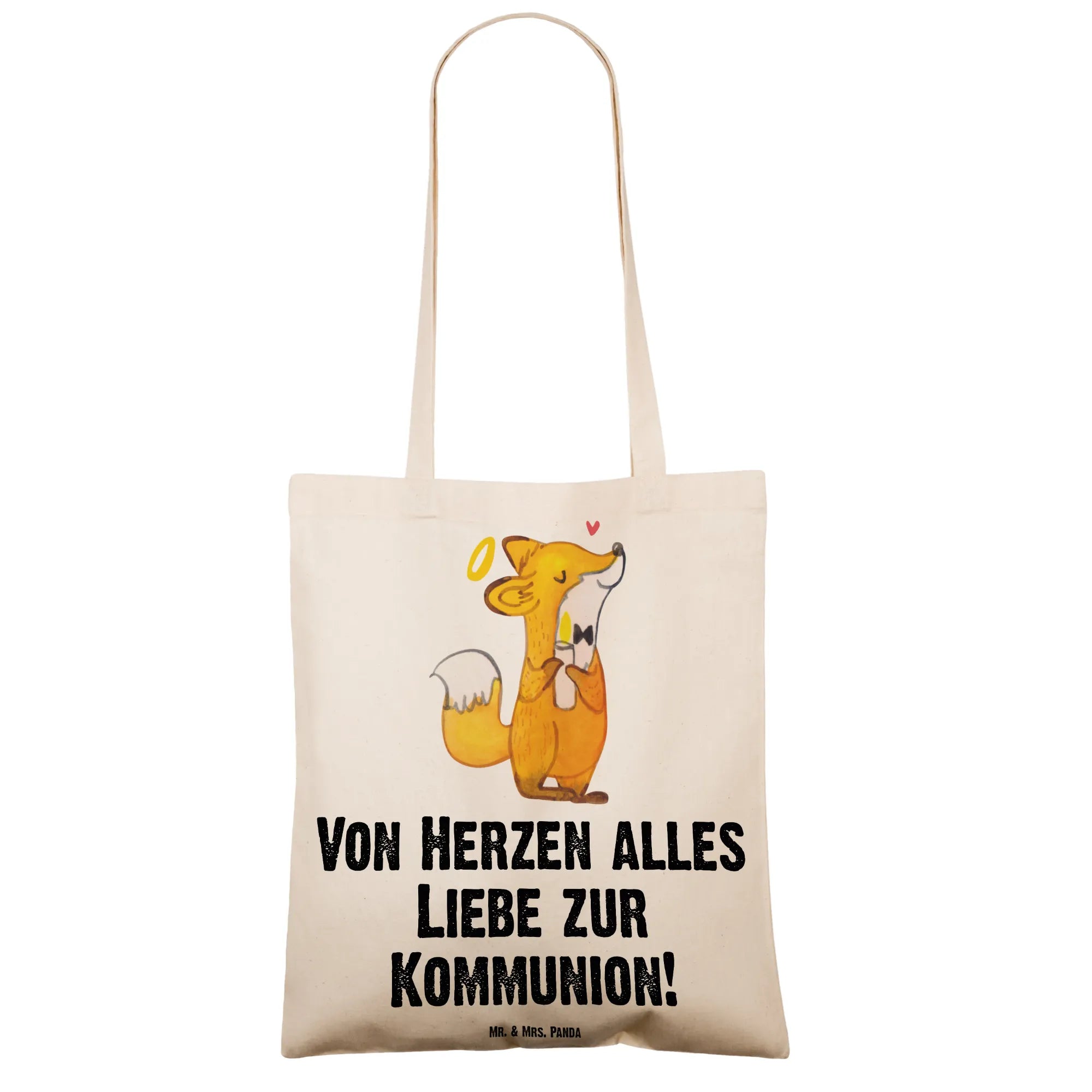 Meet our adorable little fox, beaming with joy as he holds a flickering candle and sports a shining halo. This charming motif captures the essence of the special day, celebrating faith, love, and the journey of belief that comes with Communion. Our fox stands as a proud reminder of the love from God, the bonds created in faith, and the cherished moments shared during this sacred occasion. The slogan 'Von Herzen alles Liebe zur Kommunion!' perfectly echoes this sentiment, making it a heartfelt gift to express love and gratitude on this significant day. Whether it's a thank-you gesture or a gift, this motif embodies warmth, affection, and the cherished values of community and belief.