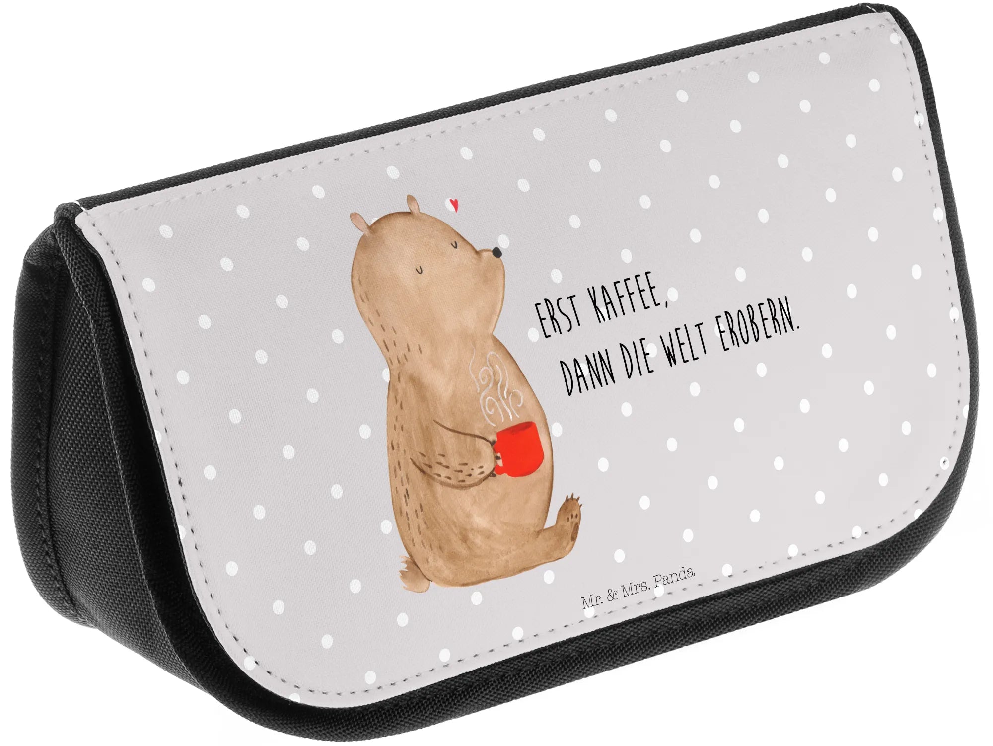 Cosmetics bag bear Coffee - with a saying - Grey Pastel