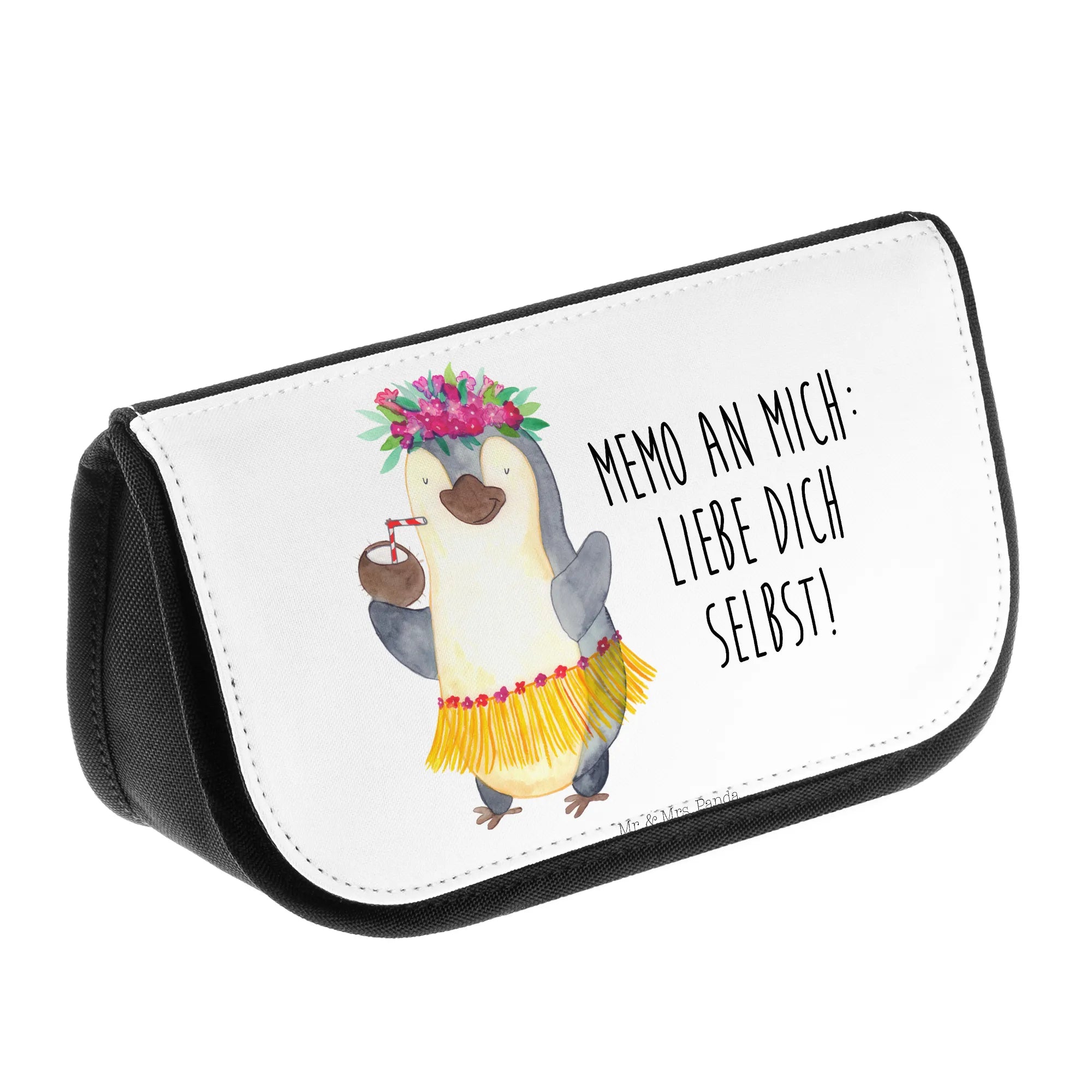 Cosmetics bag Penguin coconut - with saying - White