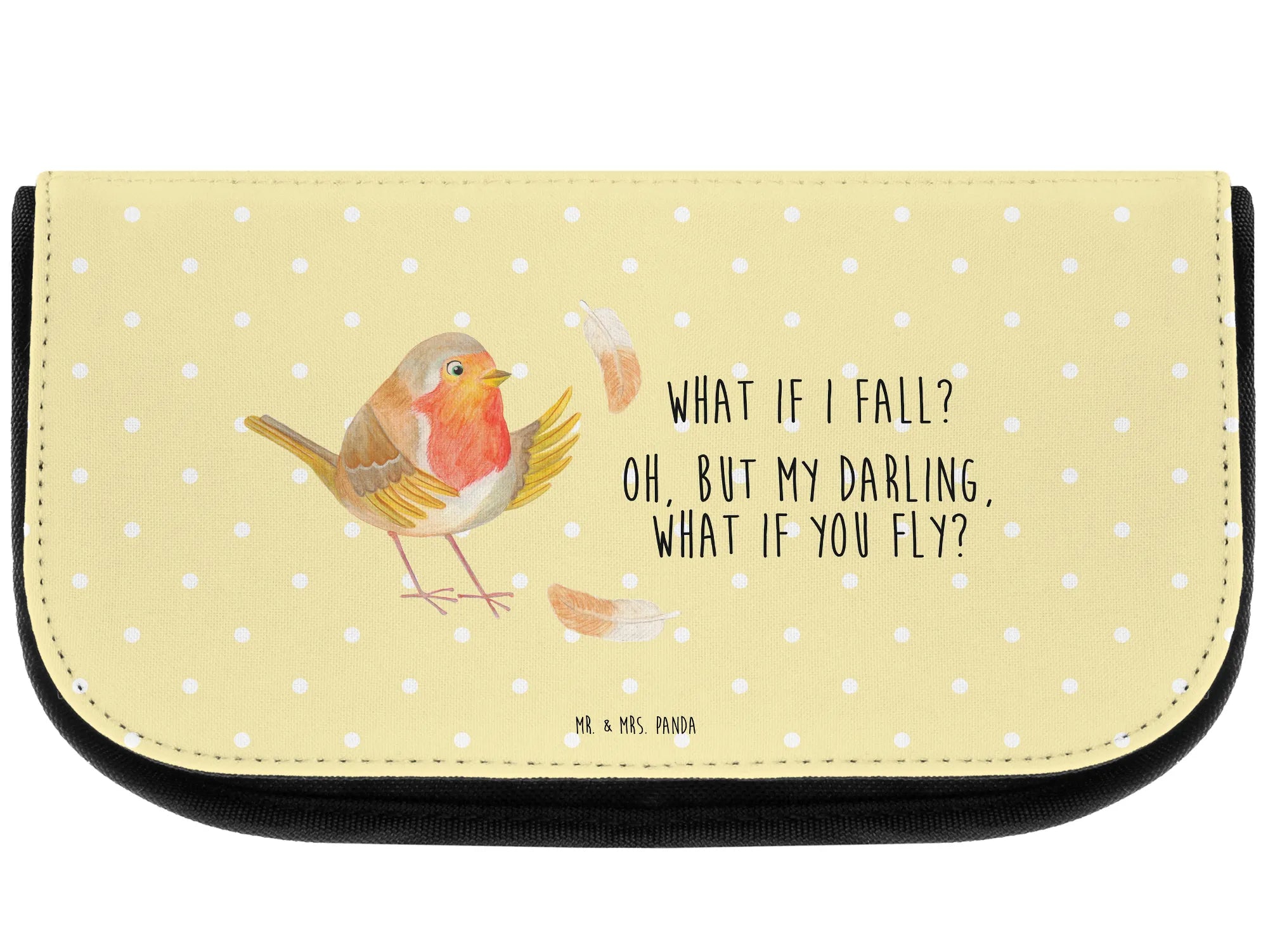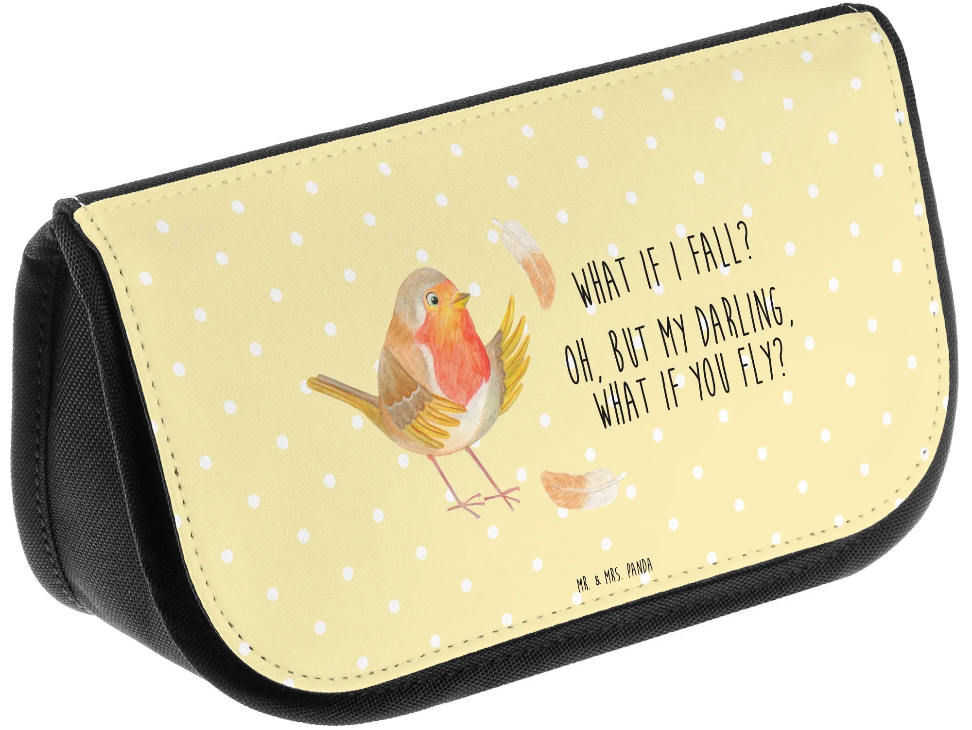 Cosmetics bag robin feathers - with a saying - Yellow Pastel
