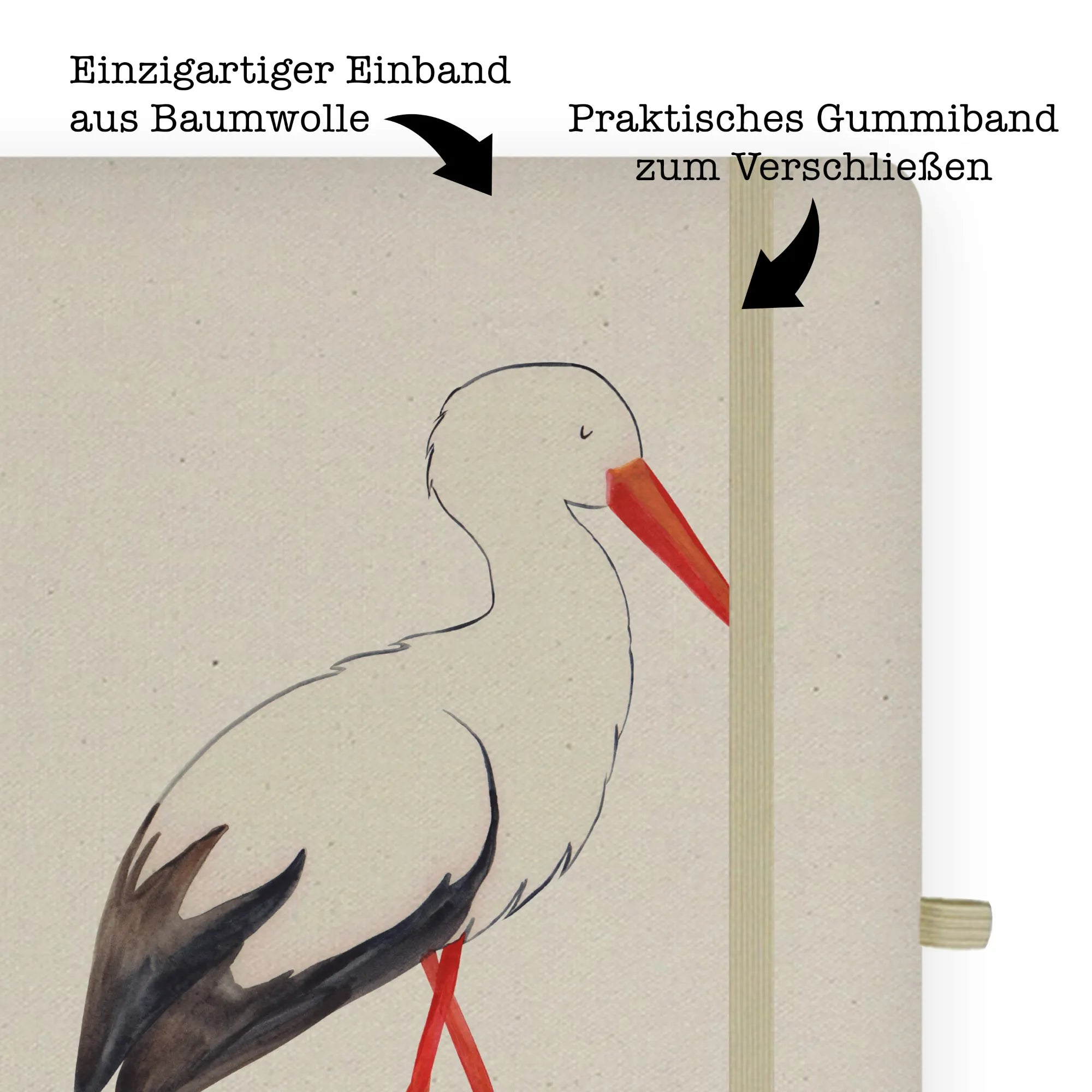 Cotton notebook Stork - DIN A4 Baumwoll Notizbuch - with saying