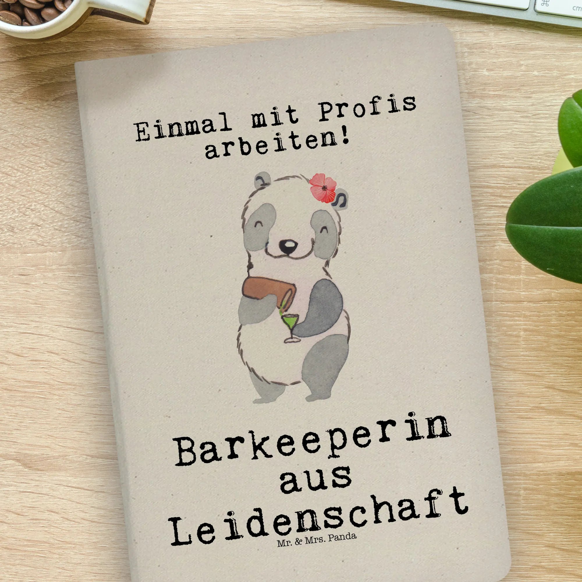 DIN A4 Baumwoll Notizbuch „Barkeeperin aus Leidenschaft“ – das liebevoll gestaltete Notizbuch von Mr. & Mrs. Panda für alle, die das Mixen von Cocktails mit Leidenschaft leben. Das verspielte Motiv zeigt unsere freundliche Mrs. Panda als Barkeeperin mit Shaker und Rumflasche und bringt jedem Geschenk eine persönliche, fröhliche Note.