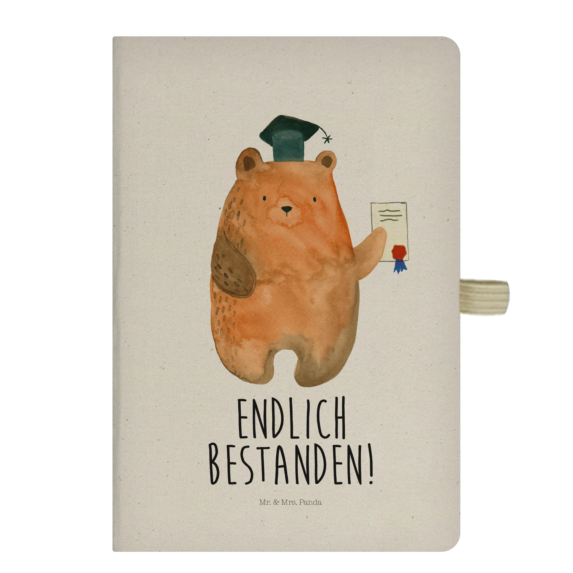 Ein kleines Geschenk mit großer Aussage: Das DIN A5 Baumwoll Notizbuch "Prüfungsbär" aus der Bär-Kollektion von Mr. & Mrs. Panda ist das ideale Geschenk für alle, die gerade eine Prüfung bestanden oder einen wichtigen Abschluss gefeiert haben. Der niedliche Prüfungsbär mit dem Schriftzug "Endlich bestanden!" bringt ein Lächeln und erinnert täglich an die eigene Leistung.