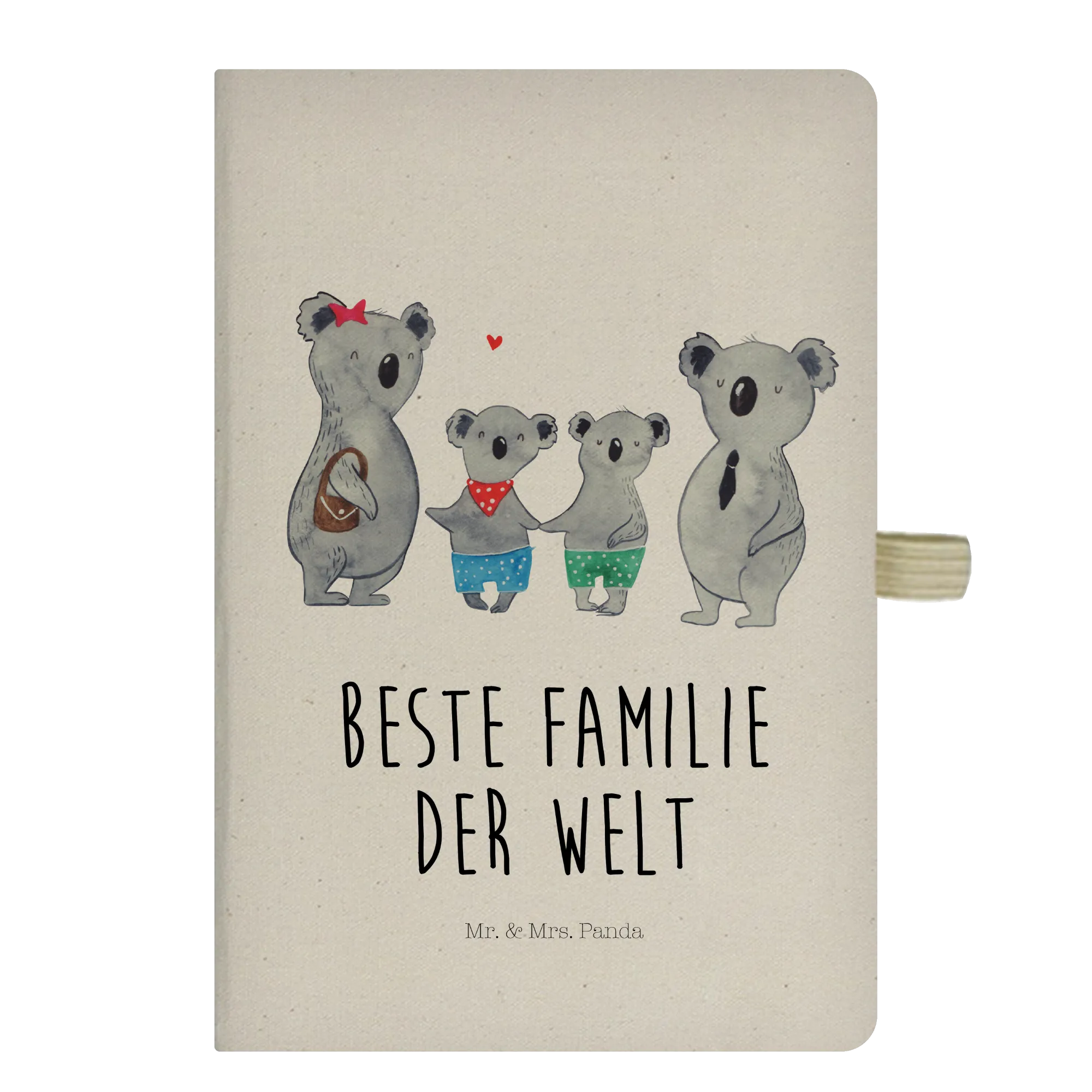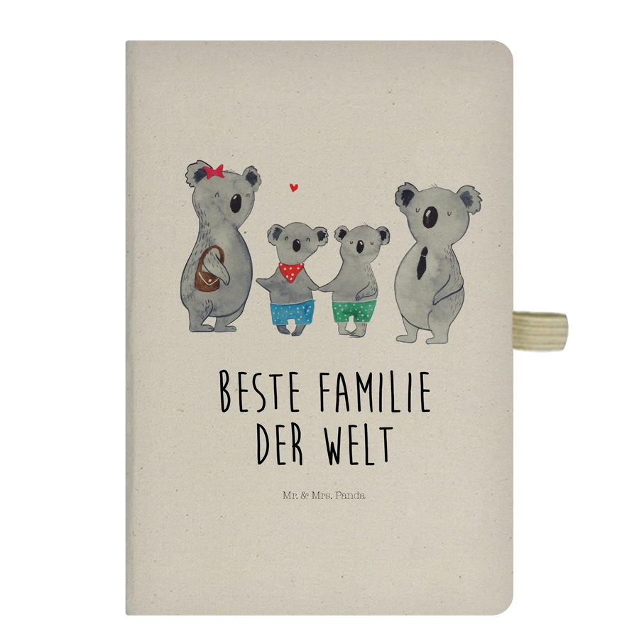 Cotton notebook Koala family with two kids - DIN A5 Cotton Notebook - with a saying