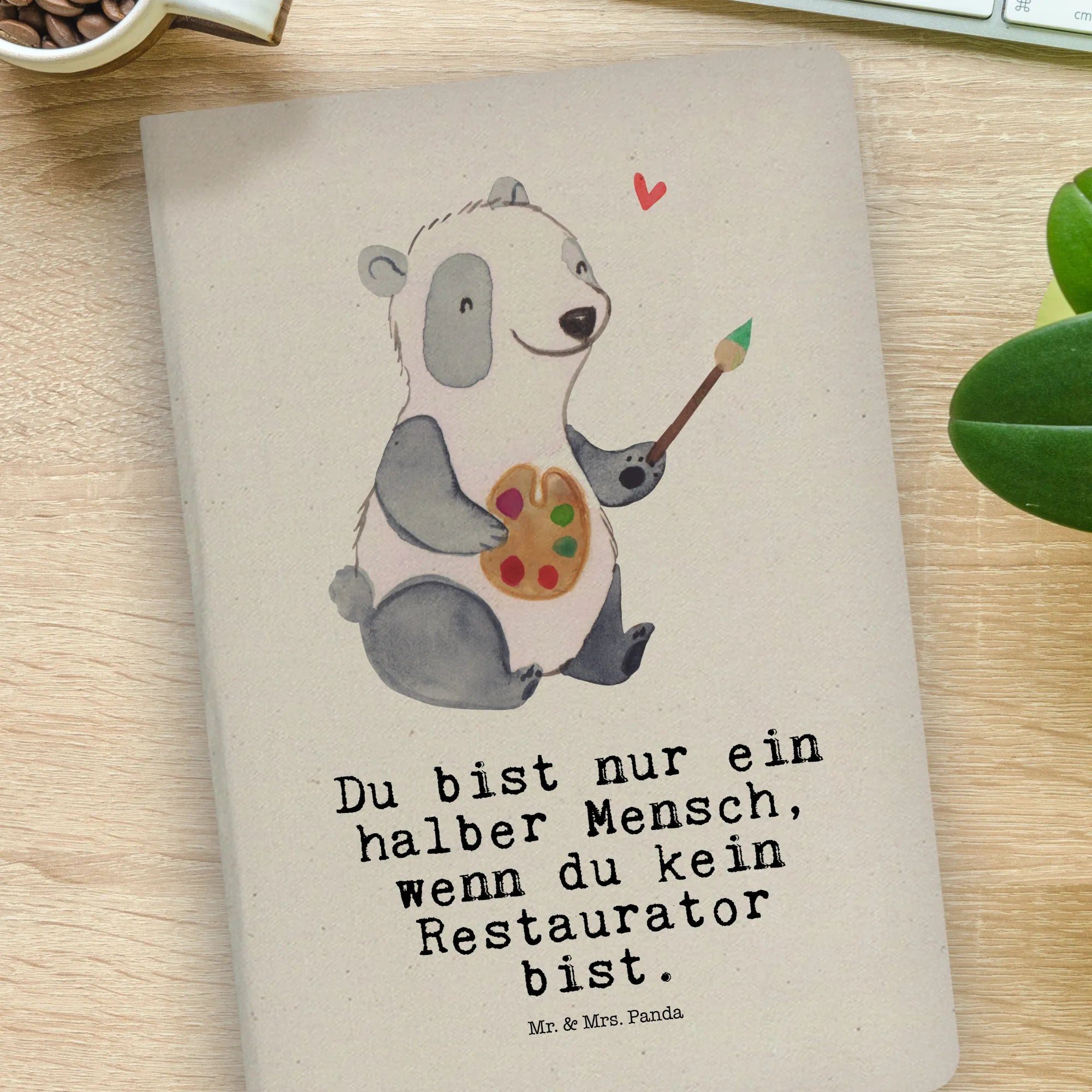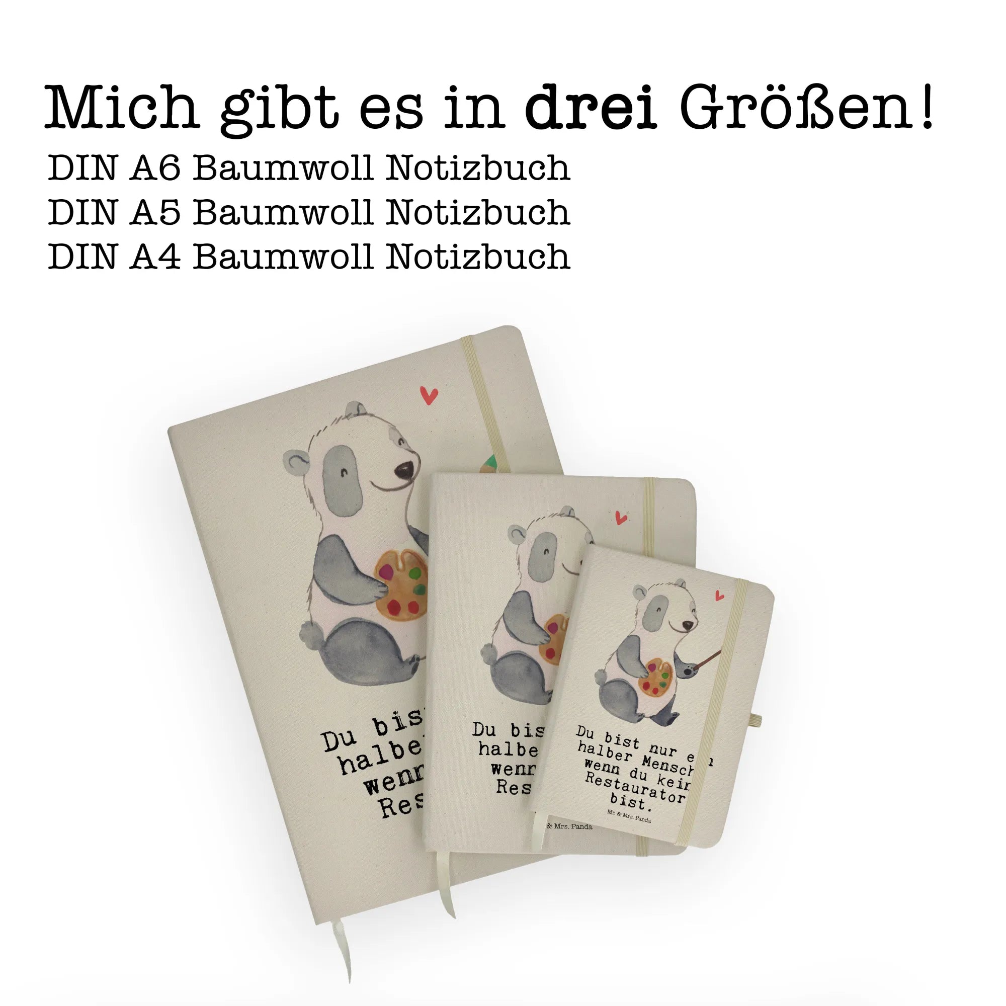Suchst du das perfekte Geschenk für einen Restaurator? Unser DIN A6 Baumwoll Notizbuch „Restaurator mit Herz“ von Mr. & Mrs. Panda verbindet charmantes Design mit praktischen Details. Der süße Panda mit Farbpalette und Pinsel und der Spruch „Du bist nur ein halber Mensch, wenn du kein Restaurator bist.“ bringen Humor und Wertschätzung zugleich.