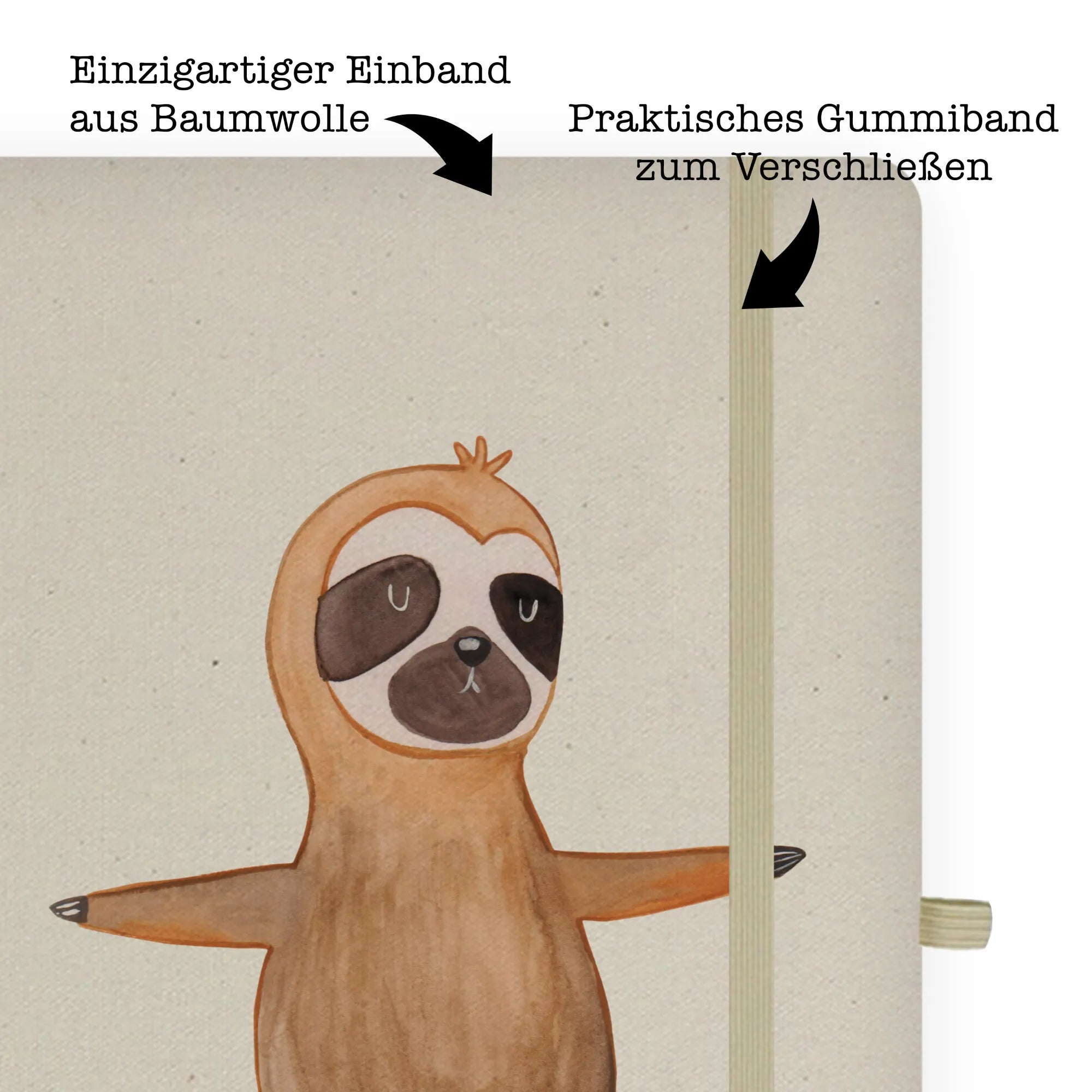 Cotton notebook sloth yoga - DIN A4 Baumwoll Notizbuch - with saying