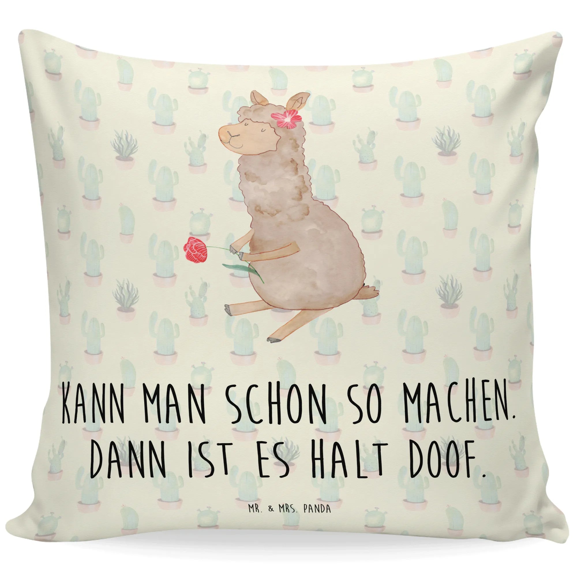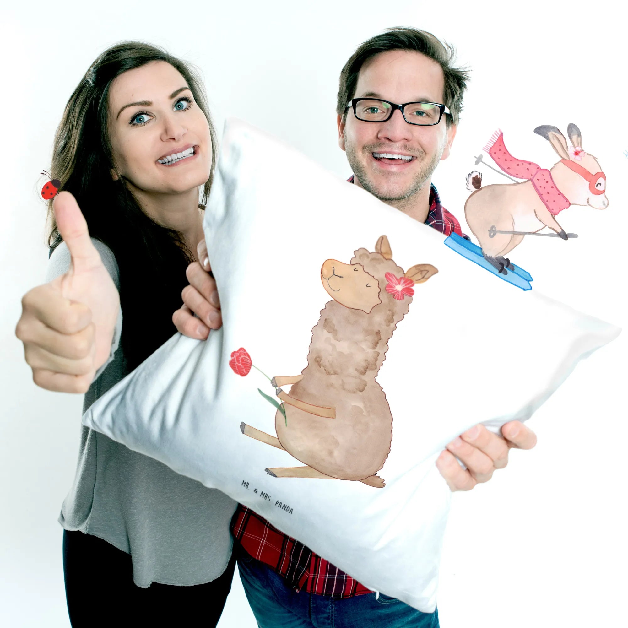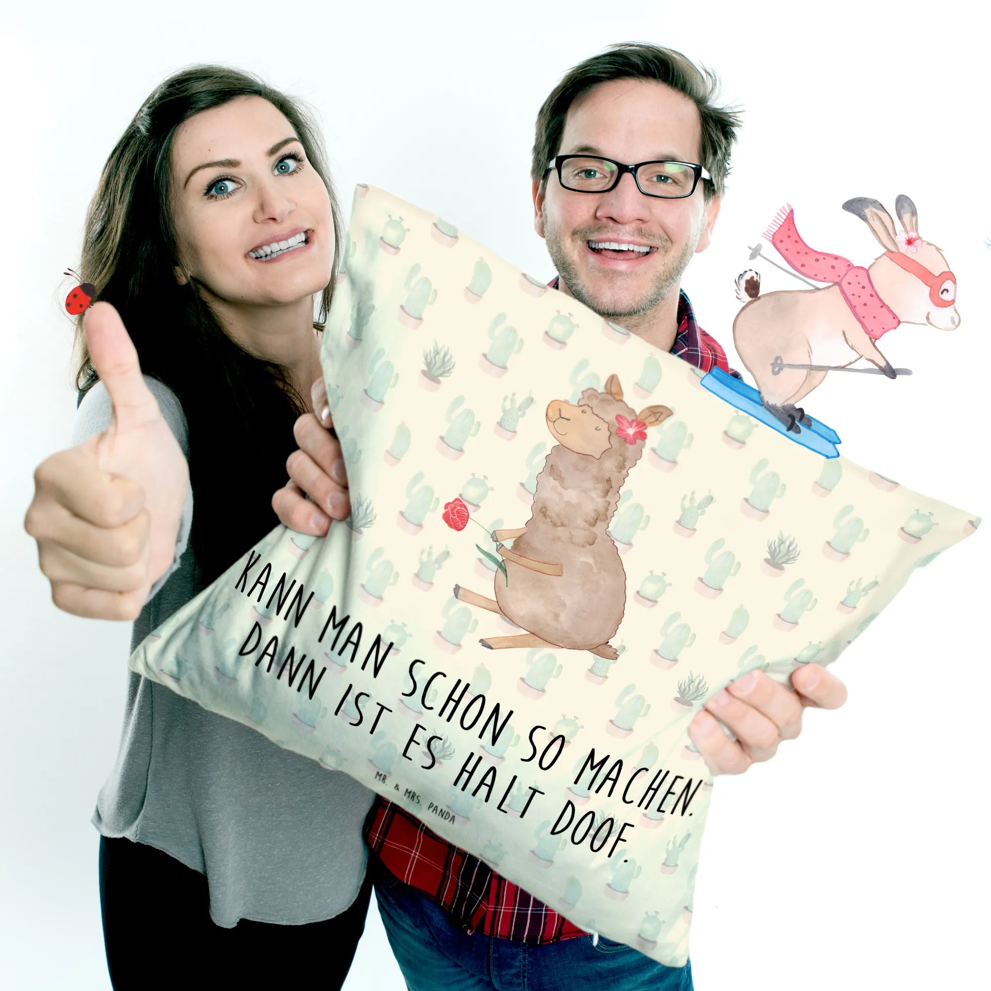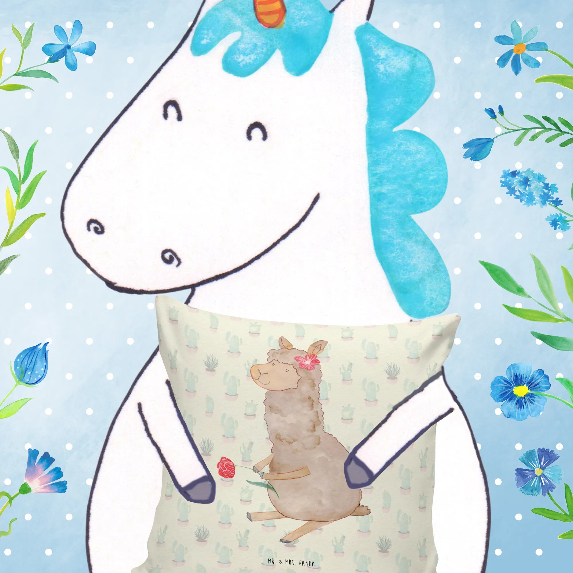 As part of our special Alpaca collection, this cushion has been lovingly designed by Mrs. Panda, ensuring that each detail – from the adorable alpaca to the sweet flower in its hair – brings a smile to your face. The motif serves as a delightful reminder to enjoy the beauty of nature, which is particularly appealing for those who appreciate the outdoors or have a keen eye for unique, artistic home decor.