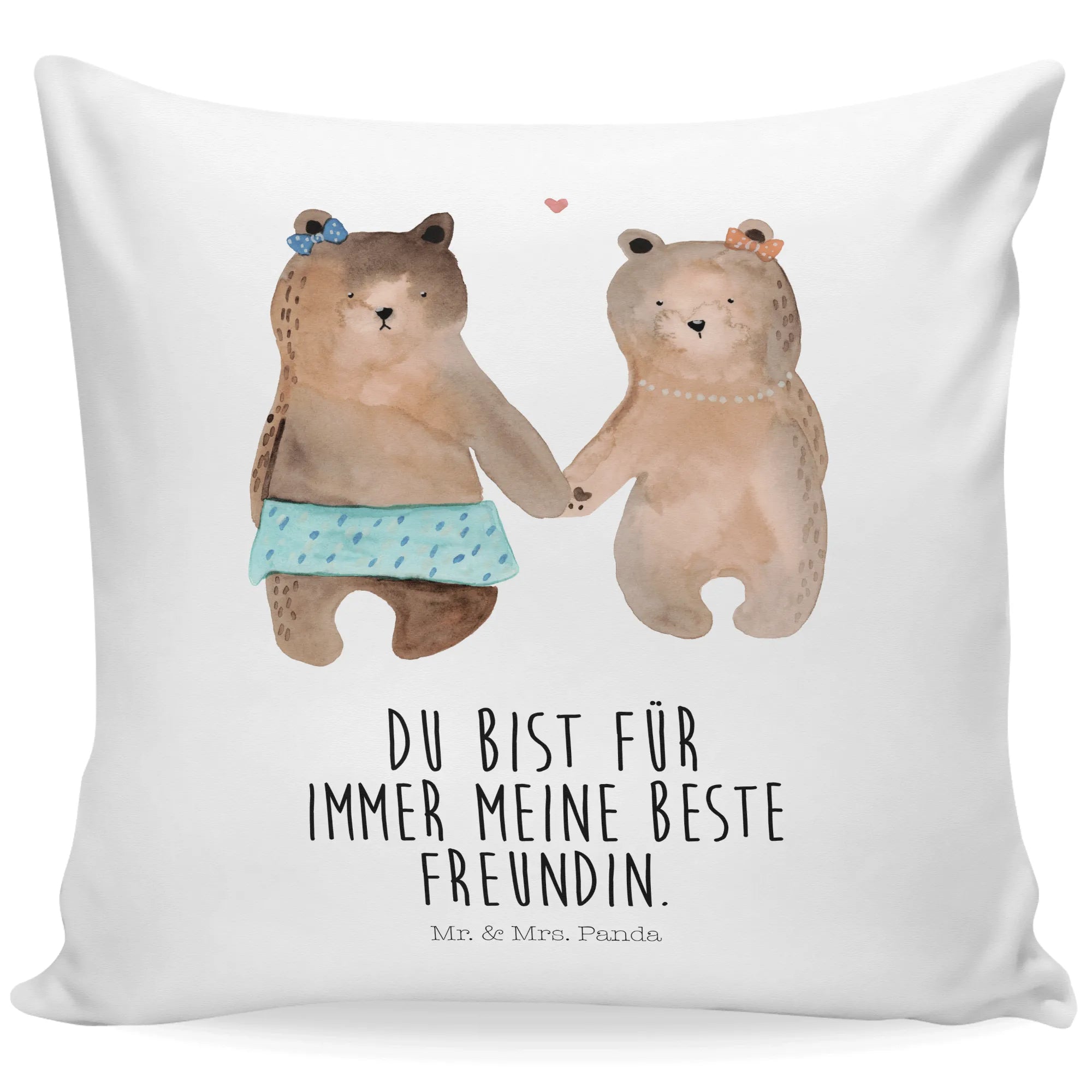The adorable design features two sweet bear friends holding hands—an emblem of unwavering friendship and love. Whether you're celebrating a birthday, making a special occasion even more memorable, or just want to surprise your best buddy, this pillow showcases your affection perfectly.