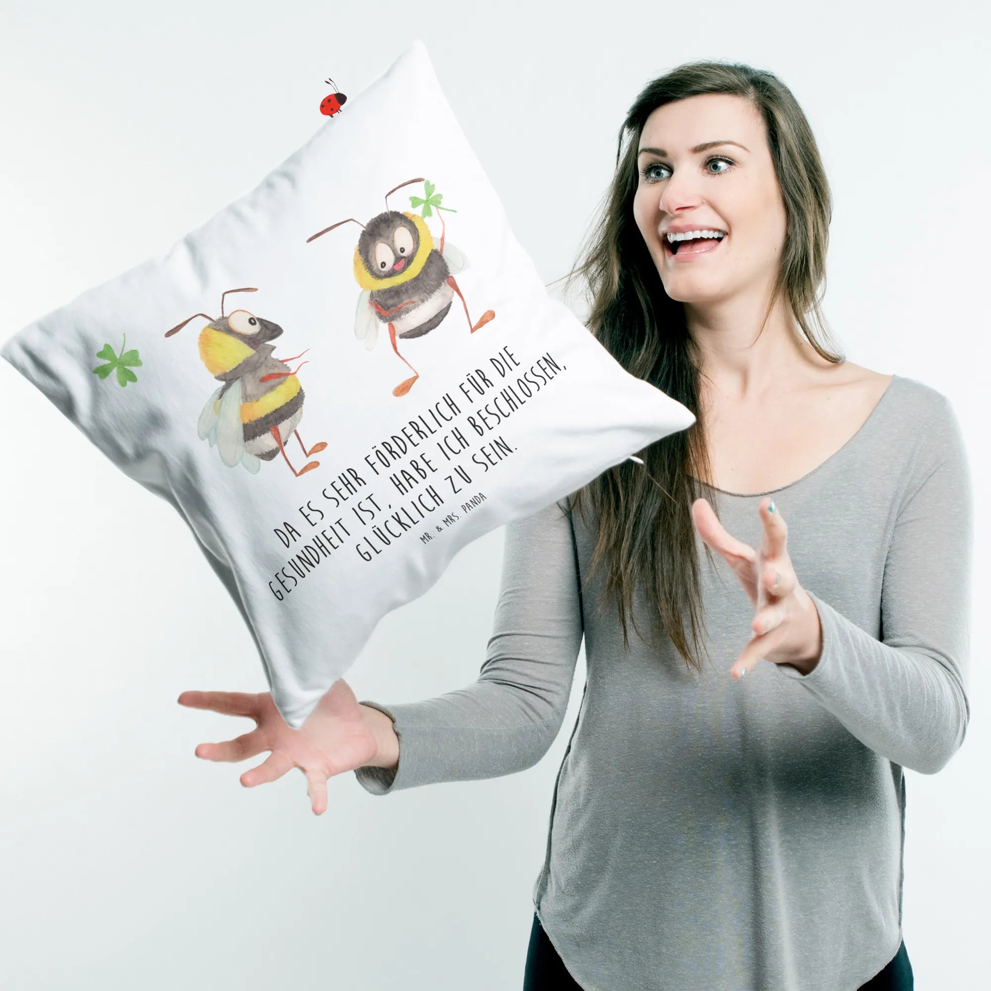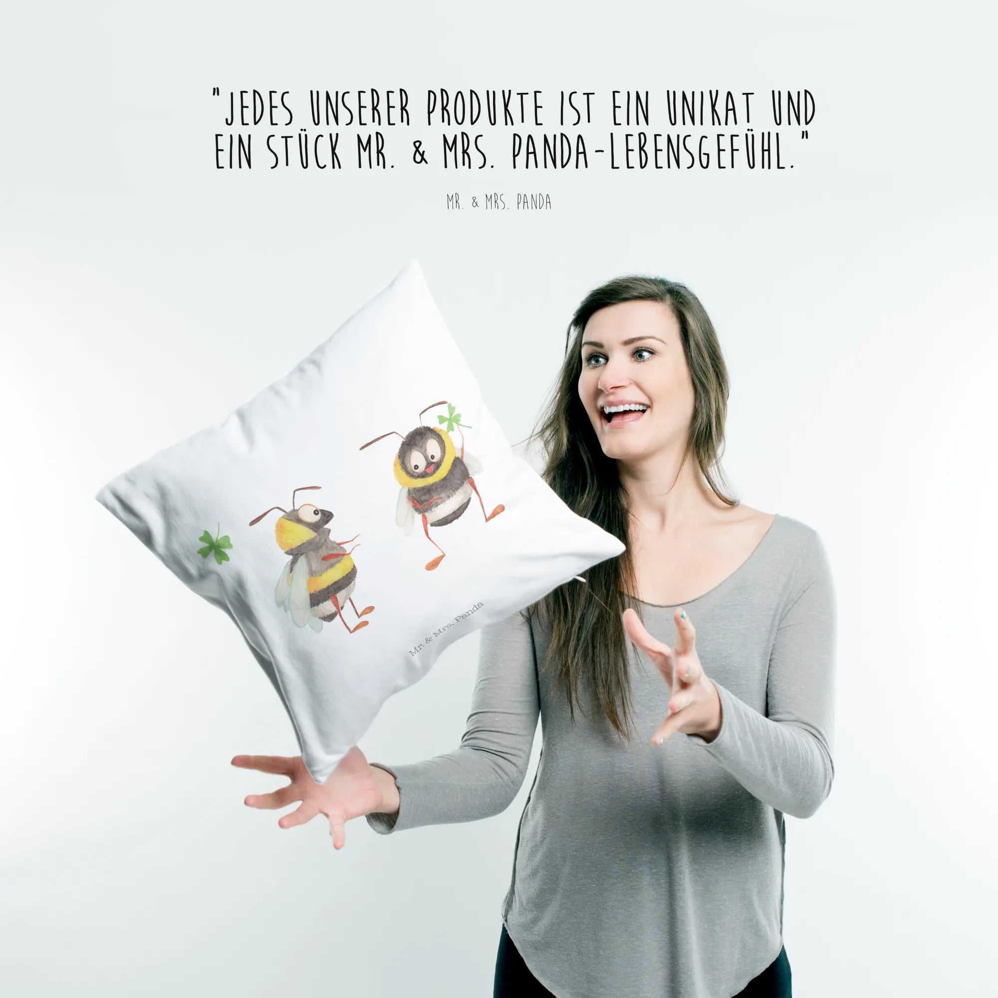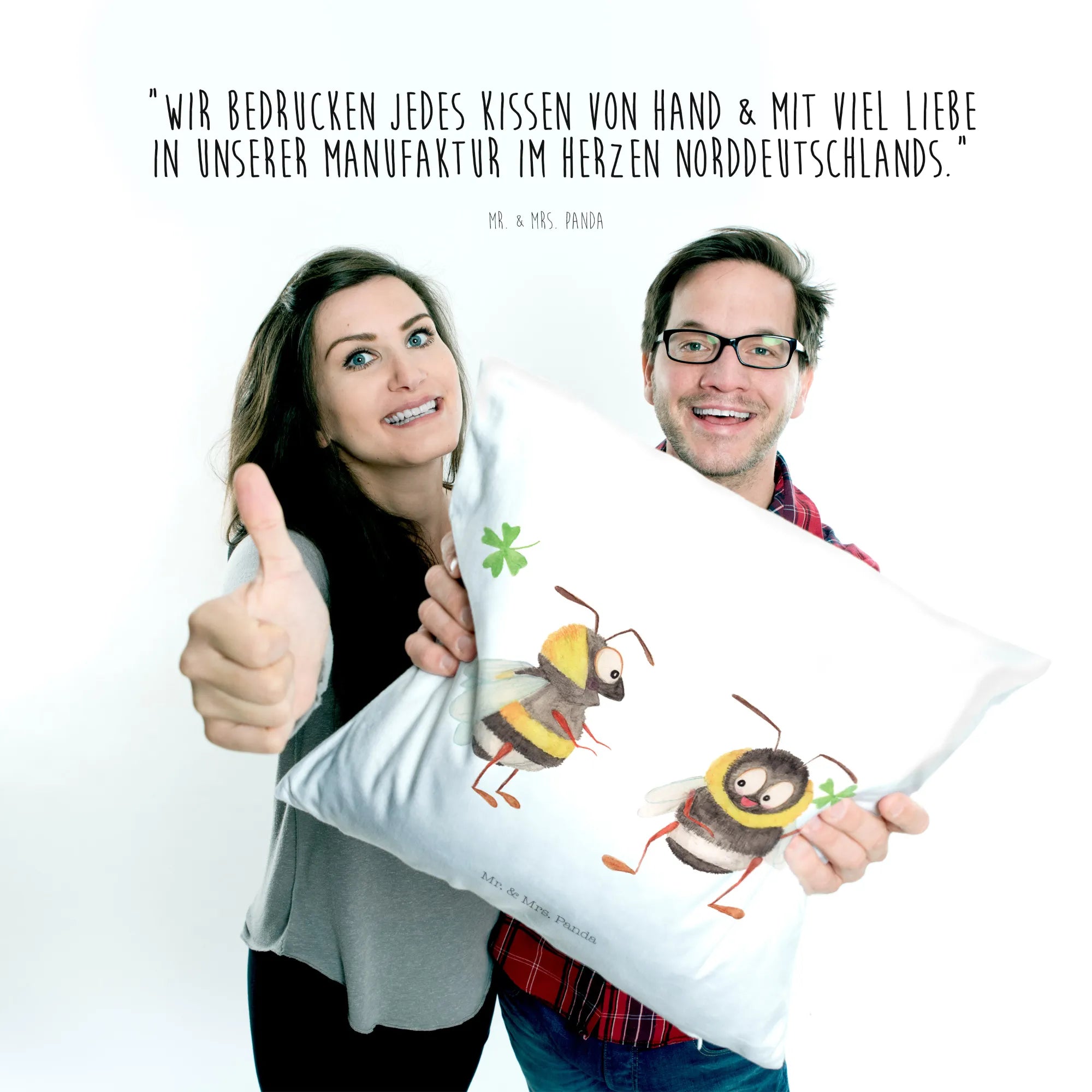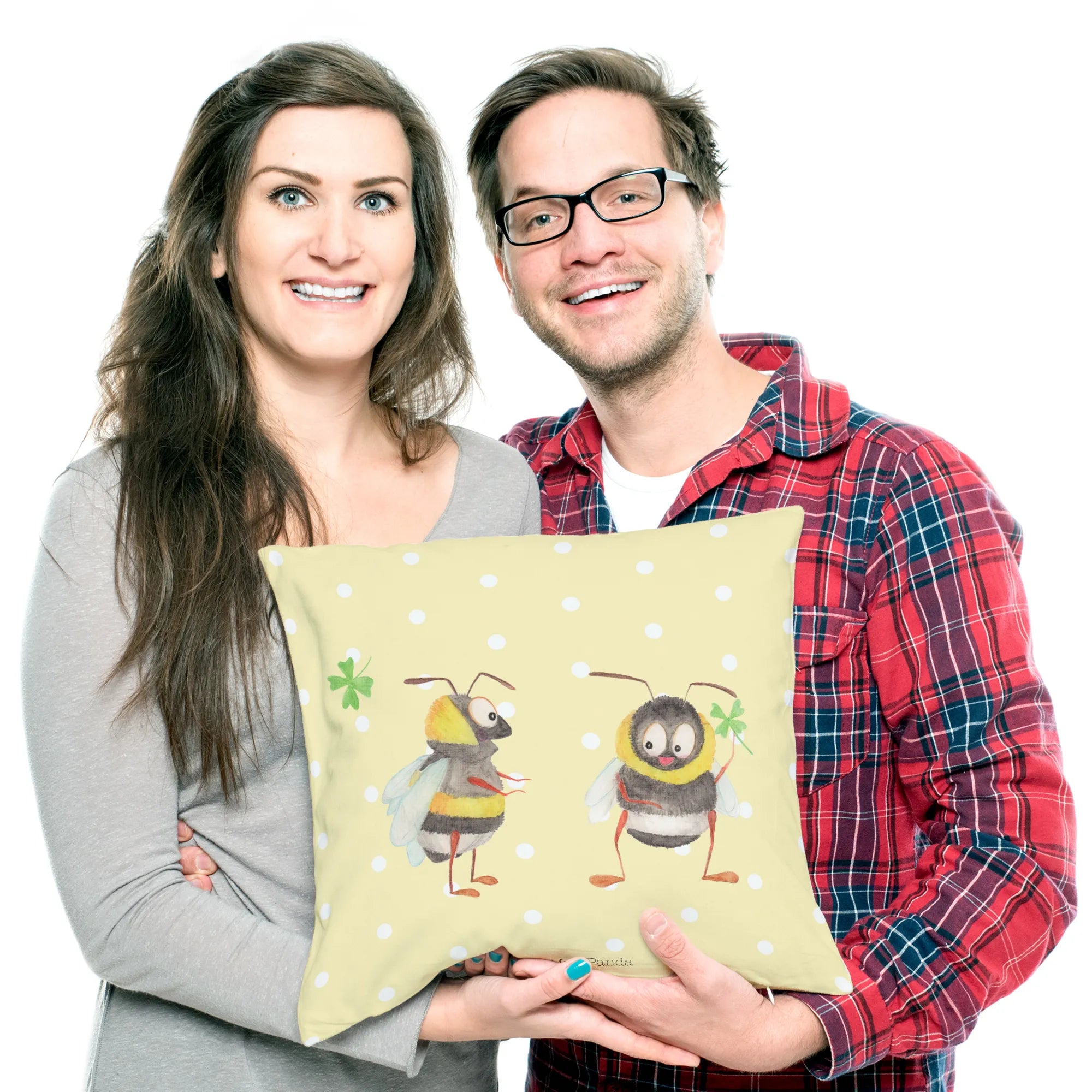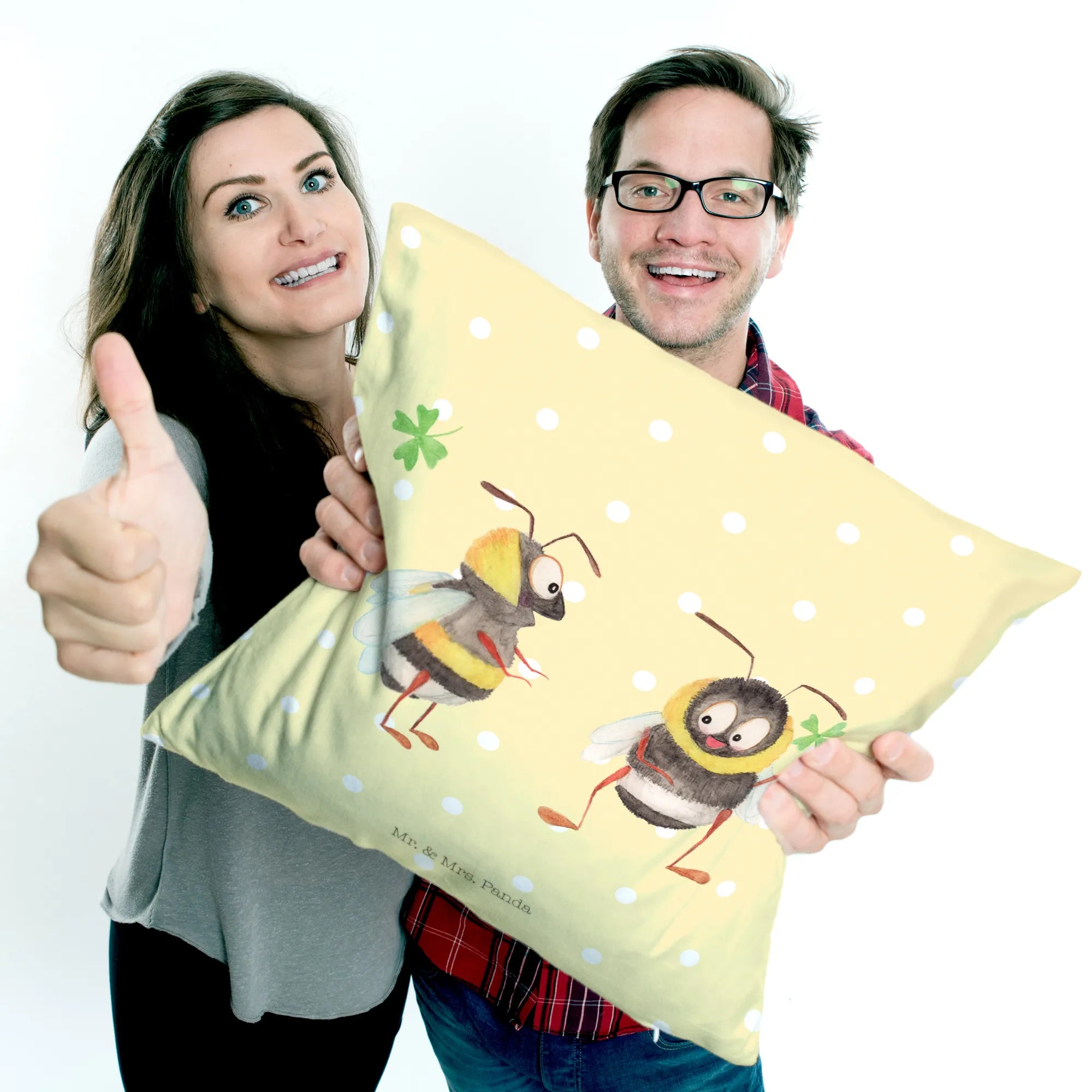 Are you on the hunt for the perfect gift that brings joy and warmth to any space? Look no further! Introducing the delightful Cushion with Bumblebees and Clover from the Small World collection by Mr. & Mrs. Panda! This charming cushion features our two adorable bumblebees, cheerfully holding a clover, beckoning happiness into your life!