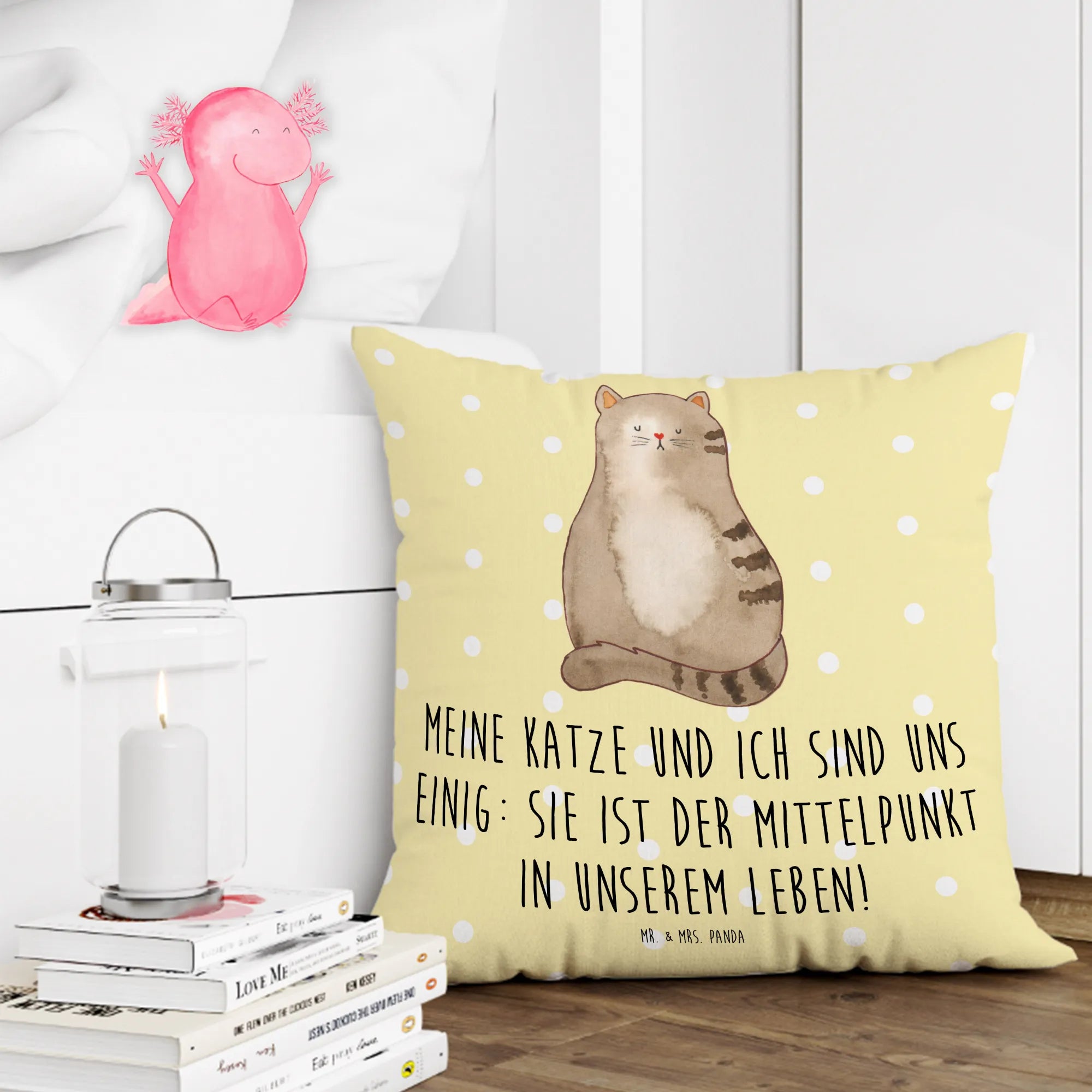 Cushion Cat Sit - with a saying - Gelb Pastell