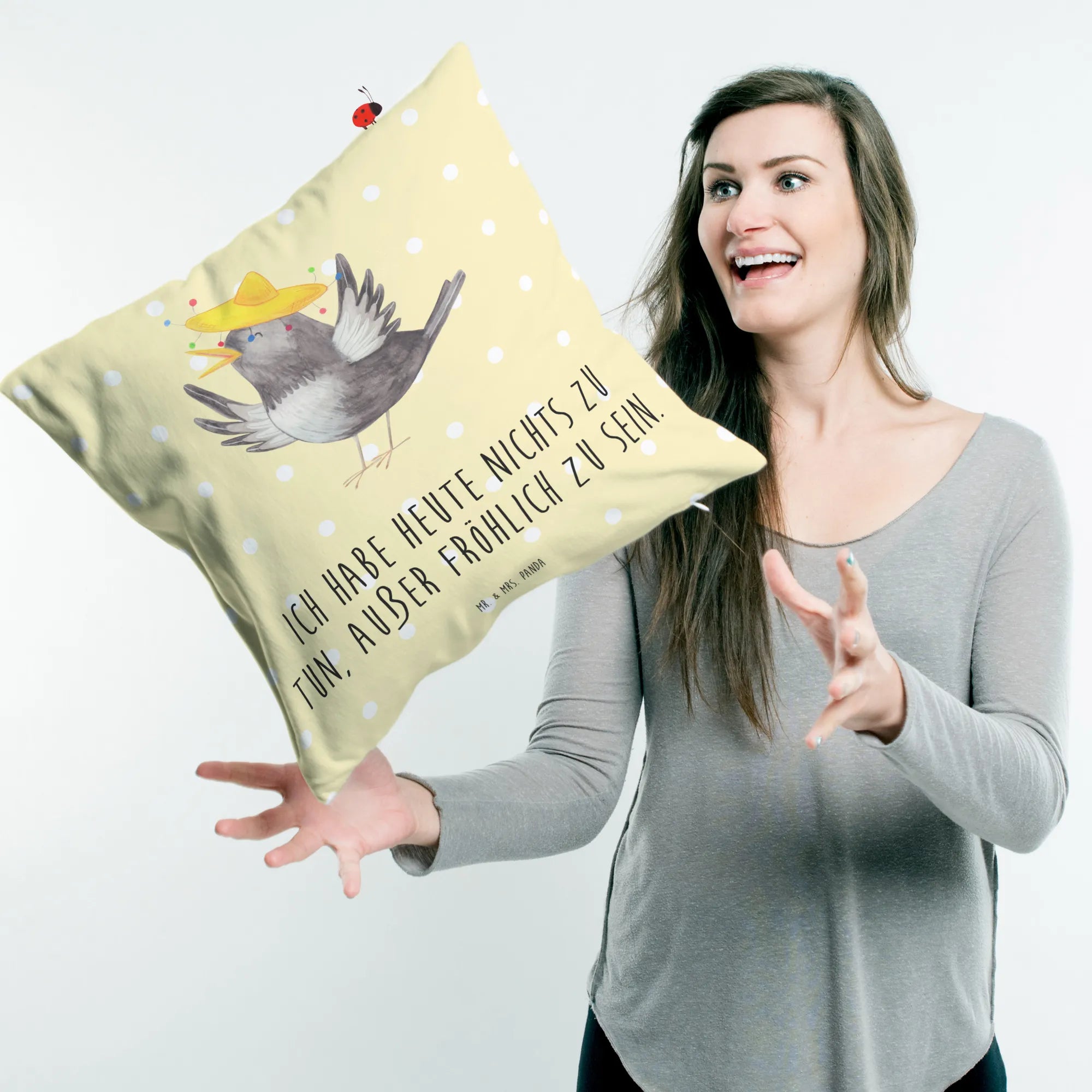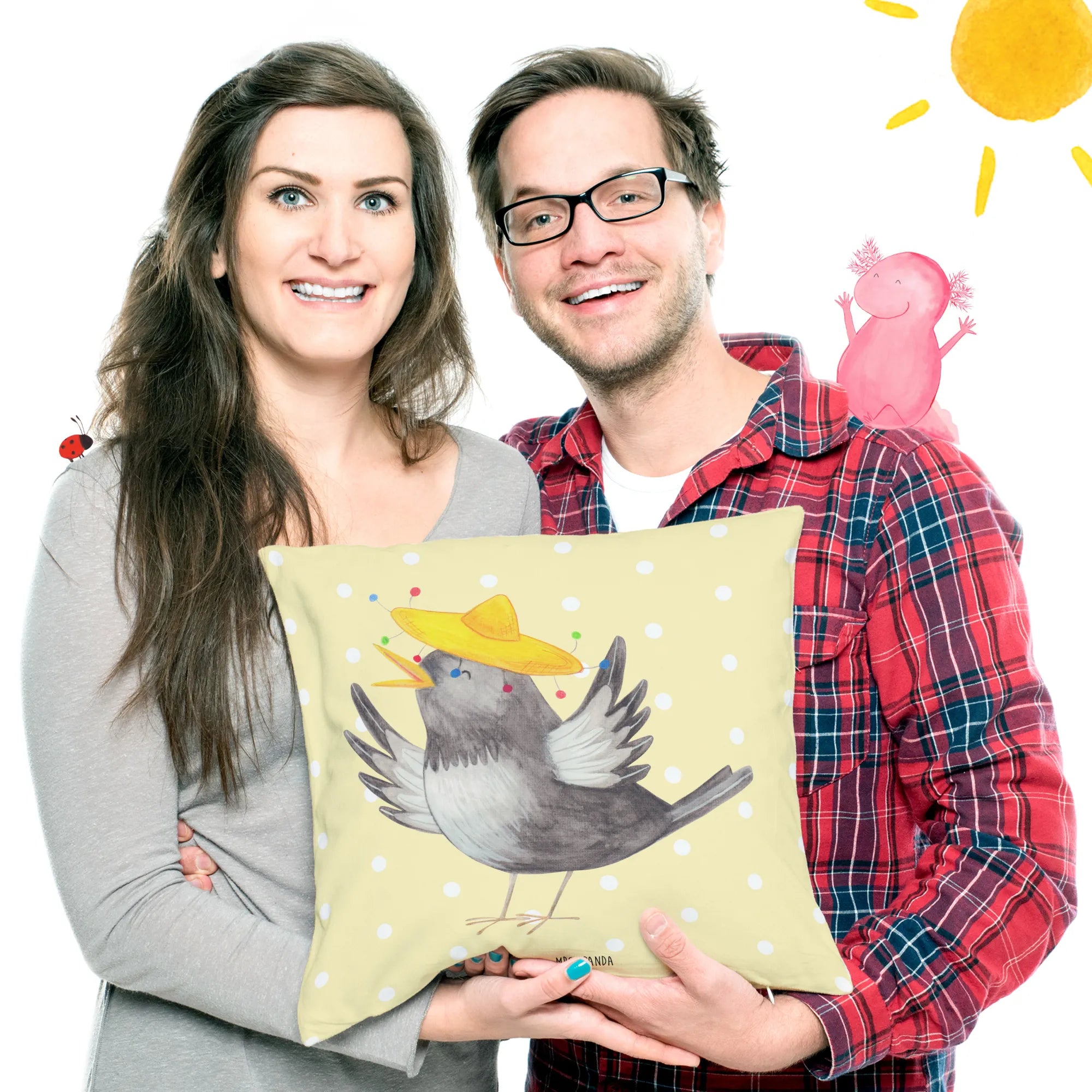Cushion Crow sombrero - with saying - Pastel Yellow