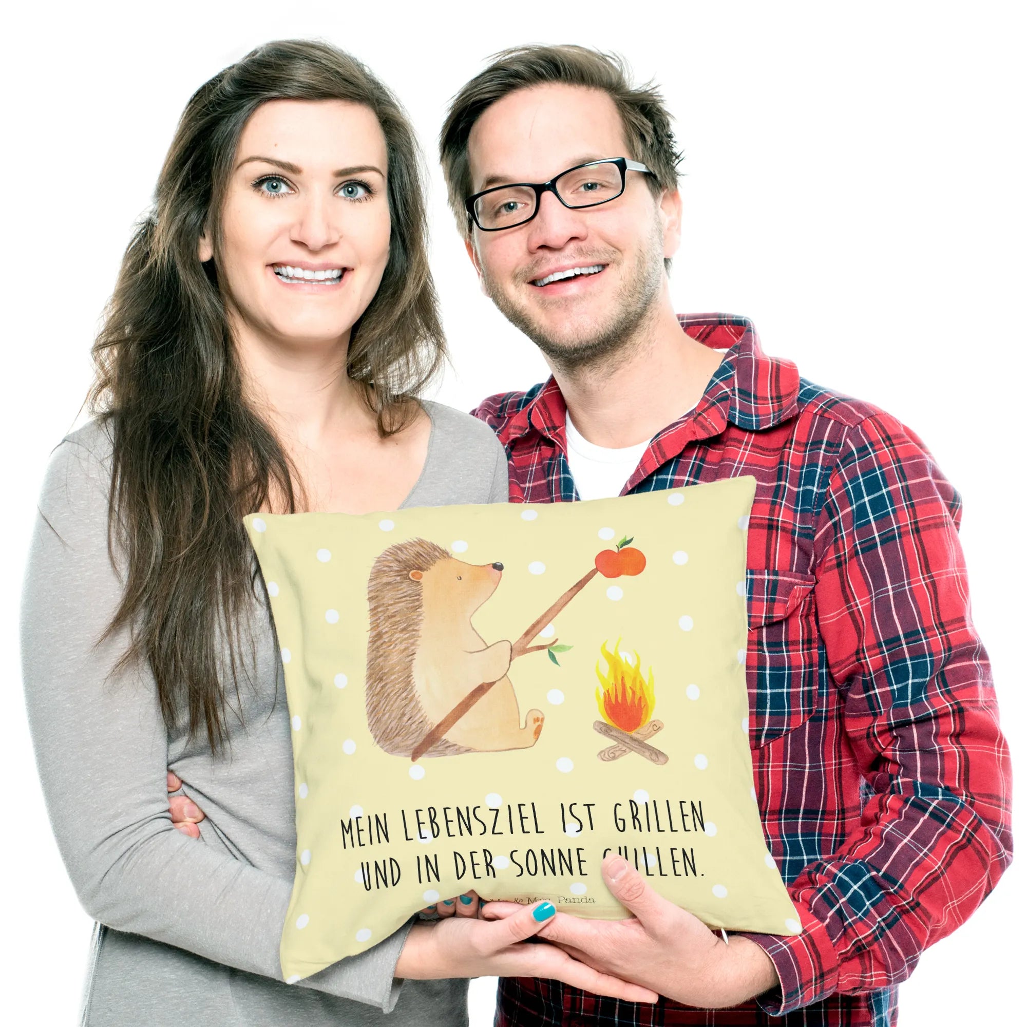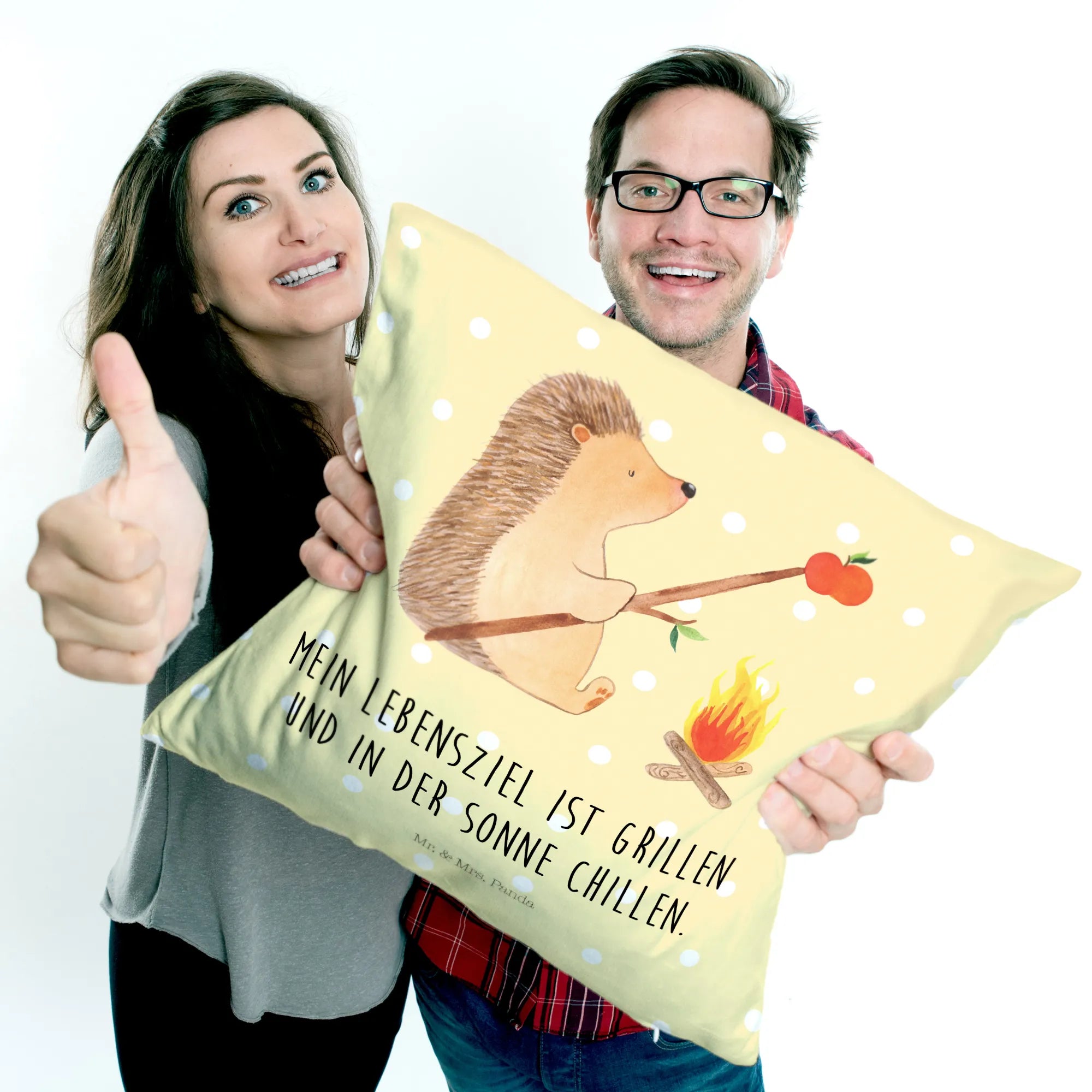 Introducing the adorable Cushion featuring our delightful hedgehog grilling design from the charming Small World collection by Mr. & Mrs. Panda! If you’re on the lookout for the perfect gift for an animal lover or anyone who appreciates a good chuckle, this cushion is the ideal choice. With its soft and fluffy microfibre material, this cushion is not just a decorative piece, it's a cozy addition to any sofa, bed, or settee nook.