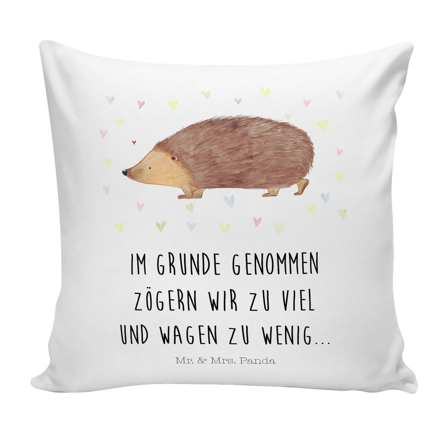 Cushion Hedgehog hearts - with a saying - White
