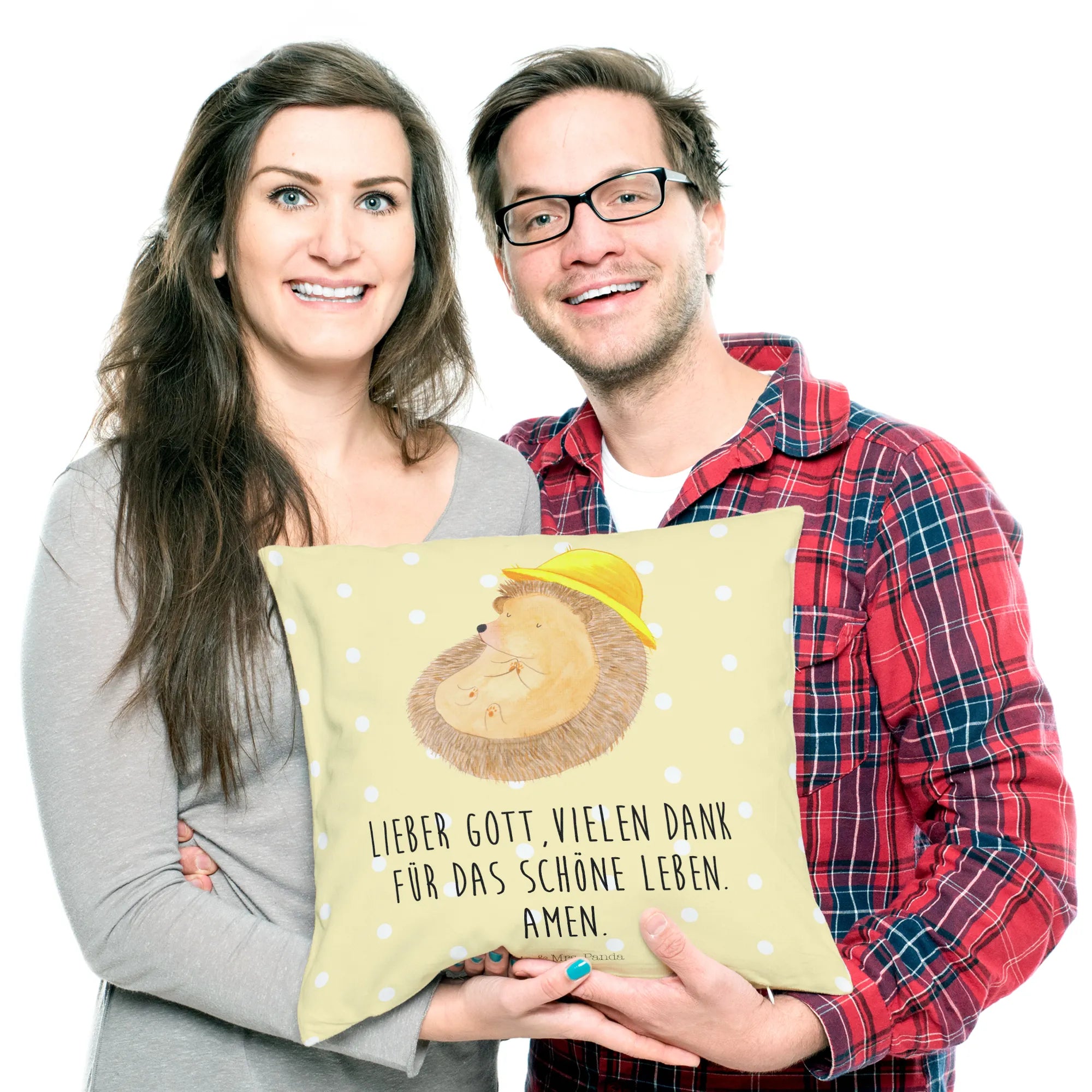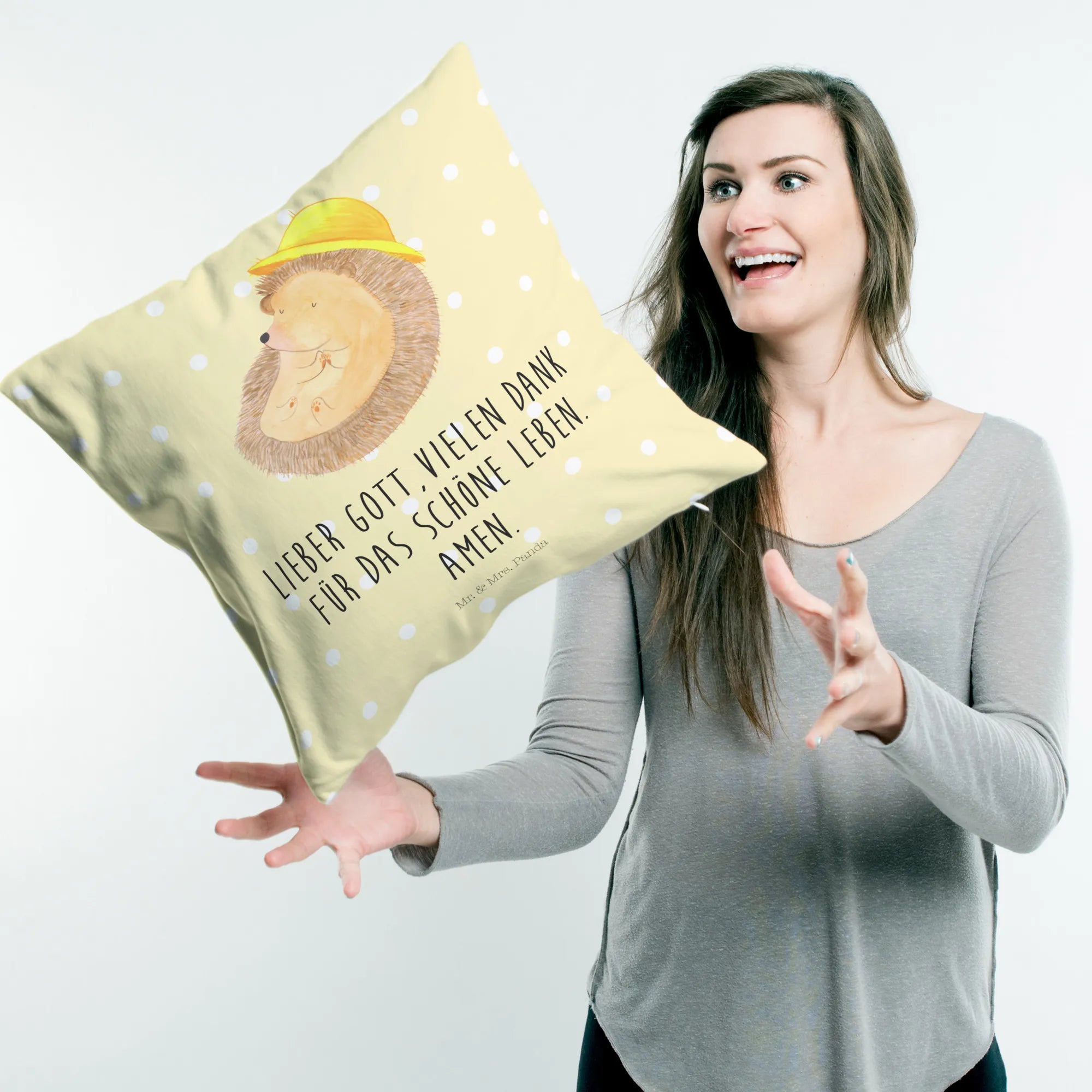 Cushion Hedgehog Pray - with saying - Pastel Yellow
