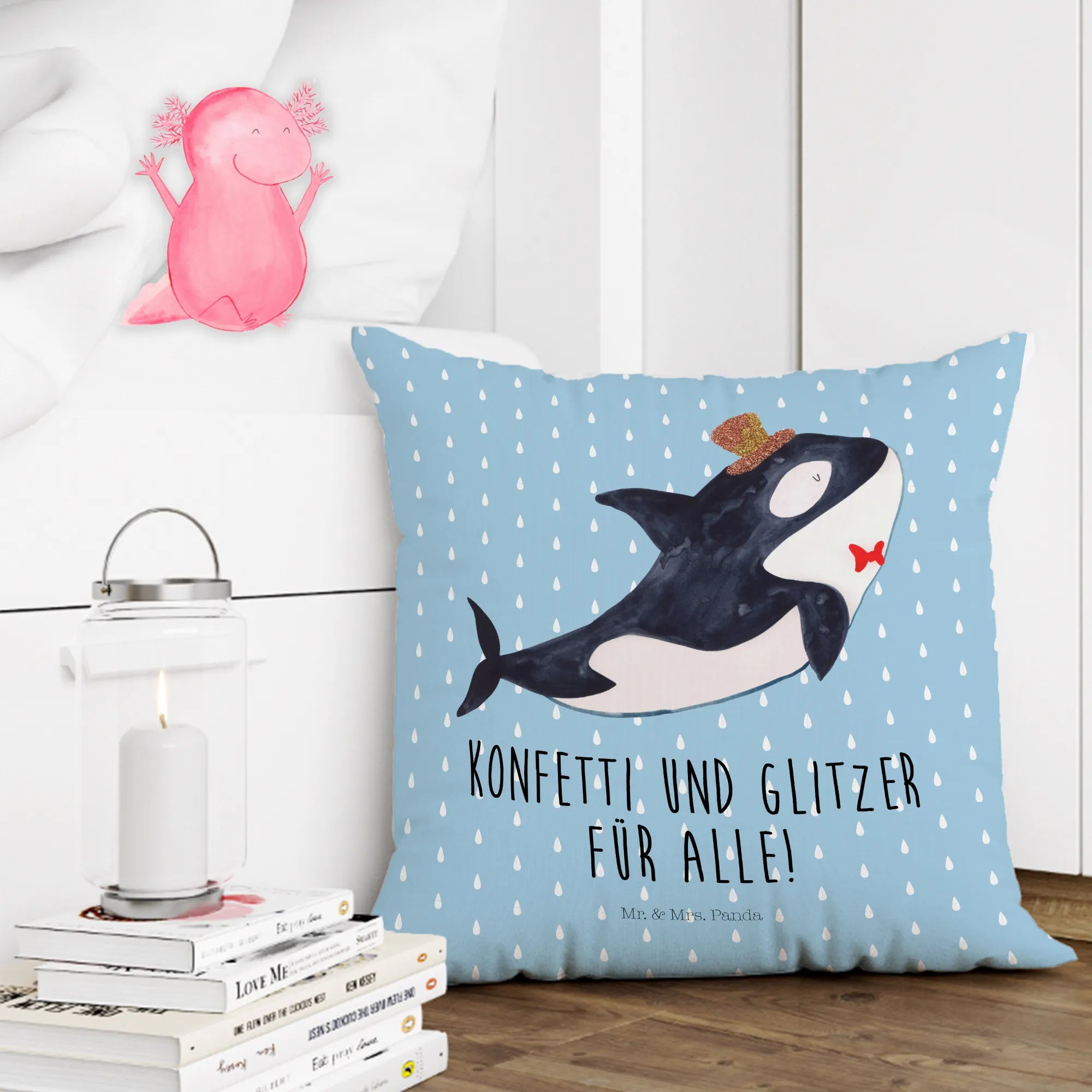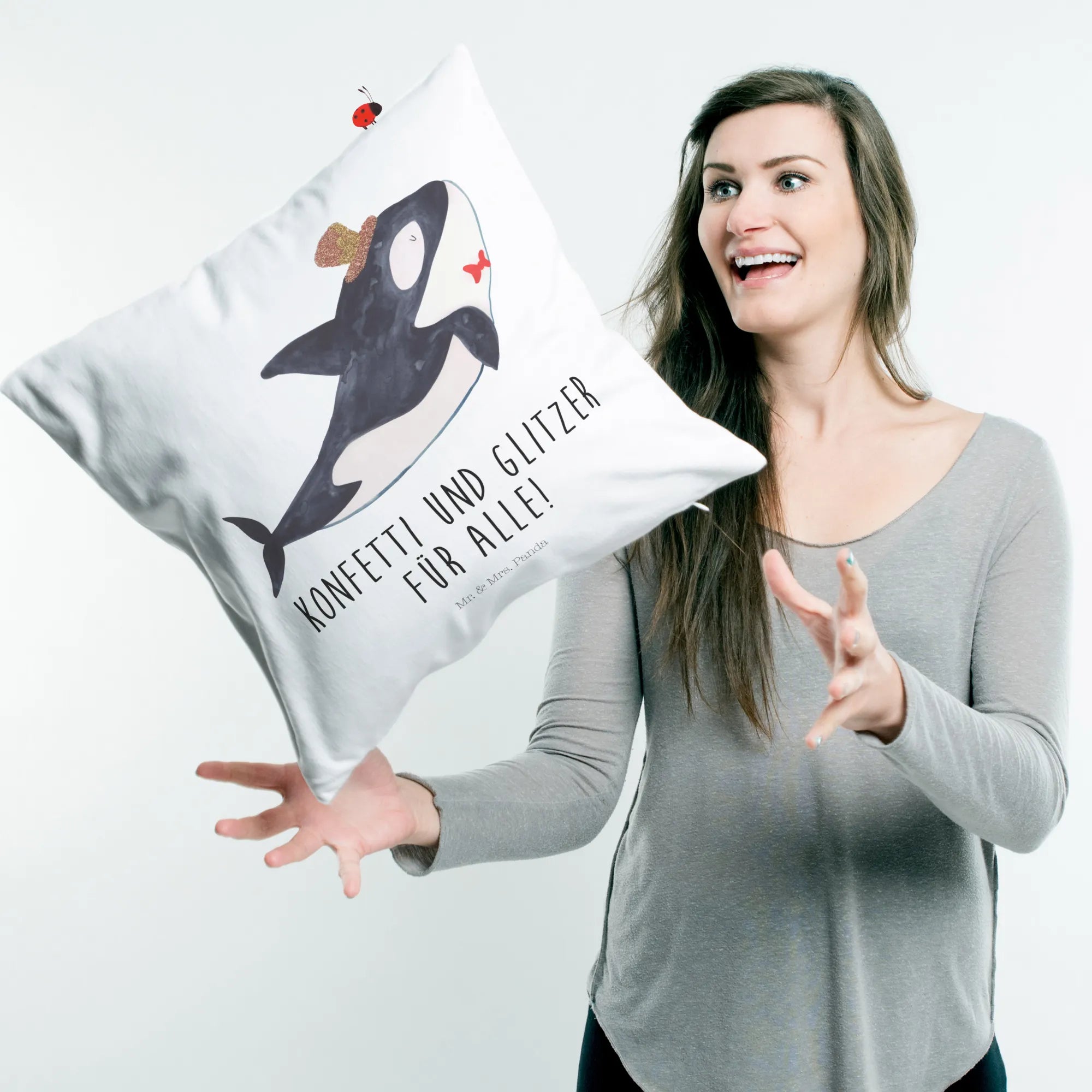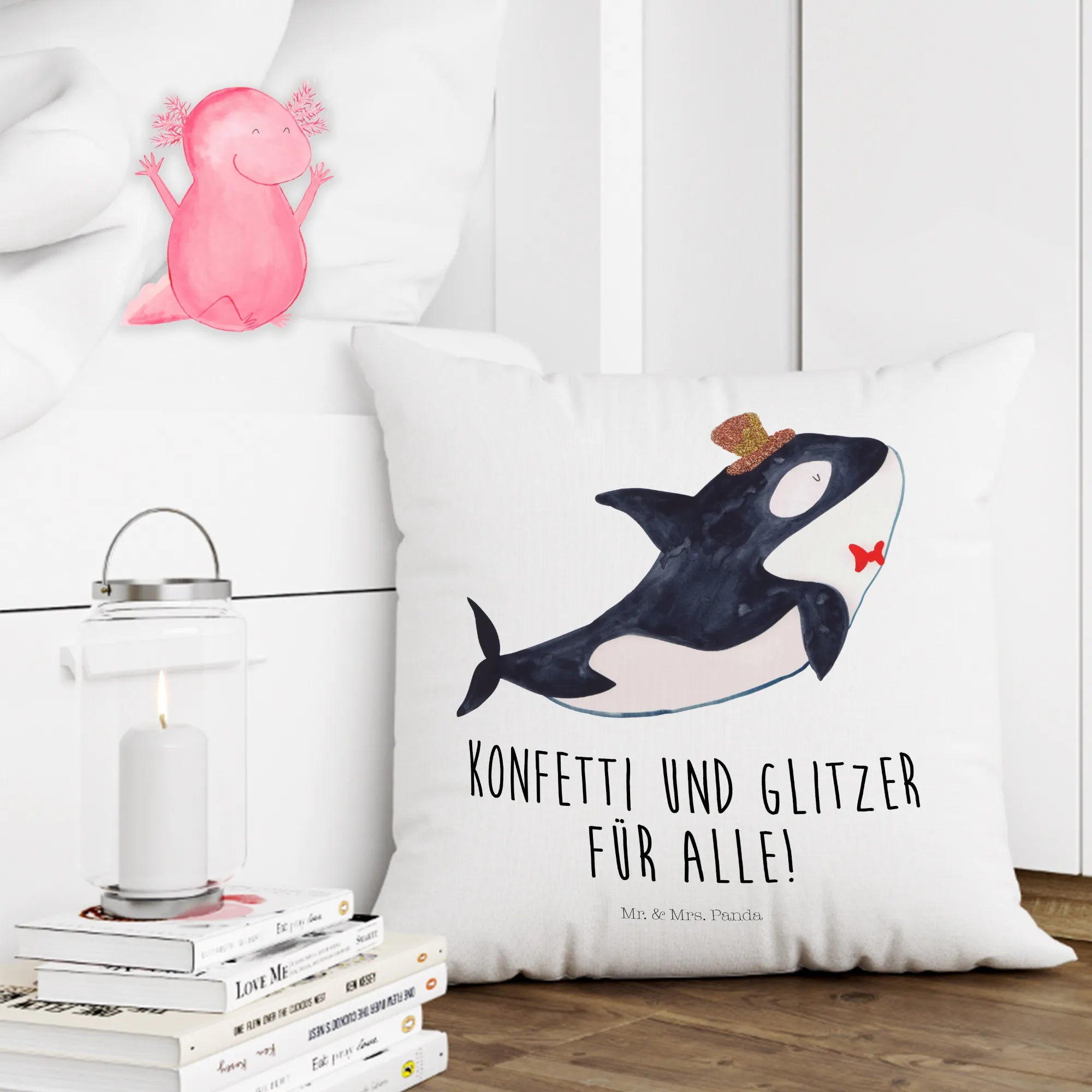 Perfectly embodying the spirit of the sea and all its delightful creatures, this cushion is part of our Marine Animals Collection. From lobsters to sea urchins, each design has been lovingly created by Mrs. Panda, showcasing her enchanting watercolor artistry. With its cheerful motif and the slogan "Konfetti und Glitzer für alle!", this cushion fills your space with positivity and a touch of magic. So get ready to let the ocean vibes roll through your home while you snuggle up with the softest cushion! Whether it's a gift for someone special or a treat for yourself, the Orca Cylinder Cushion captures the heart of aquatic fun and celebration!