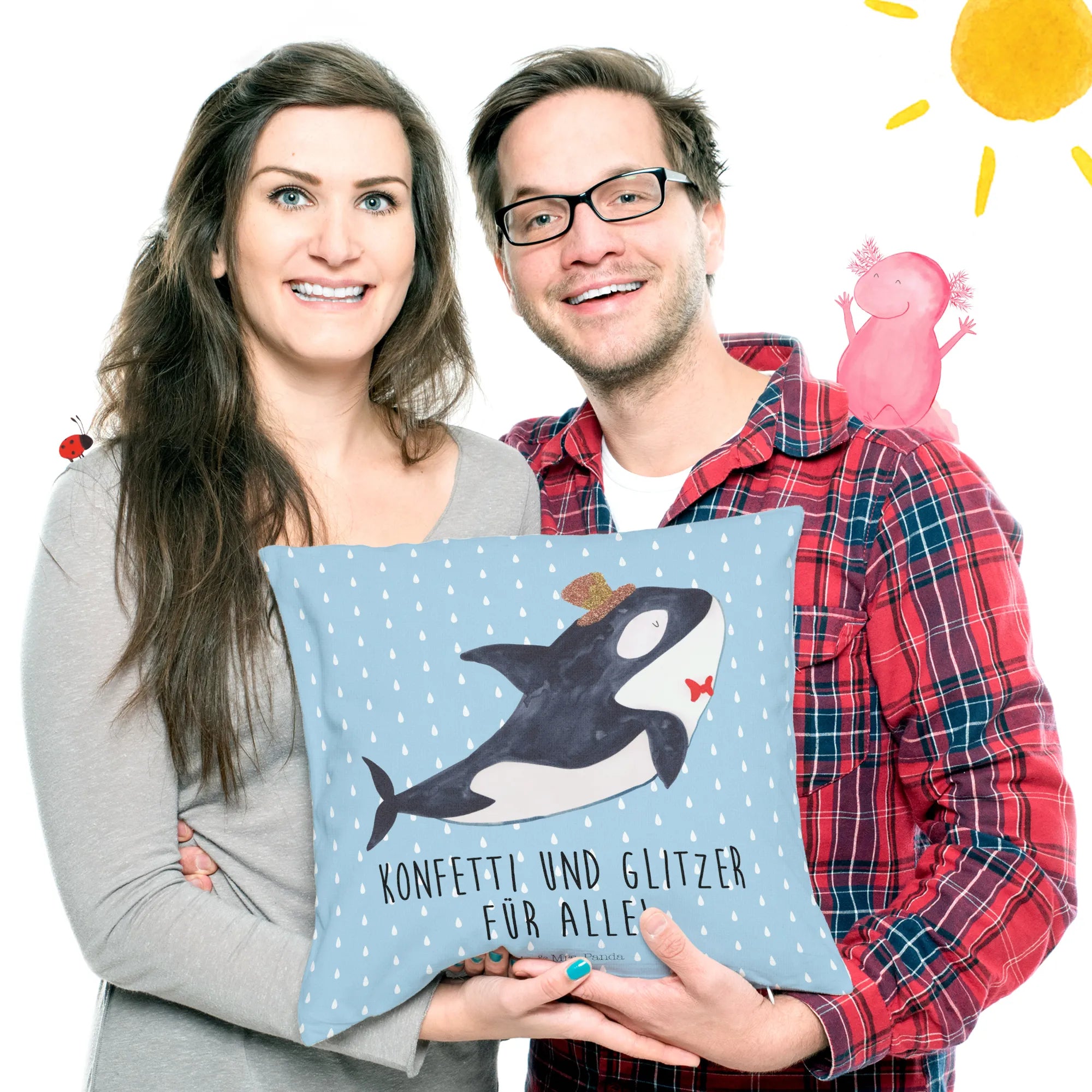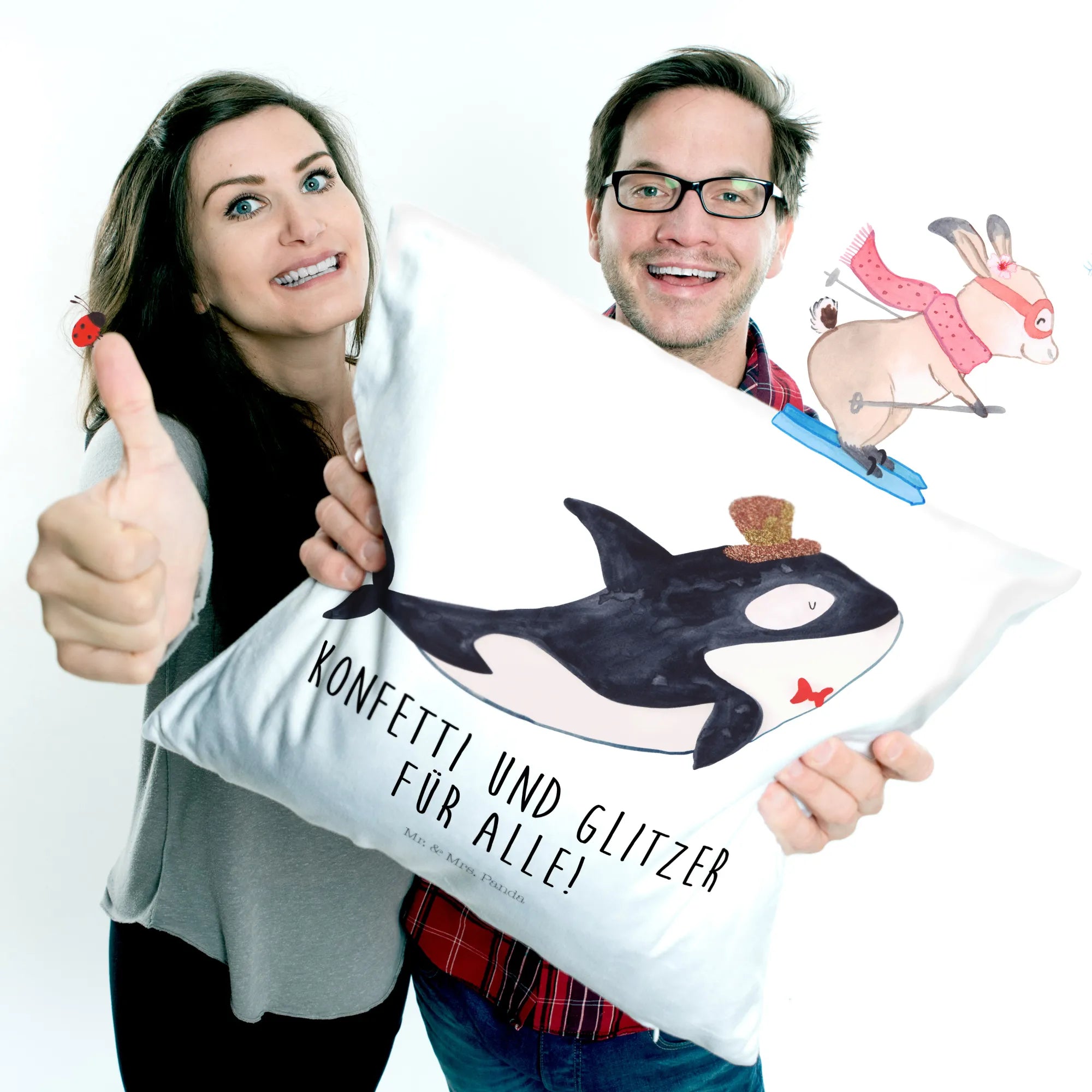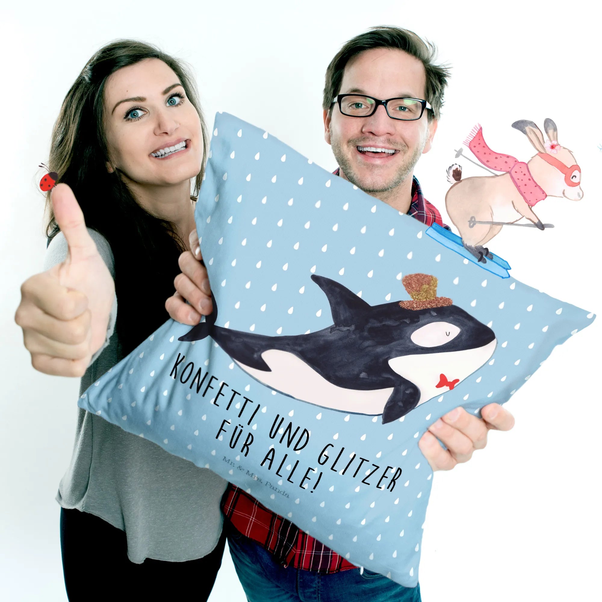 Perfectly embodying the spirit of the sea and all its delightful creatures, this cushion is part of our Marine Animals Collection. From lobsters to sea urchins, each design has been lovingly created by Mrs. Panda, showcasing her enchanting watercolor artistry. With its cheerful motif and the slogan "Konfetti und Glitzer für alle!", this cushion fills your space with positivity and a touch of magic. So get ready to let the ocean vibes roll through your home while you snuggle up with the softest cushion! Whether it's a gift for someone special or a treat for yourself, the Orca Cylinder Cushion captures the heart of aquatic fun and celebration!