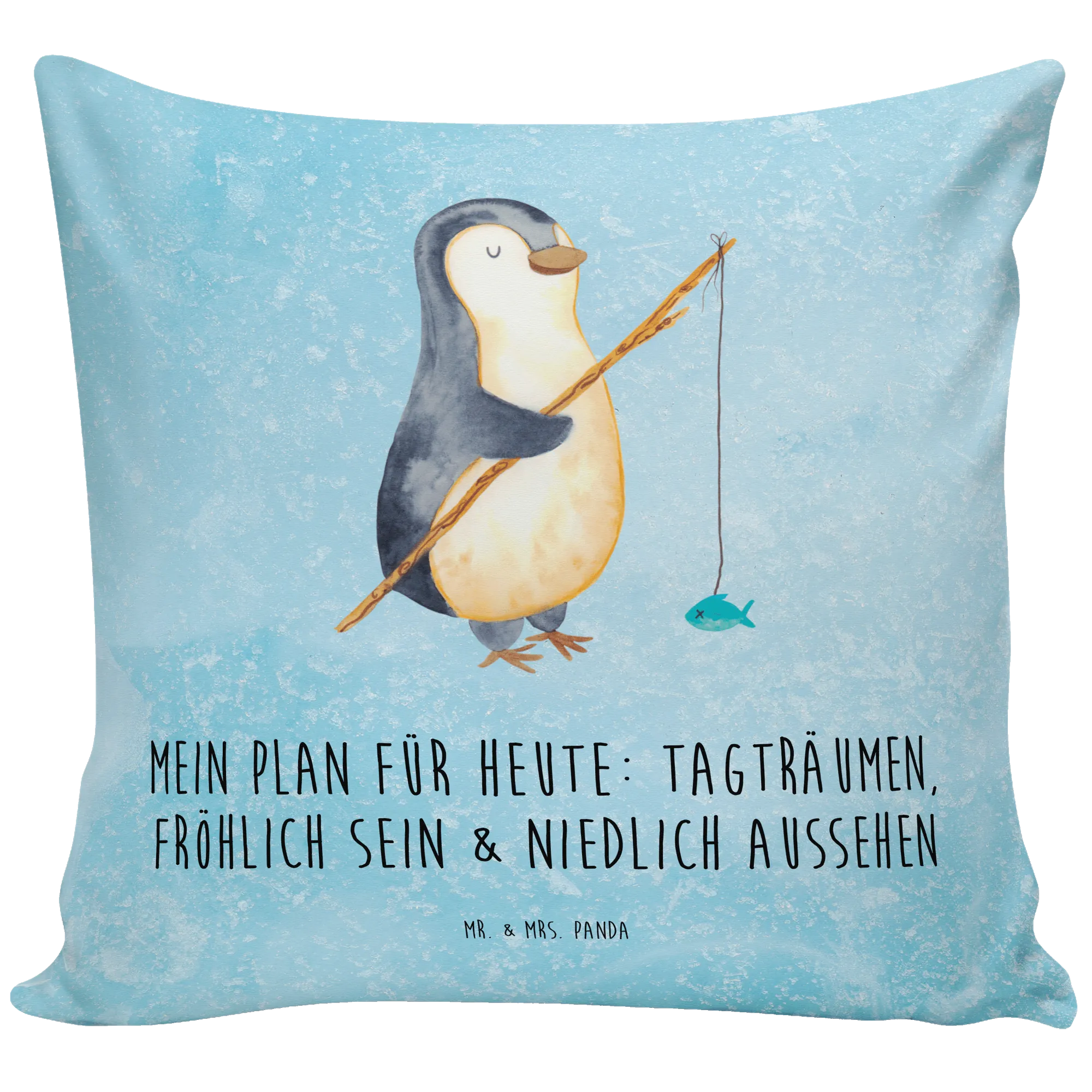 The Penguin Fisher Cushion is also a fantastic gift idea for various occasions! Birthdays, anniversaries, or just because; friends and loved ones will adore receiving such a thoughtful and cute present. Picture their faces lighting up as they unwrap this delightful surprise, instantly filled with warmth and happiness. With its catchy slogan, "My plans for today: daydream chill out look cute", it’s a perfect reminder to take it easy and enjoy life’s simple pleasures.