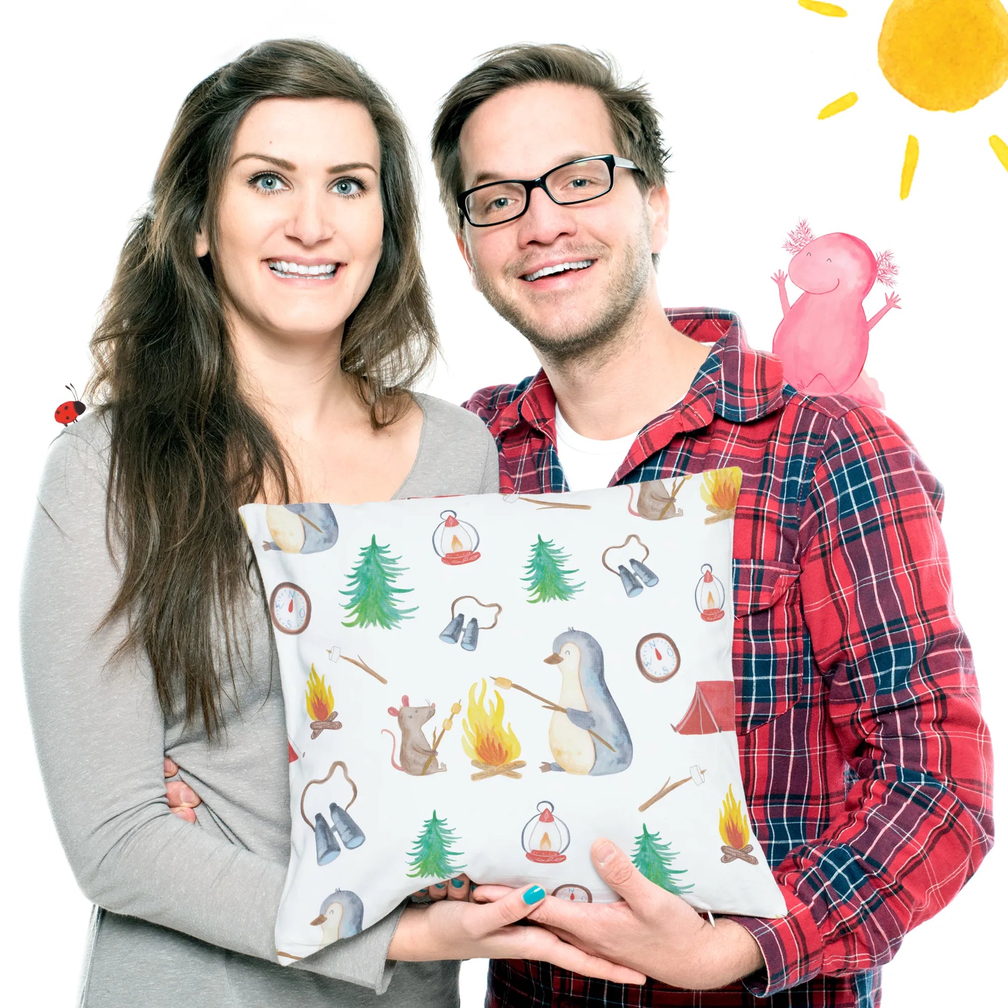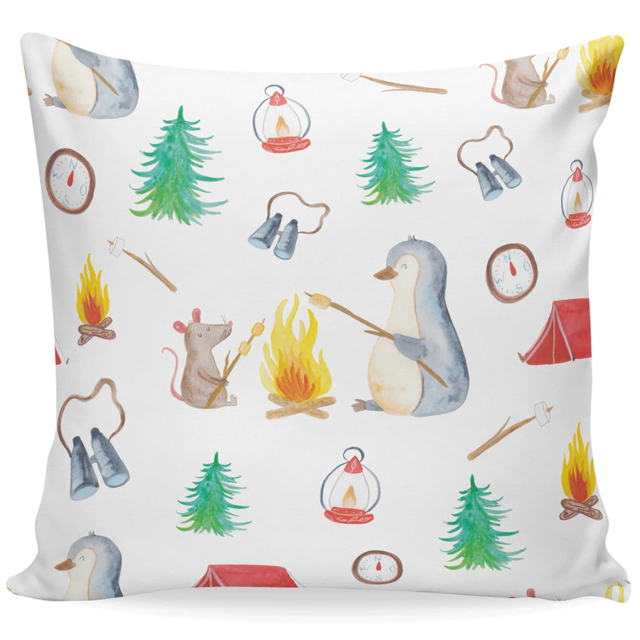 Measuring a comfortable 40x40 cm (16x16 inches), this soft and fluffy cushion is perfect for brightening up your bedroom, couch, settee, or office space. It features a heartwarming motif of a cute penguin and a smiling mouse roasting marshmallows over a crackling campfire, creating a sweet slice of wilderness right in your living room.