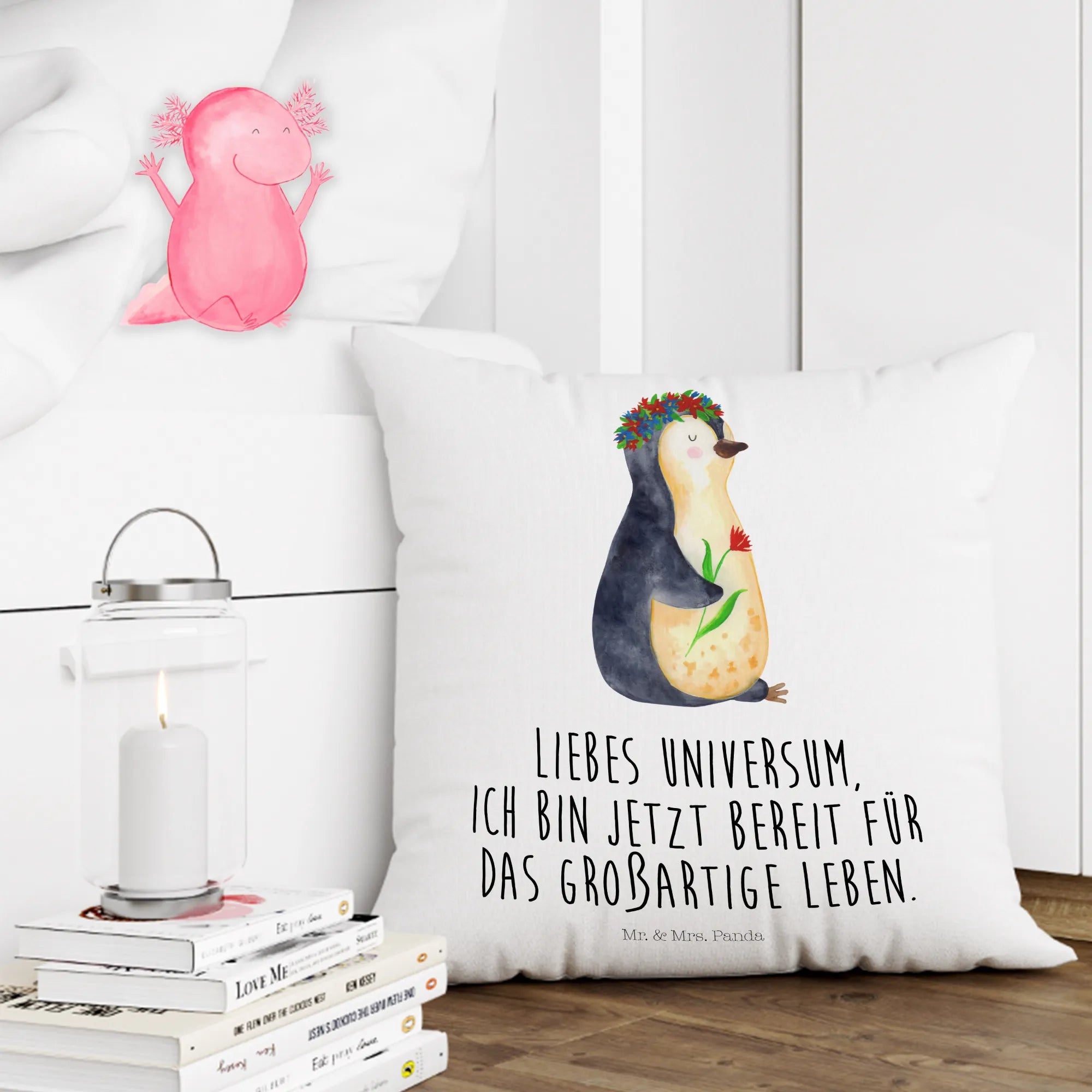 Visualize a charming penguin, adorned with a joyful wreath of flowers, gracing your living space with its quirky and whimsical vibe. The Penguin Collection, lovingly designed by Mr. & Mrs. Panda, celebrates this engaging creature from the North Pole, surrounded by the beauty of nature. These delightful penguins symbolize not only cuteness but are also reminders of life’s simple joys, hopes, and dreams. The enchanting design on this cushion can uplift any room by blending seamlessly into various decor styles, making it a perfect gift for those passionate about winter, penguins, or simply looking for a burst of color in their everyday life.