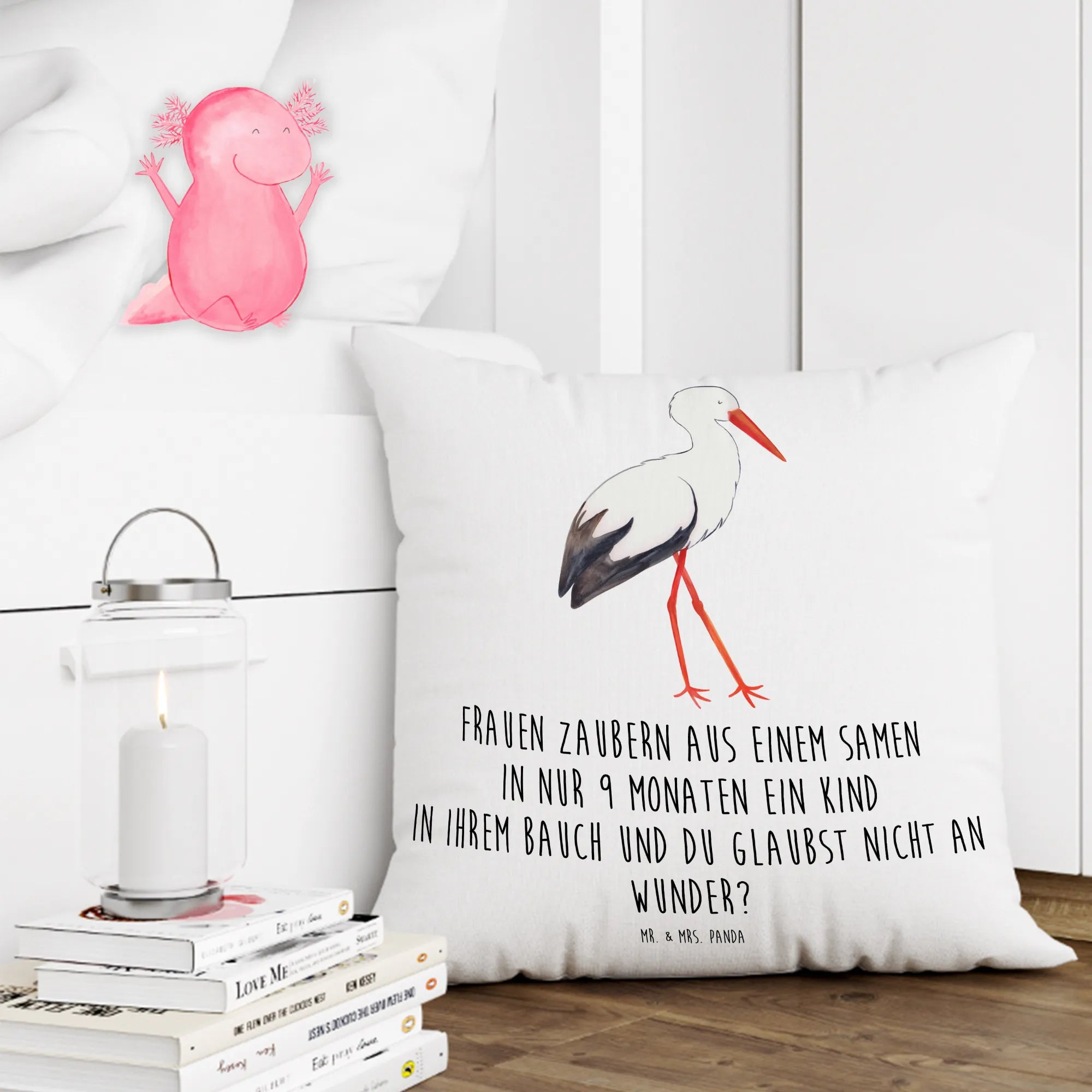 The delightful stork image is lovingly hand-drawn by Mrs. Panda, embodying the joy and wonder of new life. Accompanied by a thoughtful slogan, "In just 9 months, mothers create a new life inside themselves from just a tiny seed. And you don’t believe in magic?", this cushion speaks directly to the hearts of mothers and mothers-to-be.