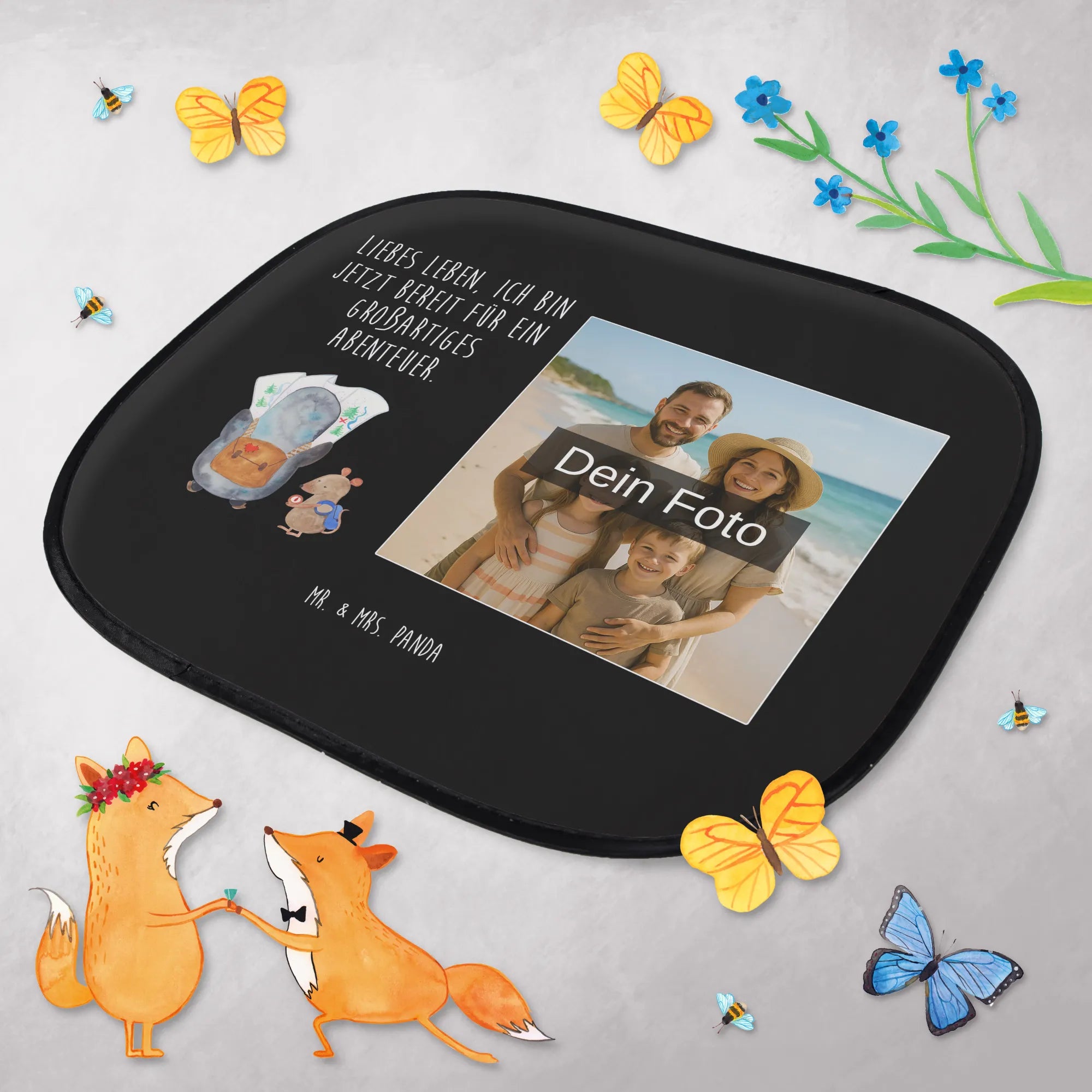 Verleih deinem Auto eine persönliche Note mit dem personalisierbaren Foto Sonnenschutz von Mr. & Mrs. Panda! Mit seinem kompakten Format von 440 mm x 380 mm ist er für jedes Fenster geeignet. Dieser Sonnenschutz schützt dich und deine Passagiere vor der Sonne und lässt gleichzeitig deine eigene Kreativität zum Ausdruck kommen. Lade dein Lieblingsbild hoch und mach ihn einzigartig! Das verwendete, strapazierfähige Polyester sorgt dafür, dass er stabil und langlebig ist – ideal für alle Autofahrten. Die schnelle Anbringung mit zwei Saugnäpfen macht das Erlebnis noch einfacher. Stell sicher, dass dein Foto in guter Qualität vorliegt, um die besten Ergebnisse zu erzielen. Denke auch daran, dass wichtige Bildteile nicht abgeschnitten werden. Dieses hübsche Accessoire wird zum begehrten Blickfang und verschönert jede Fahrt!
