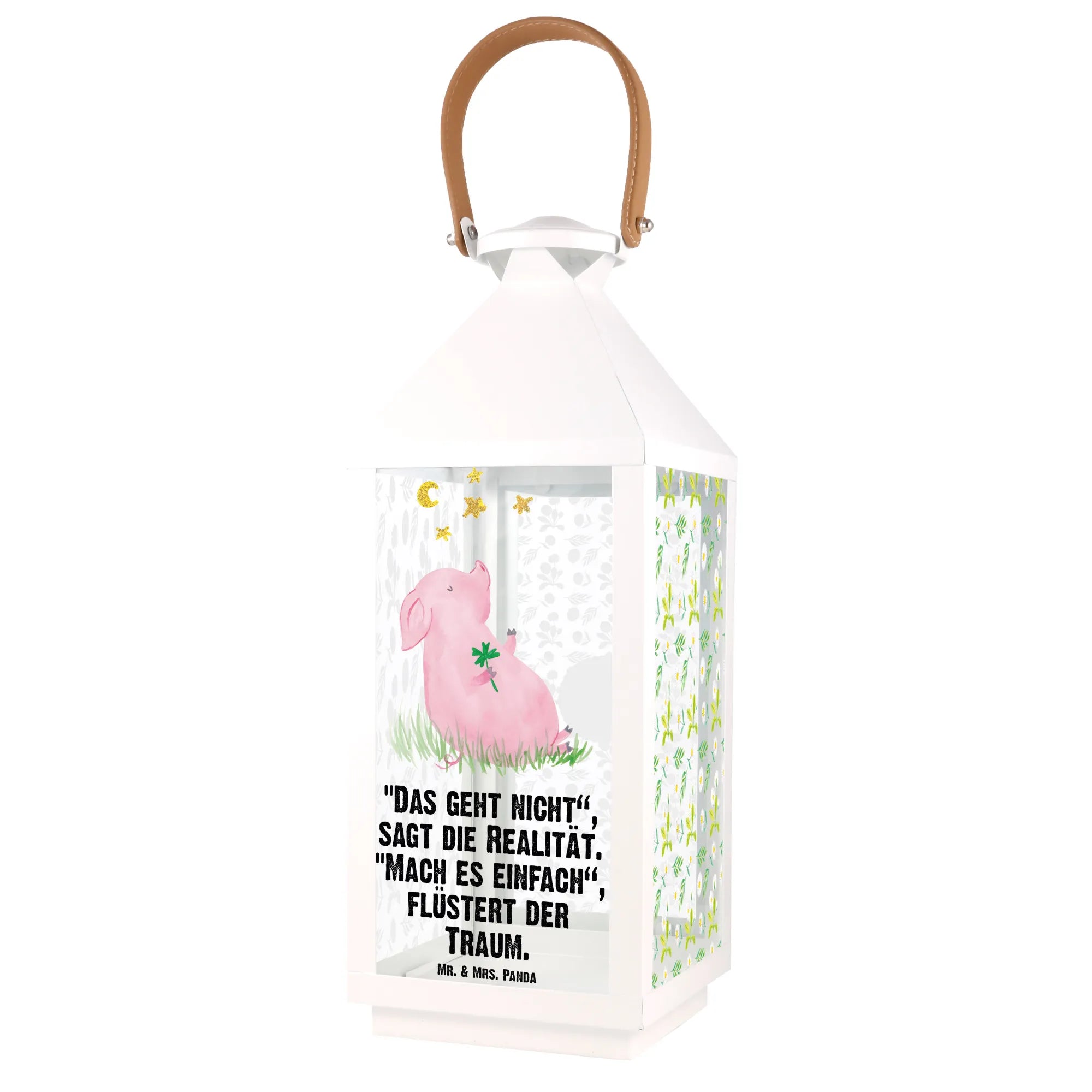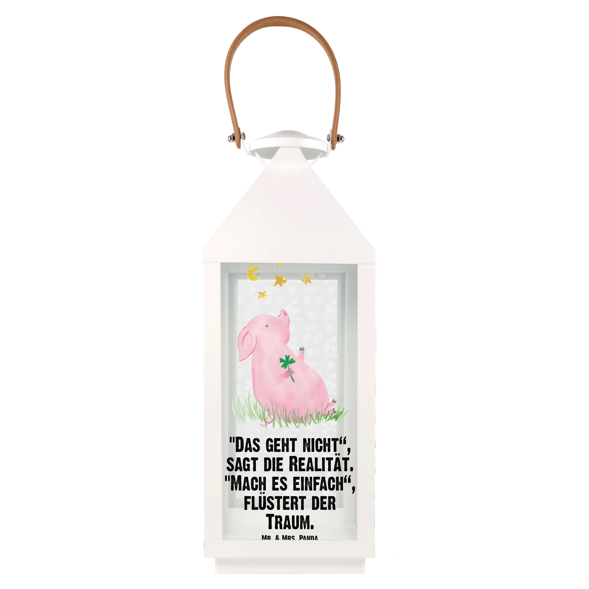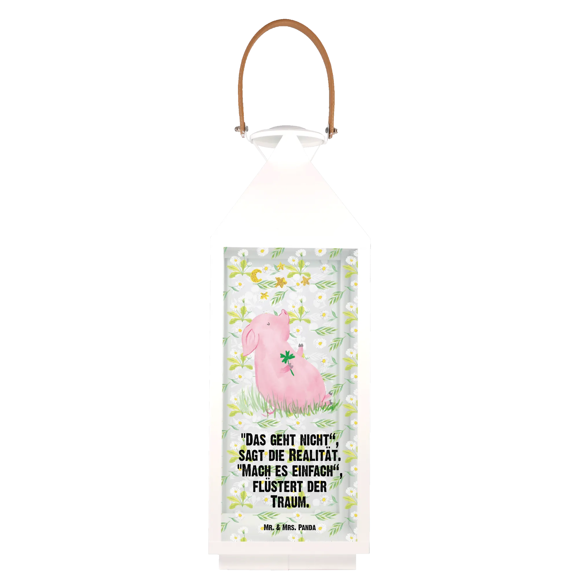 If you're looking to sprinkle a little more joy and positivity into your life or the life of a loved one, then the Decorative Lantern featuring our adorable Lucky Pig from the Small World collection is just what you need! This unique garden lantern is not just a decoration—it's a charming embodiment of motivation and dreams. Designed with love by Mr. & Mrs. Panda, this lantern showcases the cutest little pig holding a four-leaf clover, symbolizing luck and happiness. Imagine lighting up your garden, terrace, or balcony with this delightful addition that radiates good vibes!