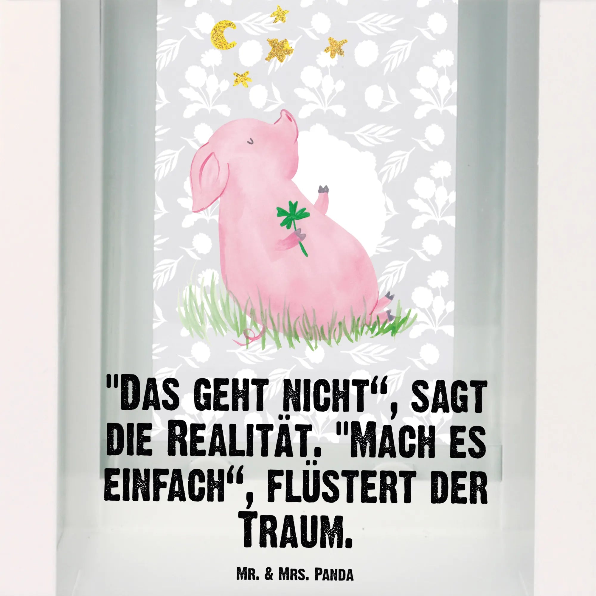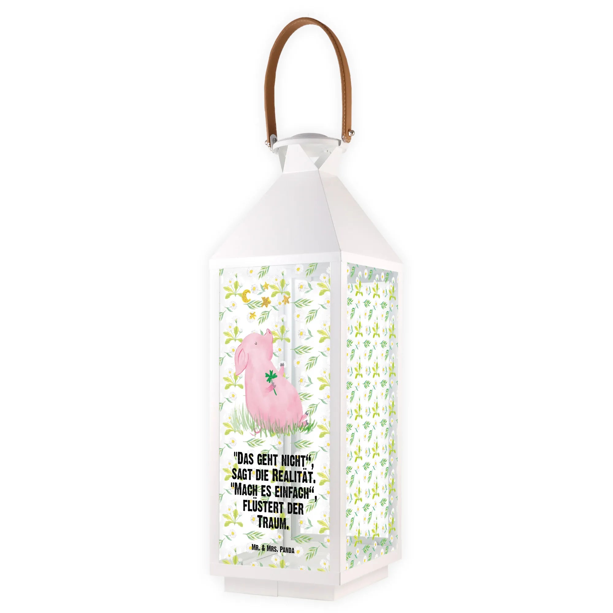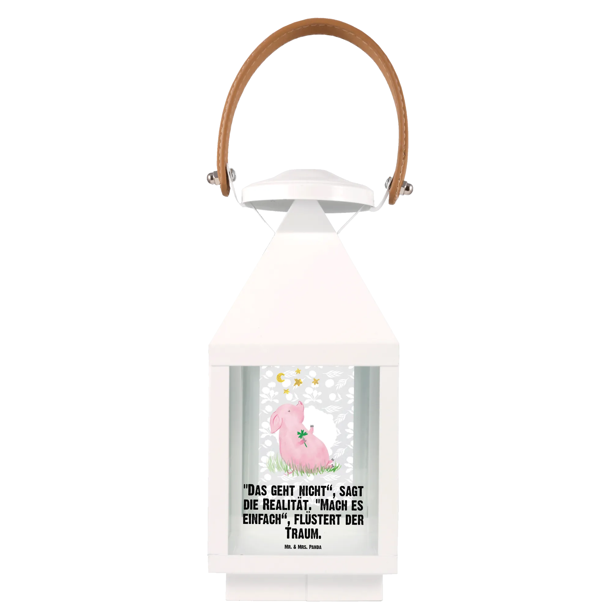 If you're looking to sprinkle a little more joy and positivity into your life or the life of a loved one, then the Decorative Lantern featuring our adorable Lucky Pig from the Small World collection is just what you need! This unique garden lantern is not just a decoration—it's a charming embodiment of motivation and dreams. Designed with love by Mr. & Mrs. Panda, this lantern showcases the cutest little pig holding a four-leaf clover, symbolizing luck and happiness. Imagine lighting up your garden, terrace, or balcony with this delightful addition that radiates good vibes!