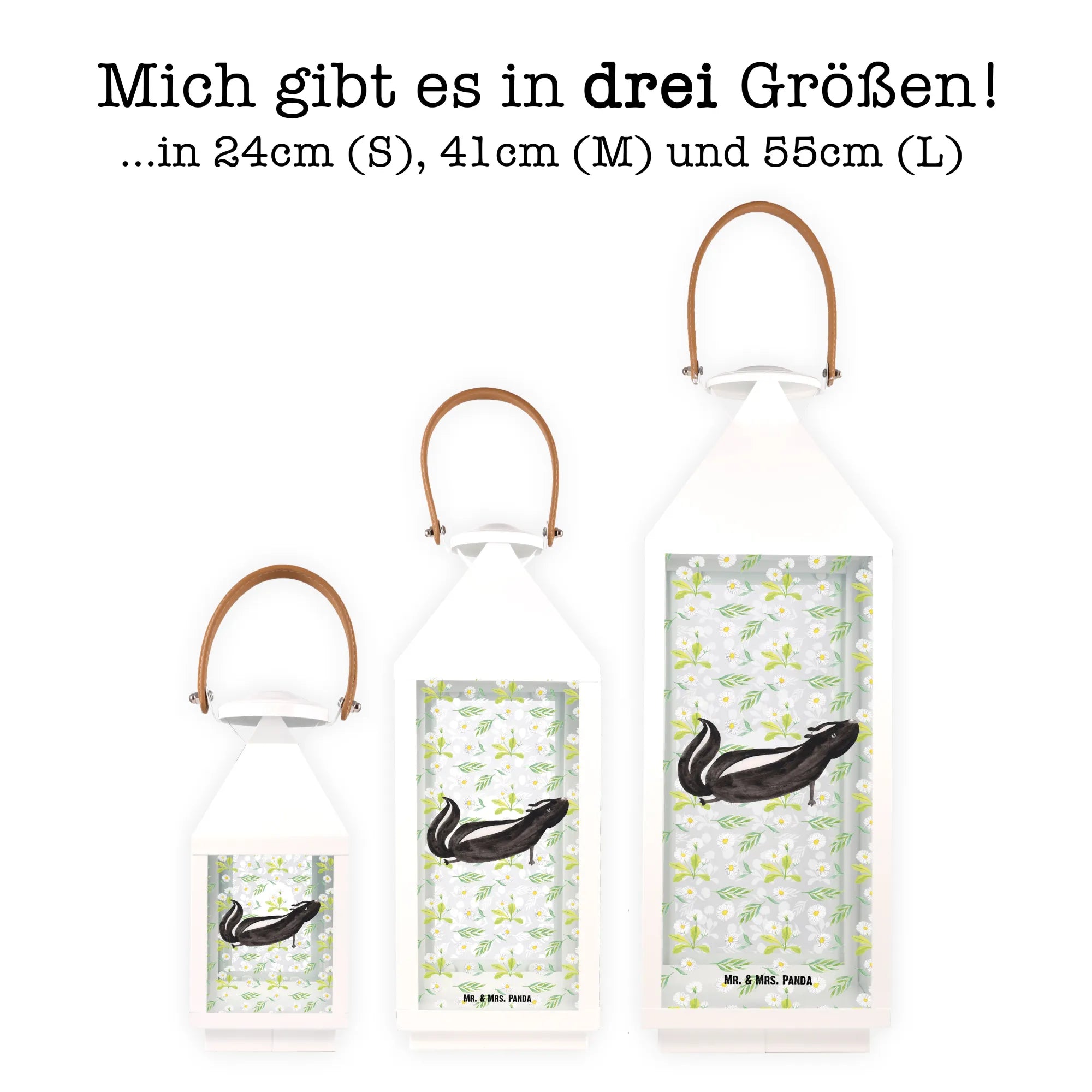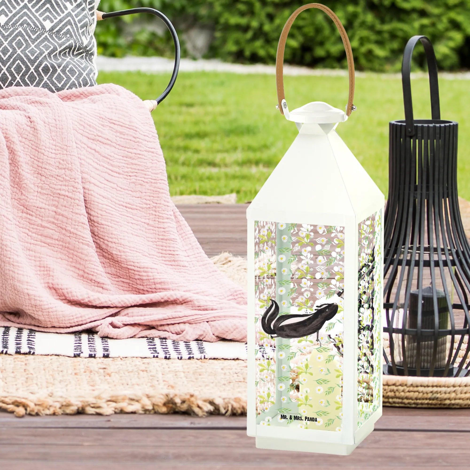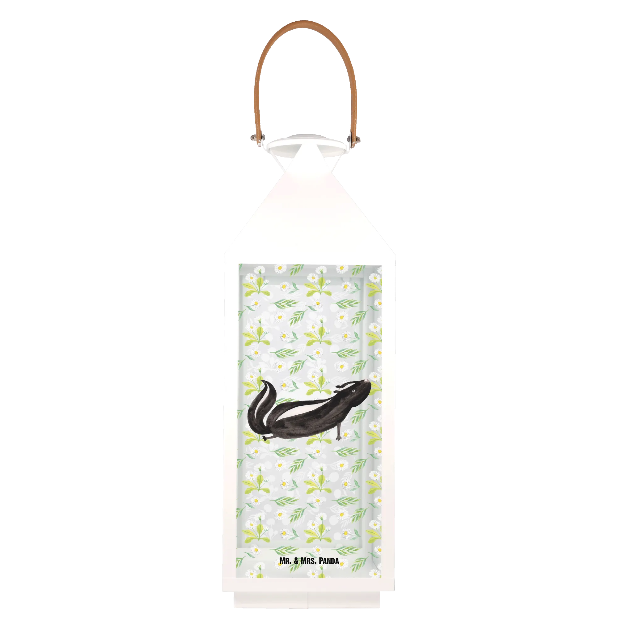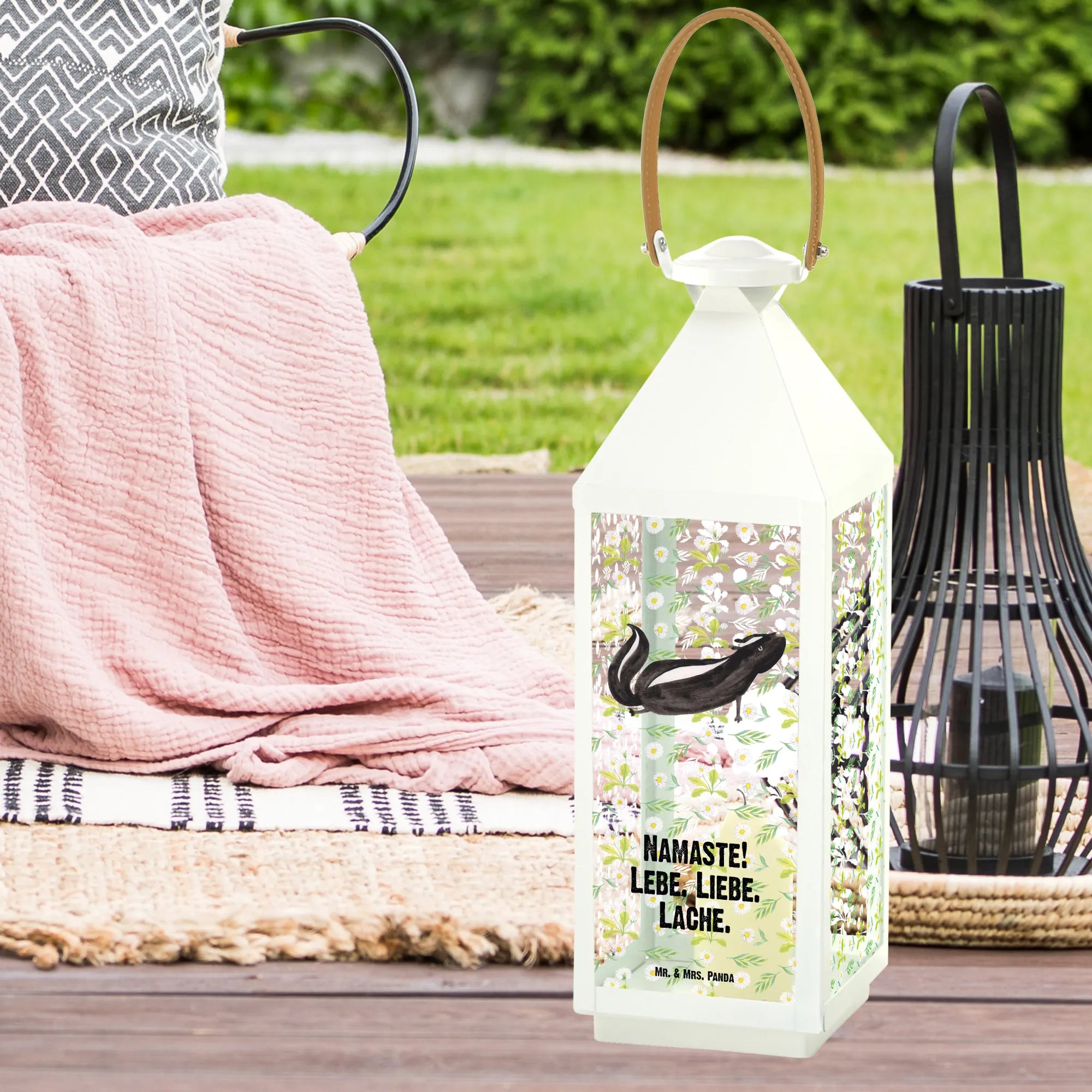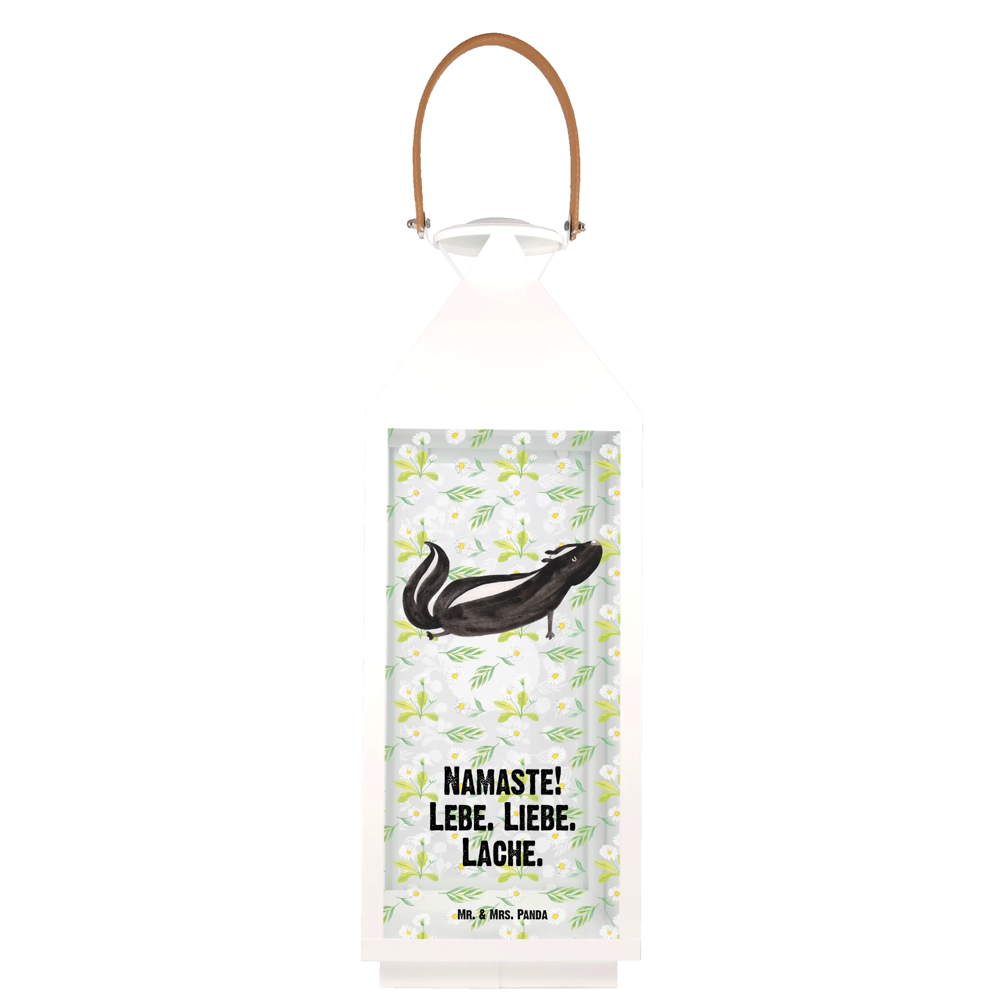 Perfect for garden decoration, it radiates positivity with its eye-catching design, showcasing a cute skunk practicing yoga surrounded by beautiful watercolor details. This unique lantern is perfect for those who appreciate wild animals and the beauty of nature, making it an ideal gift for nature lovers, animal enthusiasts, or anyone who enjoys a clever touch of humor in their decor.