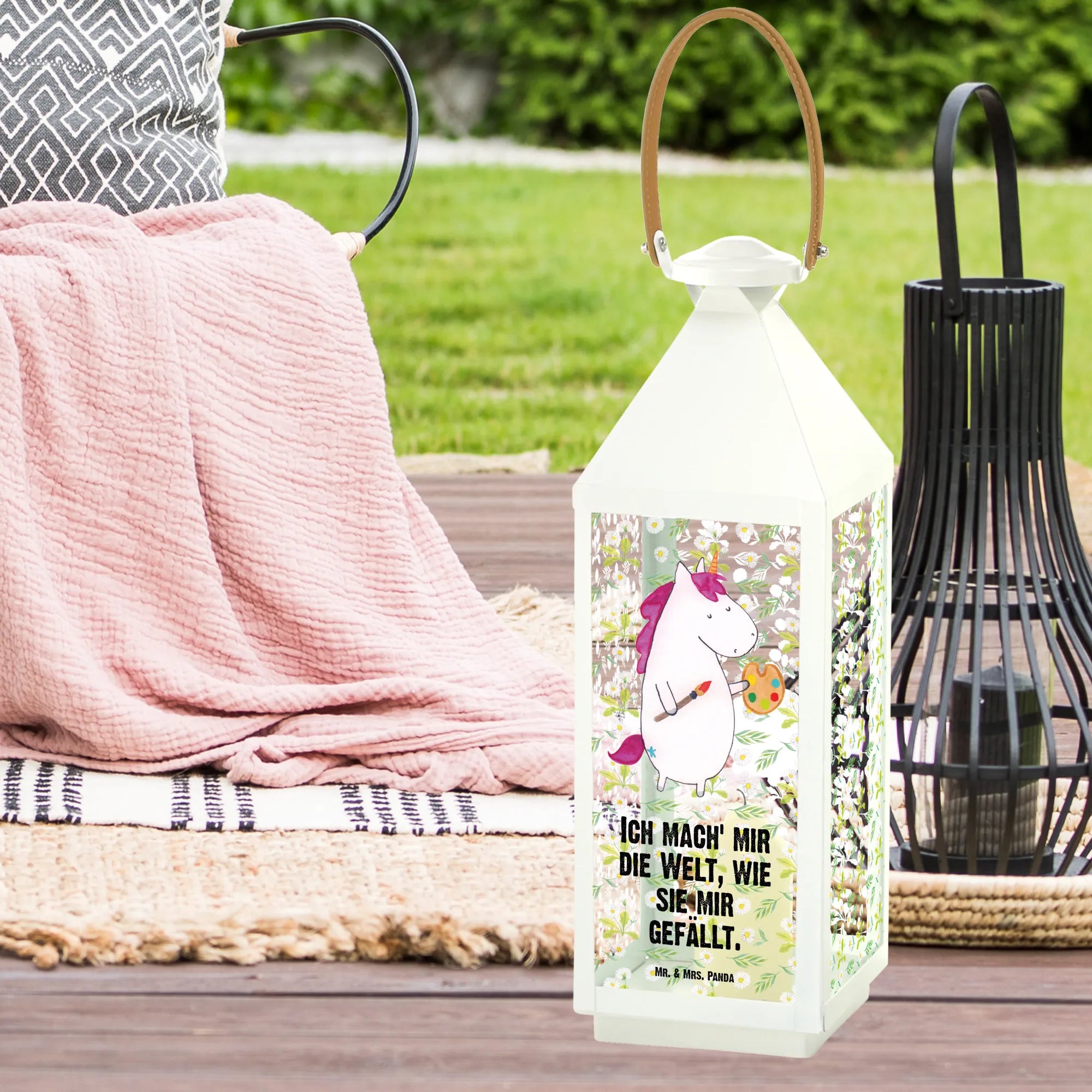 Designed with love in Hanover, Germany, this unique lantern features a darling motif of a unicorn painting at an easel, surrounded by a plethora of colors, bringing an enchanting charm to your garden or balcony.