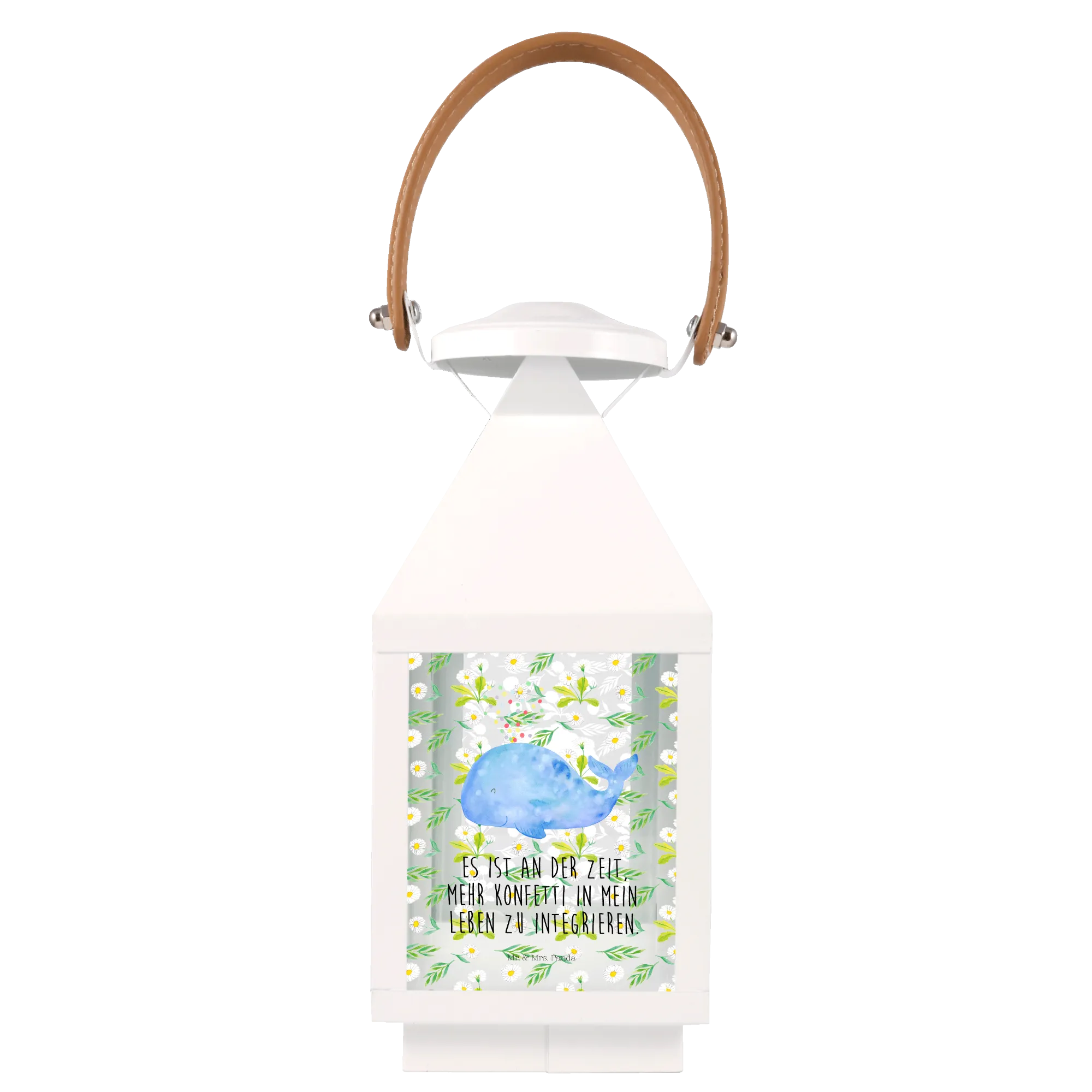 Imagine a gentle whale swimming through a sea of vibrant confetti—this delightful image captures the spirit of our Decorative Lantern featuring the charming whale confetti motif from the Marine Animals collection by Mr. & Mrs. Panda.