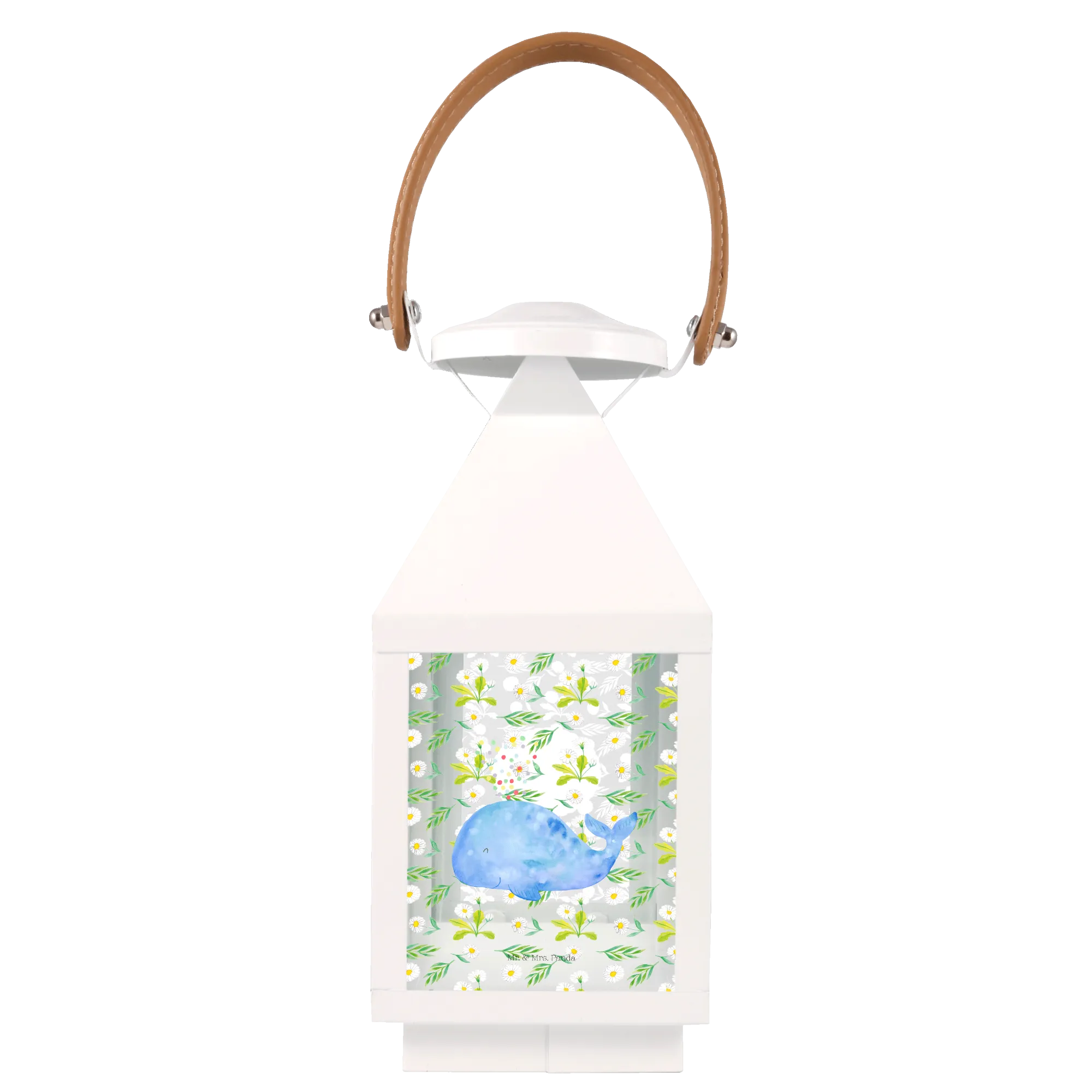 Crafted with care by Mr. & Mrs. Panda, this unique lantern beautifully showcases a serene blue whale with a sweet smile, surrounded by a playful cloud of confetti. This enchanting design is ideal for those who adore marine life and wish to bring a touch of the ocean into their residences. Imagine the warm glow this decorative lantern will cast on your patio or balcony as you gather for a cozy evening with friends and family, celebrating life's moments.