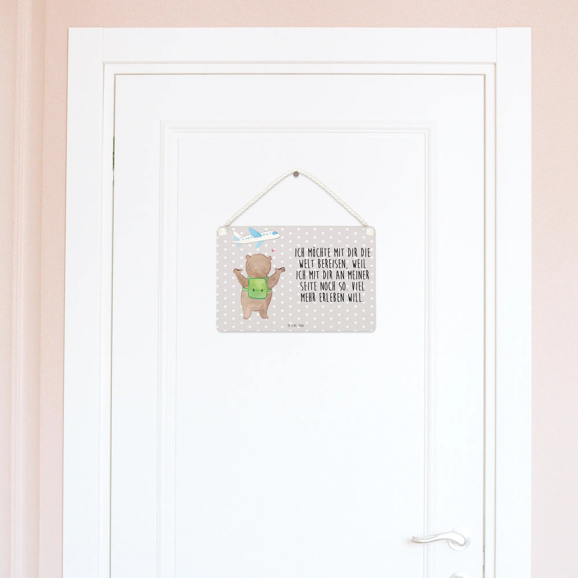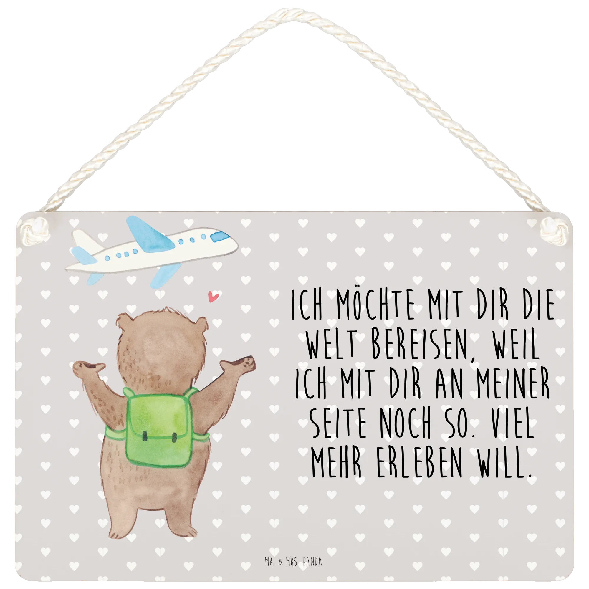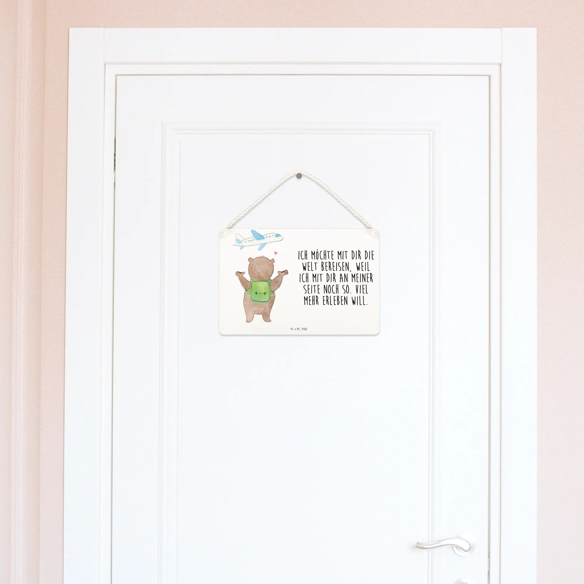 Imagine the delight of a dreamy bear, arms wide open, ready to embrace the vast world of adventure! This charming bear, with his green messenger bag, stands beneath a stylized airplane, his eyes sparkling with joy. Above him, a little red heart floats, perfectly capturing the sweet essence of exploration. The slogan, 'Ich möchte mit dir die Welt bereisen, weil ich mit dir an meiner Seite noch so viel mehr erleben will,' beautifully expresses the feeling of wanting to share every moment with your loved one. This motif serves as a perfect Valentine's Day gift for women, a loving anniversary token, or a heartfelt wedding anniversary party favor. Let this whimsical design inspire your romantic journeys together!