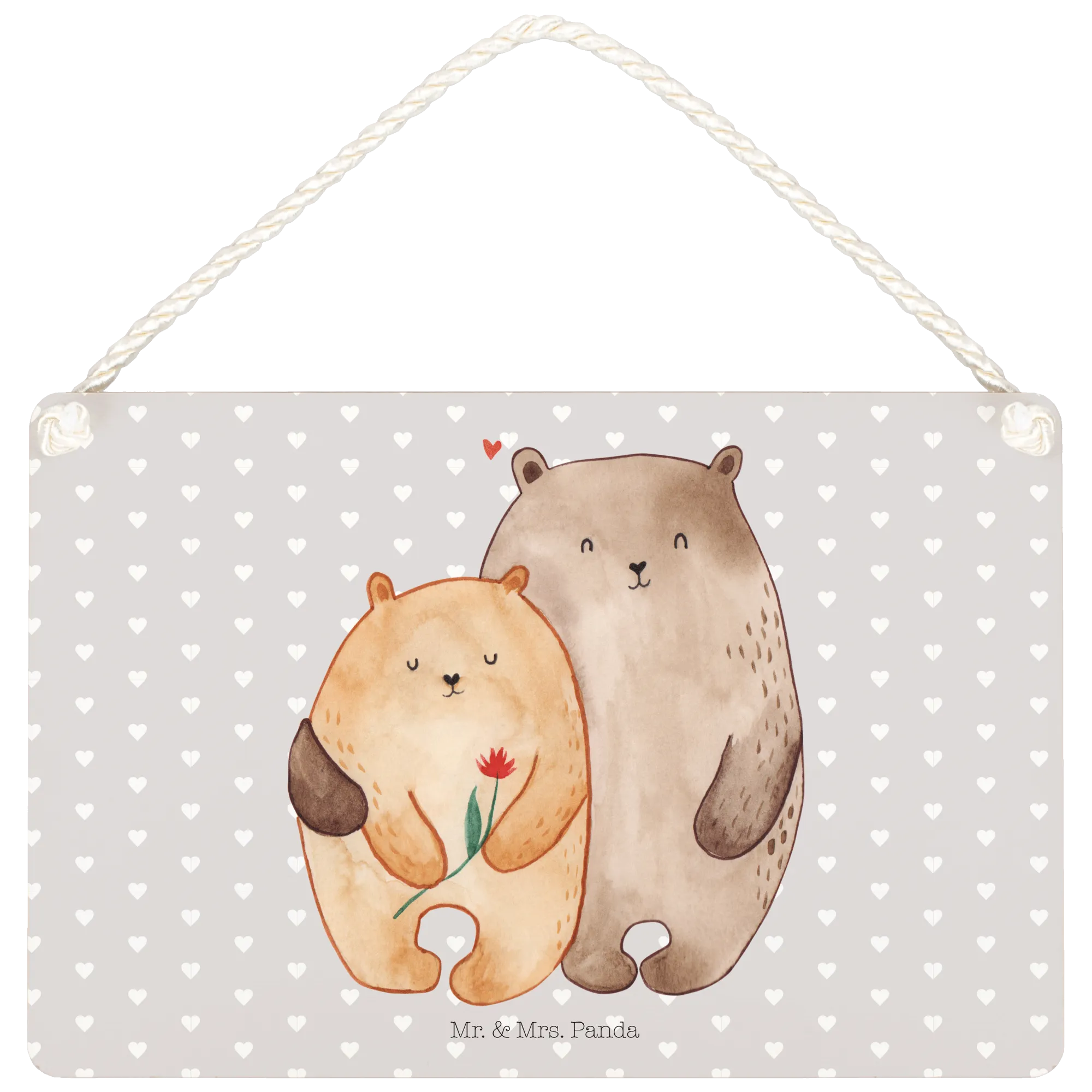 The sweet design features two loving bears creating a heart shape with their forms, with one bear tenderly holding a flower, capturing the essence of being in love. This lovely piece brings a smile to your face every time you glance at it. Ideal for couples in various stages of their relationship, this decorative sign is perfect as a wedding gift, an anniversary present, or simply as a reminder of your great love story.