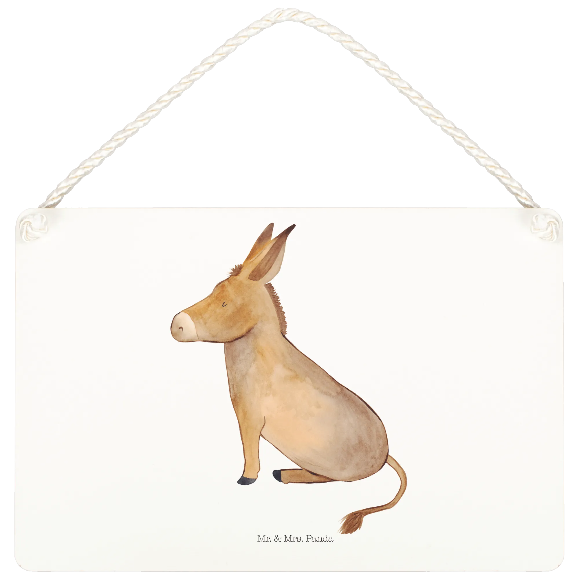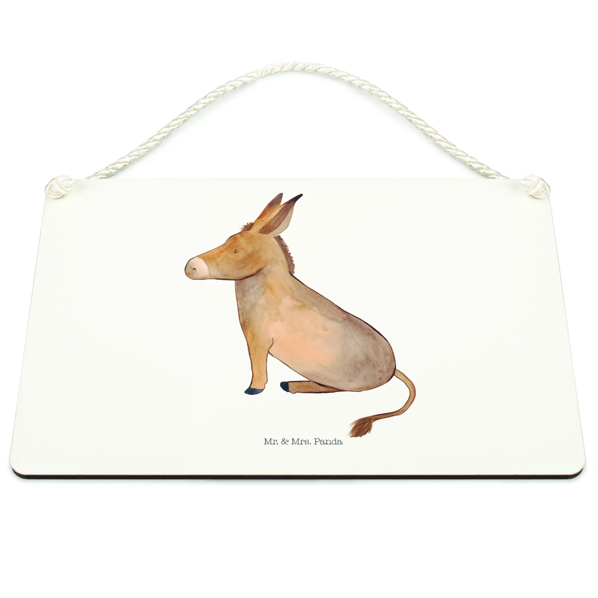 Crafted with meticulous attention to detail, this decorative sign showcases a hand-drawn donkey, characterized by its soft brown-beige hues, lovable large ears, and those gentle, inviting eyes. The donkey, which is portrayed in a cozy sitting position, exudes a sense of serenity that reminds us to appreciate the little things in life. The detailed illustration, complete with shading and texture, brings this delightful creature to life, creating a warm atmosphere that feels inviting and comforting.