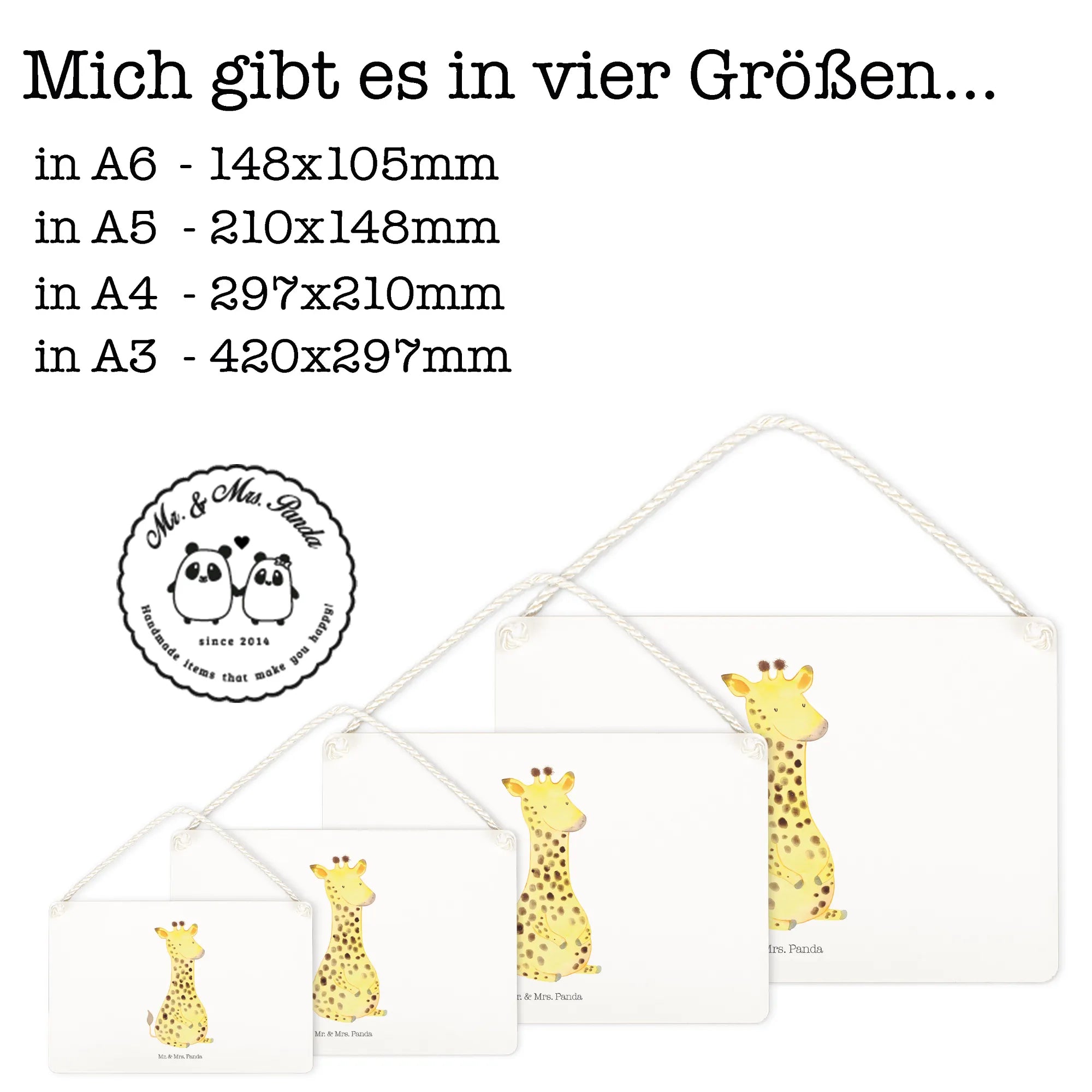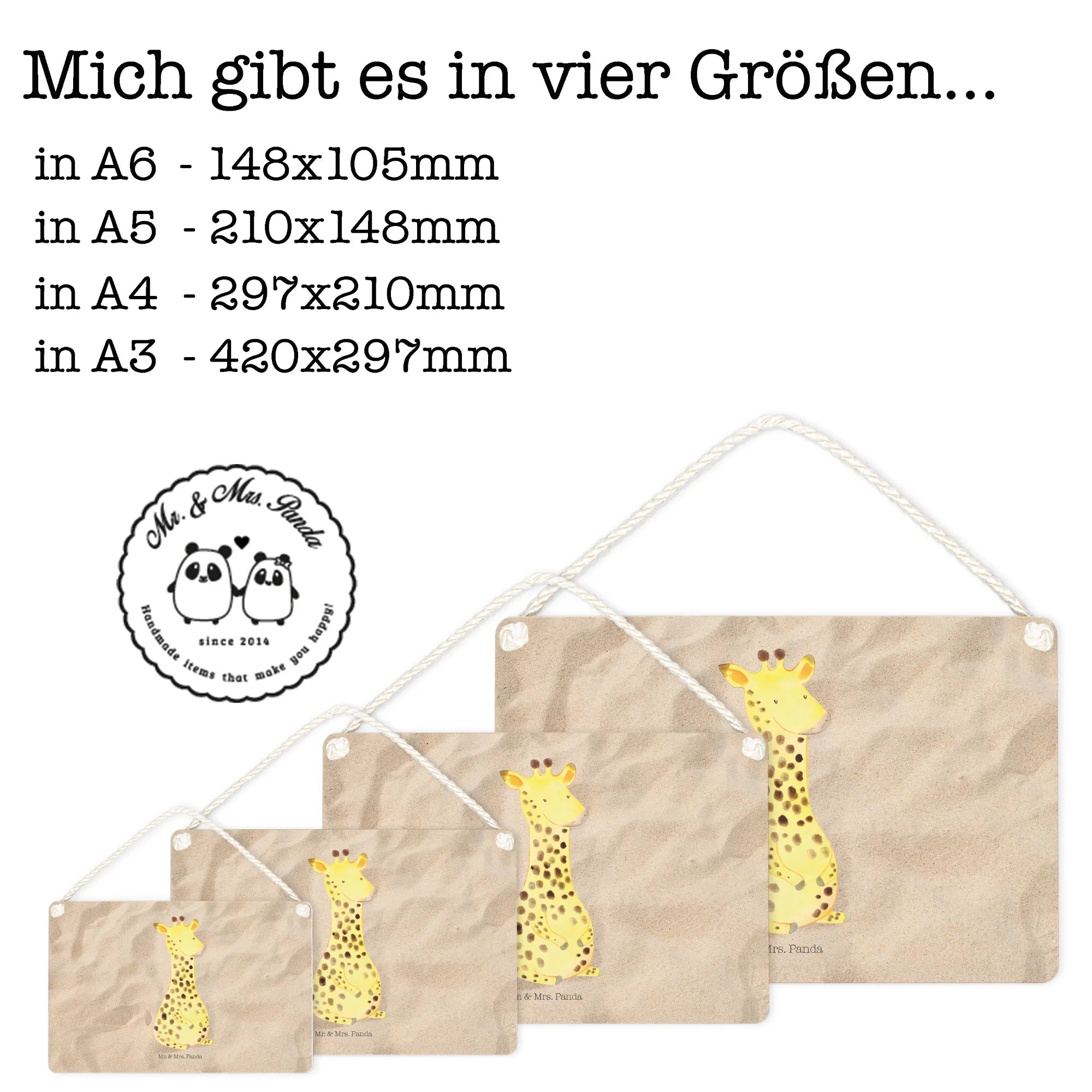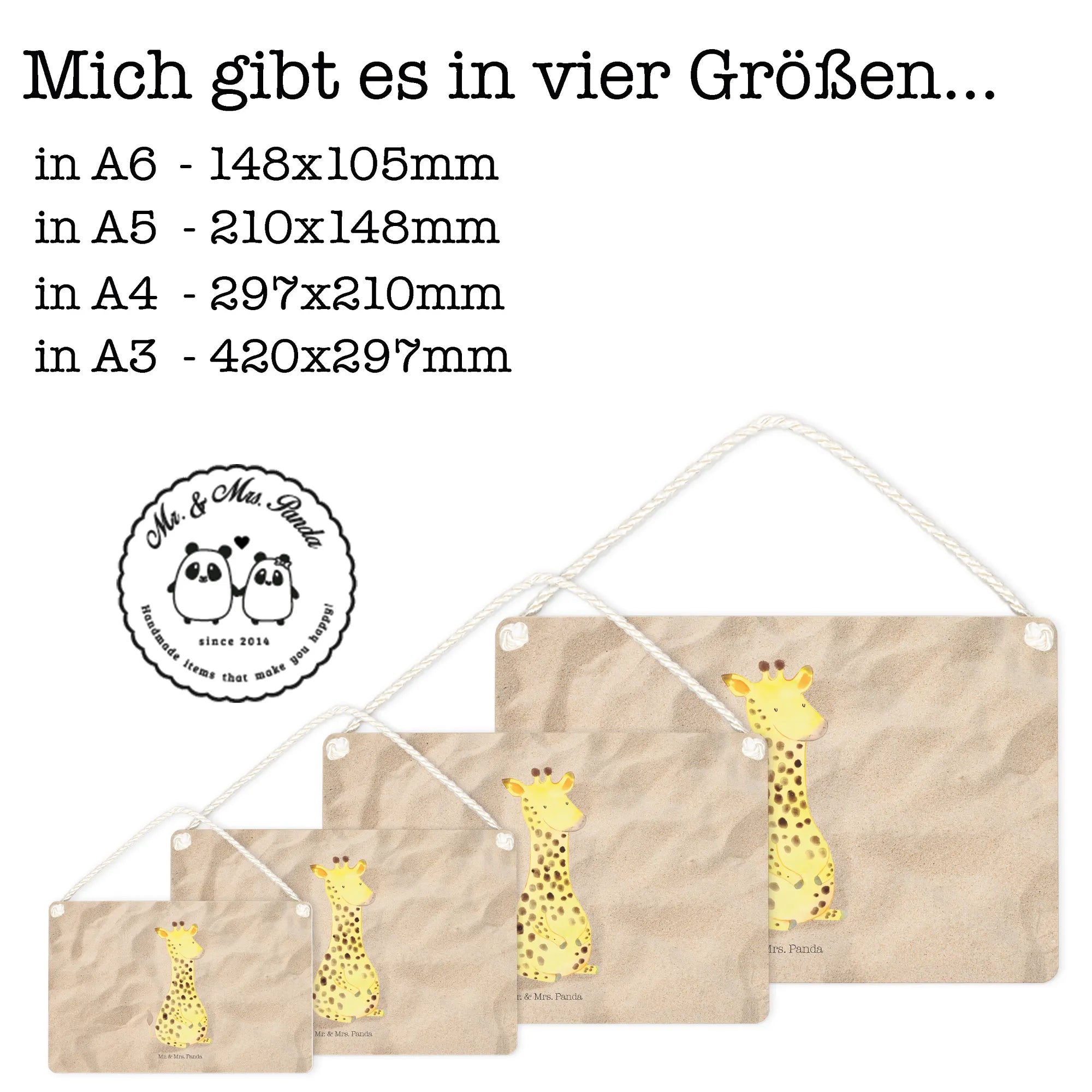 With its fantastic size of DIN A4 (8 inches x 12 inches), it’s ideal for a door sign or as unique wall decor. The decorative sign features a beautifully twisted cord for hanging, making it easy to display in any area of the house. Whether it’s a birthday gift for someone adventurous, a delightful housewarming present, or a cheerful addition to your decor, the Giraffe Satisfied sign is bound to bring smiles all around.