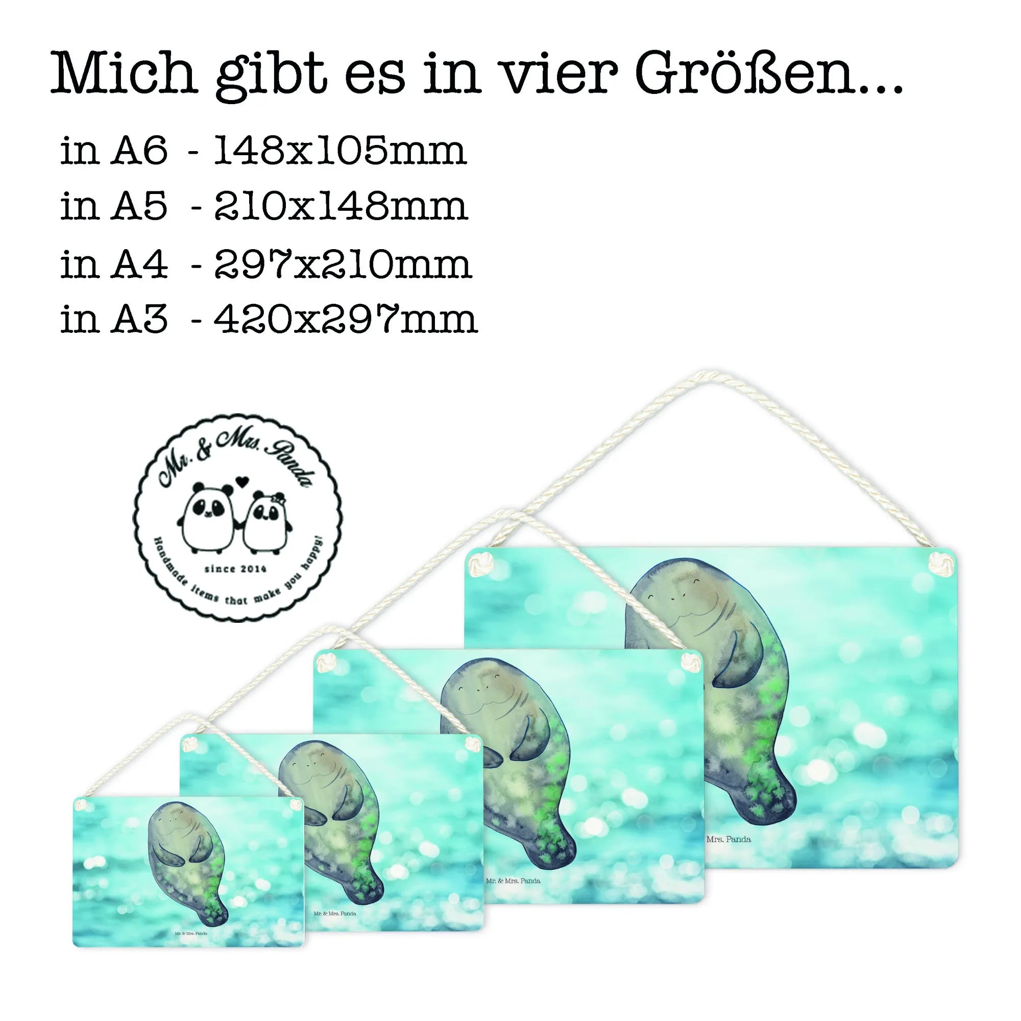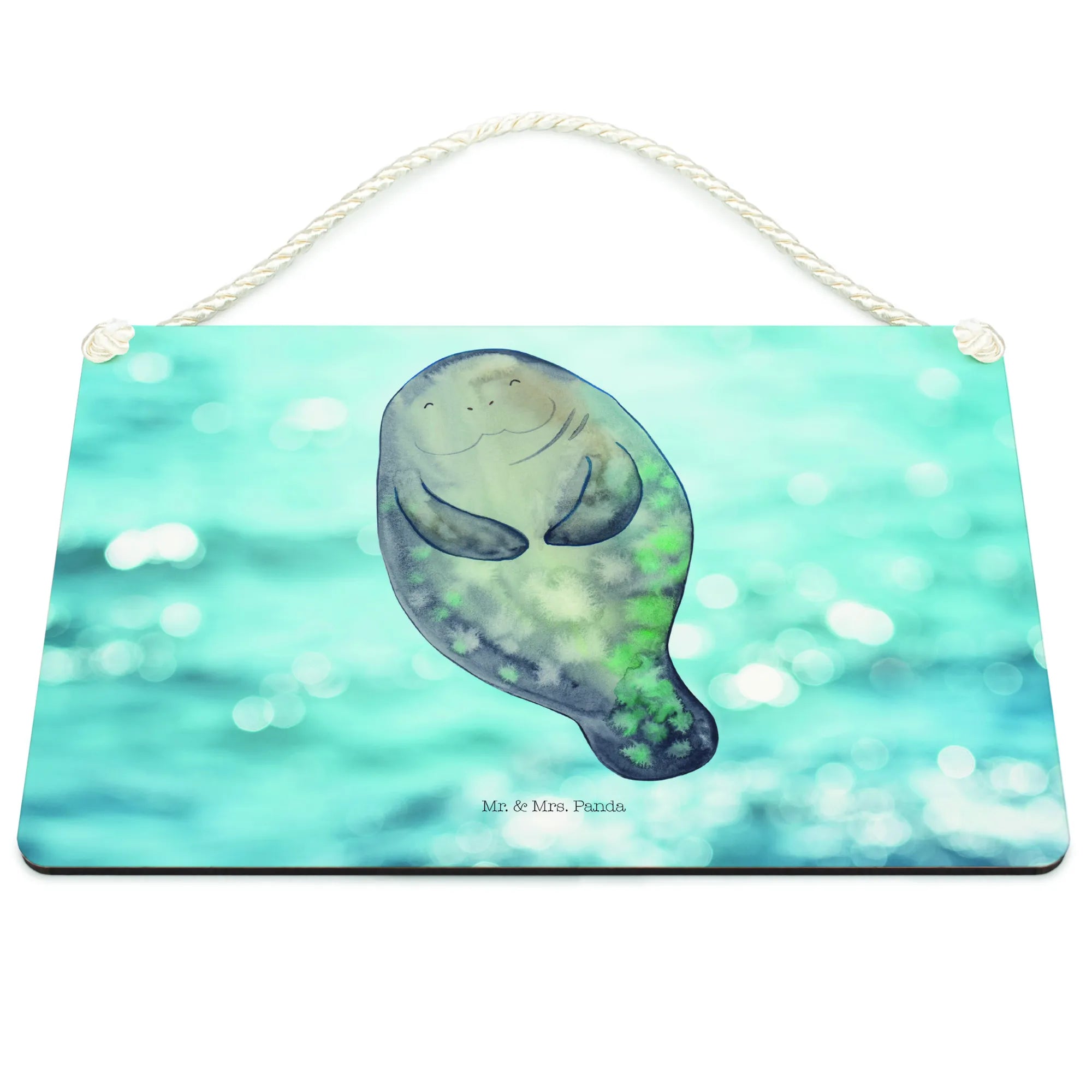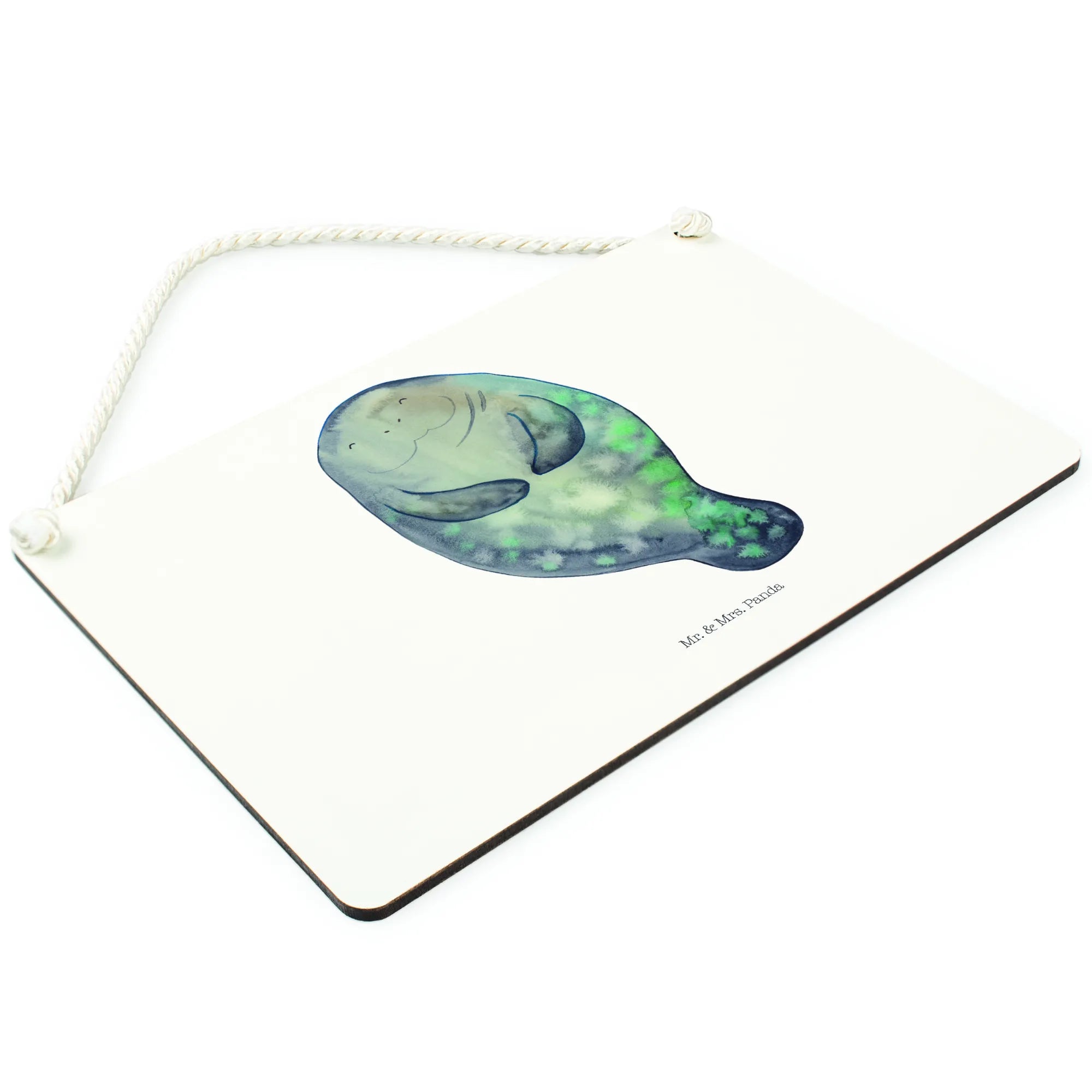 Crafted from high-quality MDF, this decorative sign is perfect for both your door and wall. With its straightforward yet charming motif, the happy manatee captures the essence of living in harmony with nature and oneself. The soft blue and gray tones, complemented by gentle green accents, evoke the soothing atmosphere of the ocean, reflecting the tranquil underwater world.