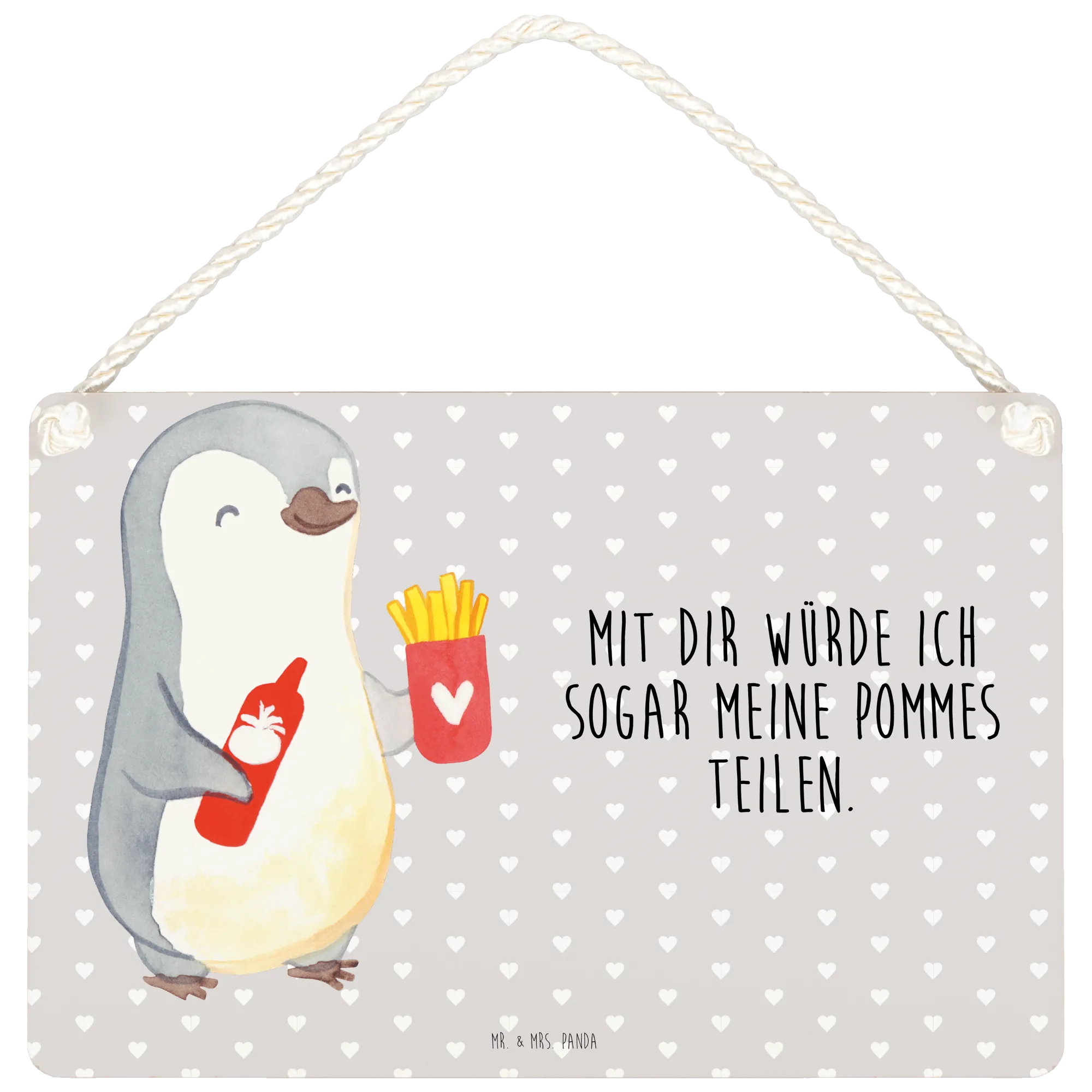 Decorative sign penguin French fries - DIN A4 - Grey Pastel