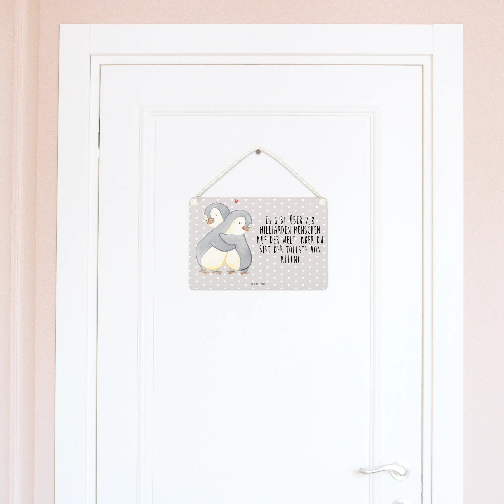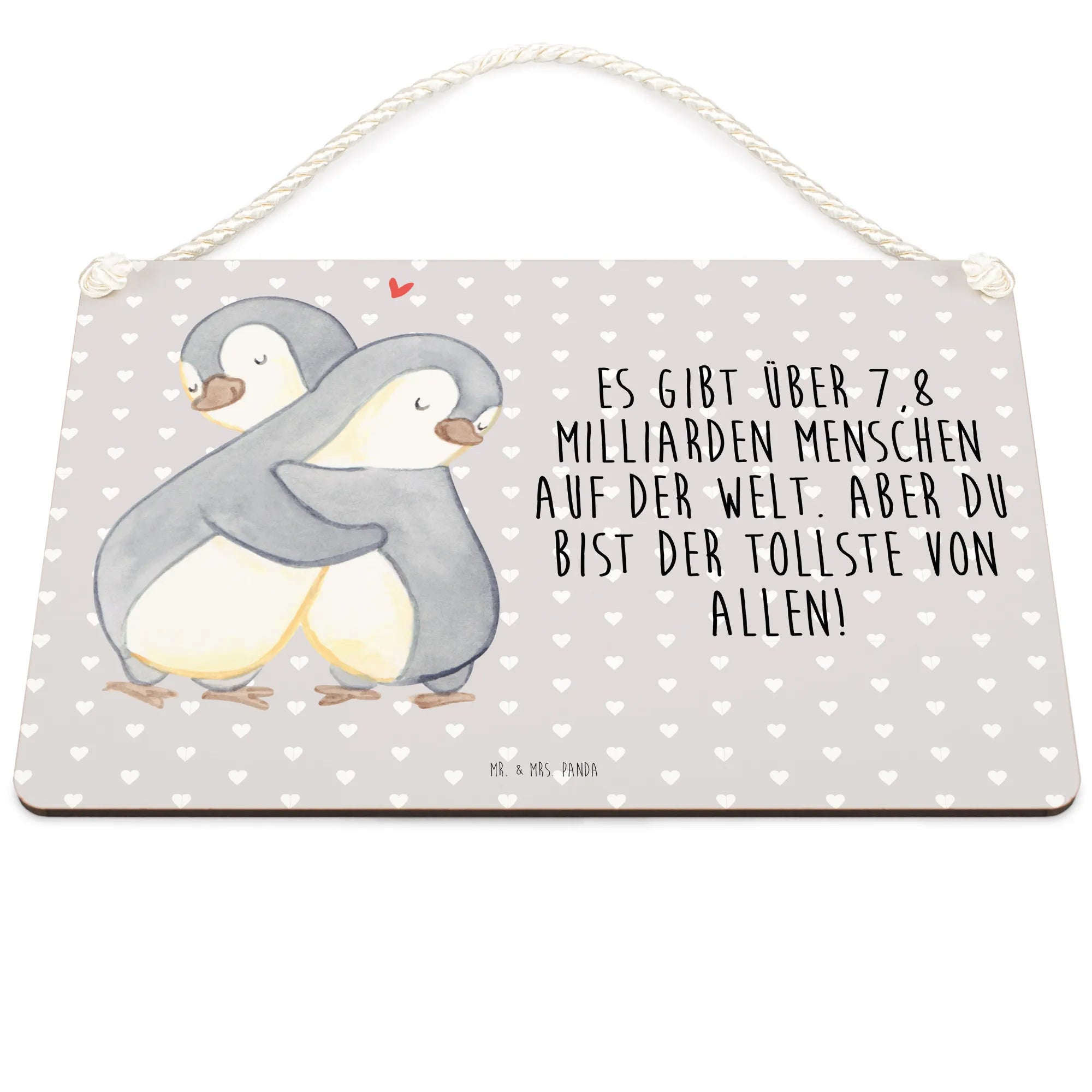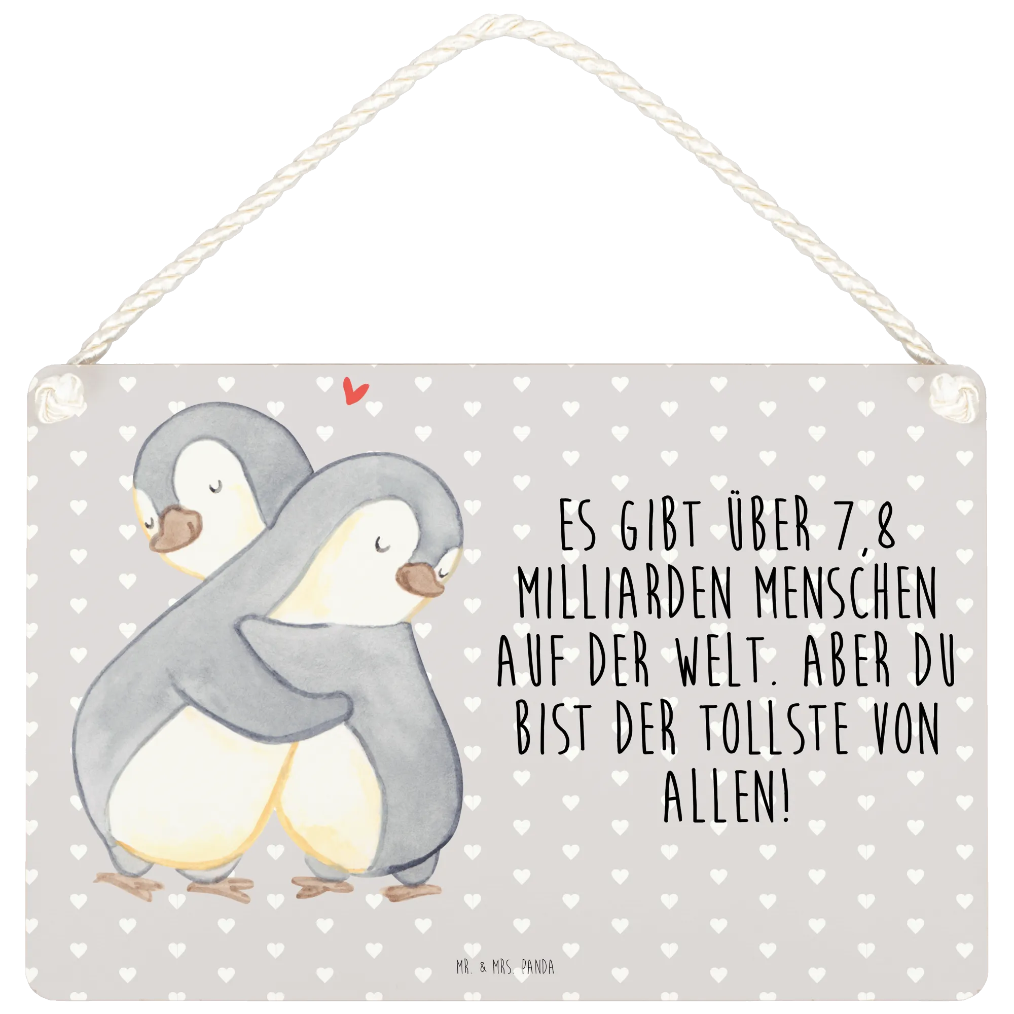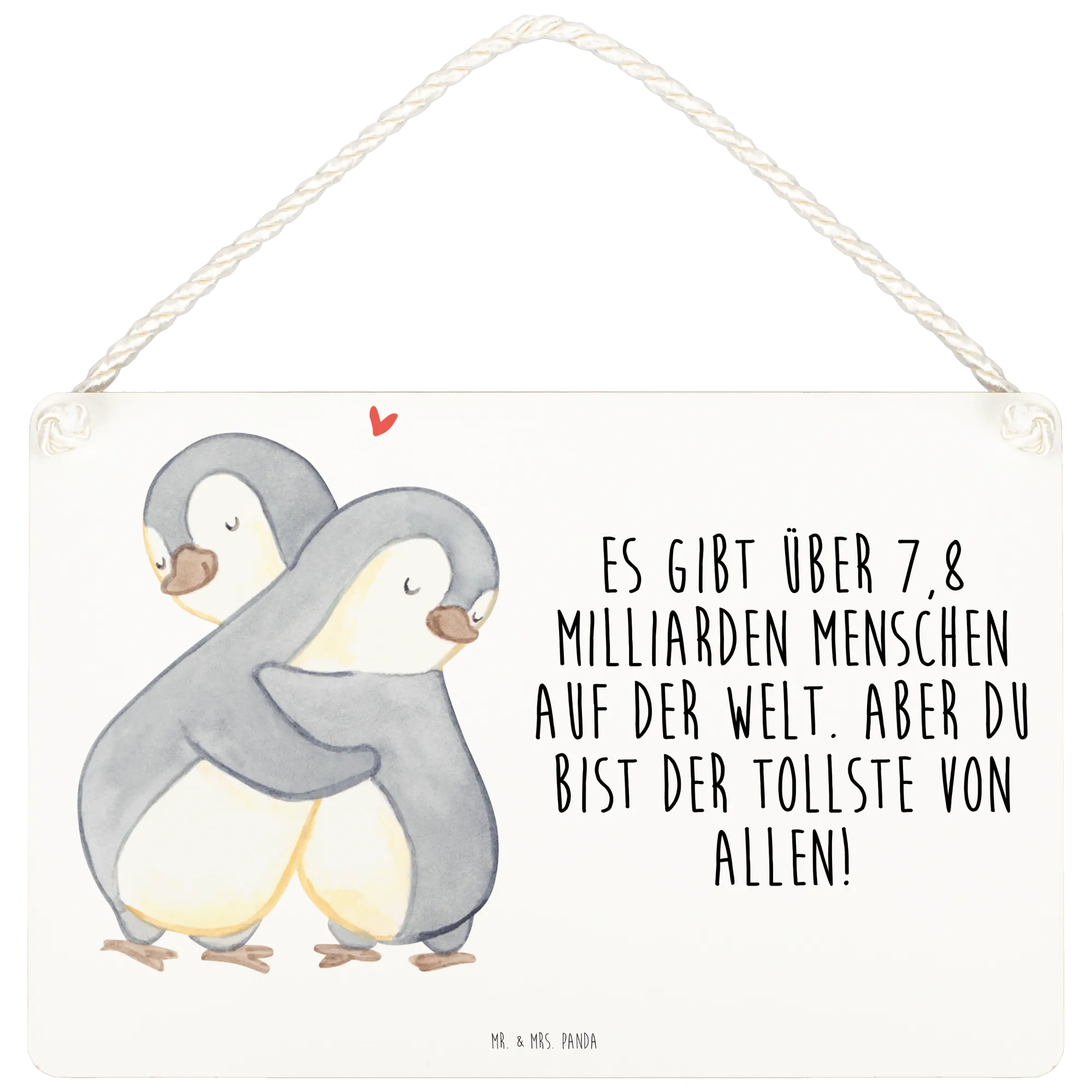 Mit einem handgezeichneten Motiv von zwei adorablen Pinguinen, die sich umarmen, strahlt es puren Charme und Zuneigung aus. Der Spruch "Es gibt über 7,8 Milliarden Menschen auf der Welt. Aber du bist der Tollste von allen!" ist ein liebevoller Liebesbeweis, der nicht nur für Frauen, sondern auch für Männer und Ehemänner eine schöne Geste ist. So wird das Deko Schild zum idealen Begleiter für jedes romantische Geschenk und versprüht eine gemütliche Atmosphäre in jedem Zuhause.