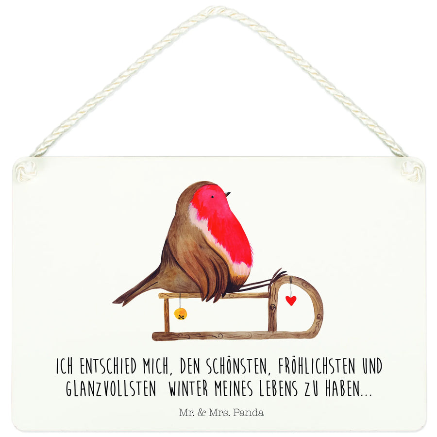 Decorative sign robin Sleds - with a saying - White