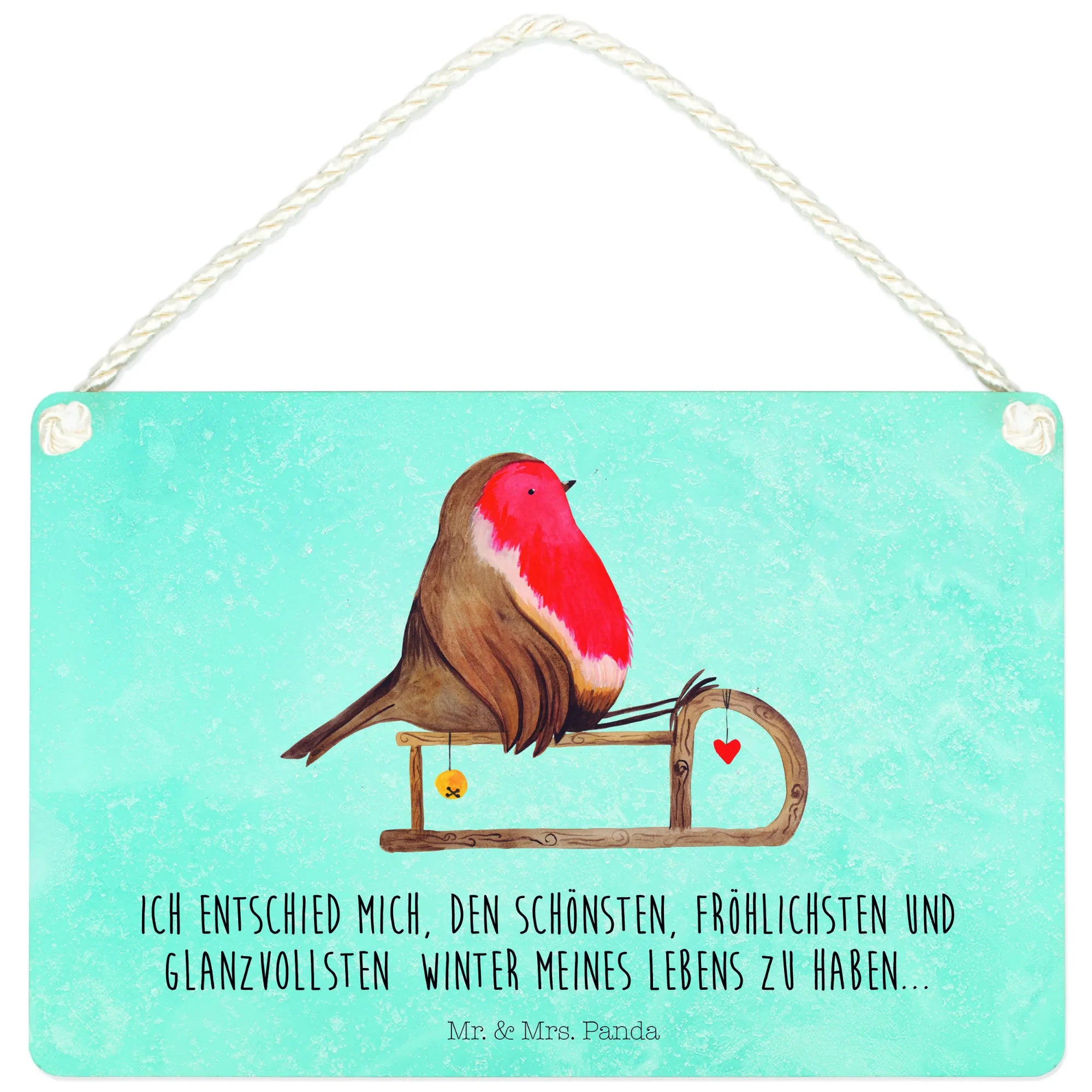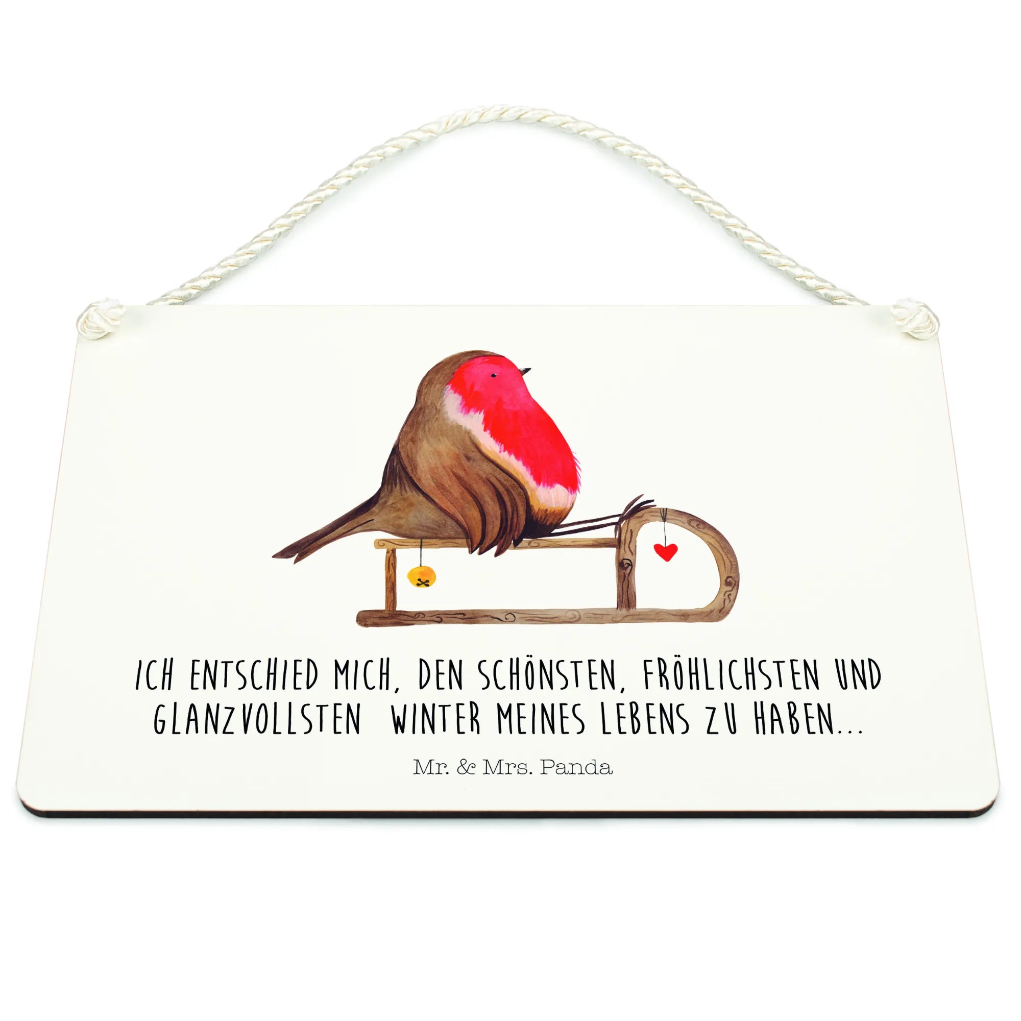 Are you looking for the perfect way to sprinkle some winter magic into your home? Our Decorative Sign featuring the charming Robin on a Sleigh from the Winter Collection by Mr. & Mrs. Panda is the answer! This delightful piece of art is not just a sign; it's a cozy reminder of the joy that winter and the holiday season bring. With its beautiful hand-drawn design, this sign encapsulates the spirit of Christmas, capturing the image of a sweet robin delightfully perched on its rustic wooden sleigh, ready to glide into your heart and home.