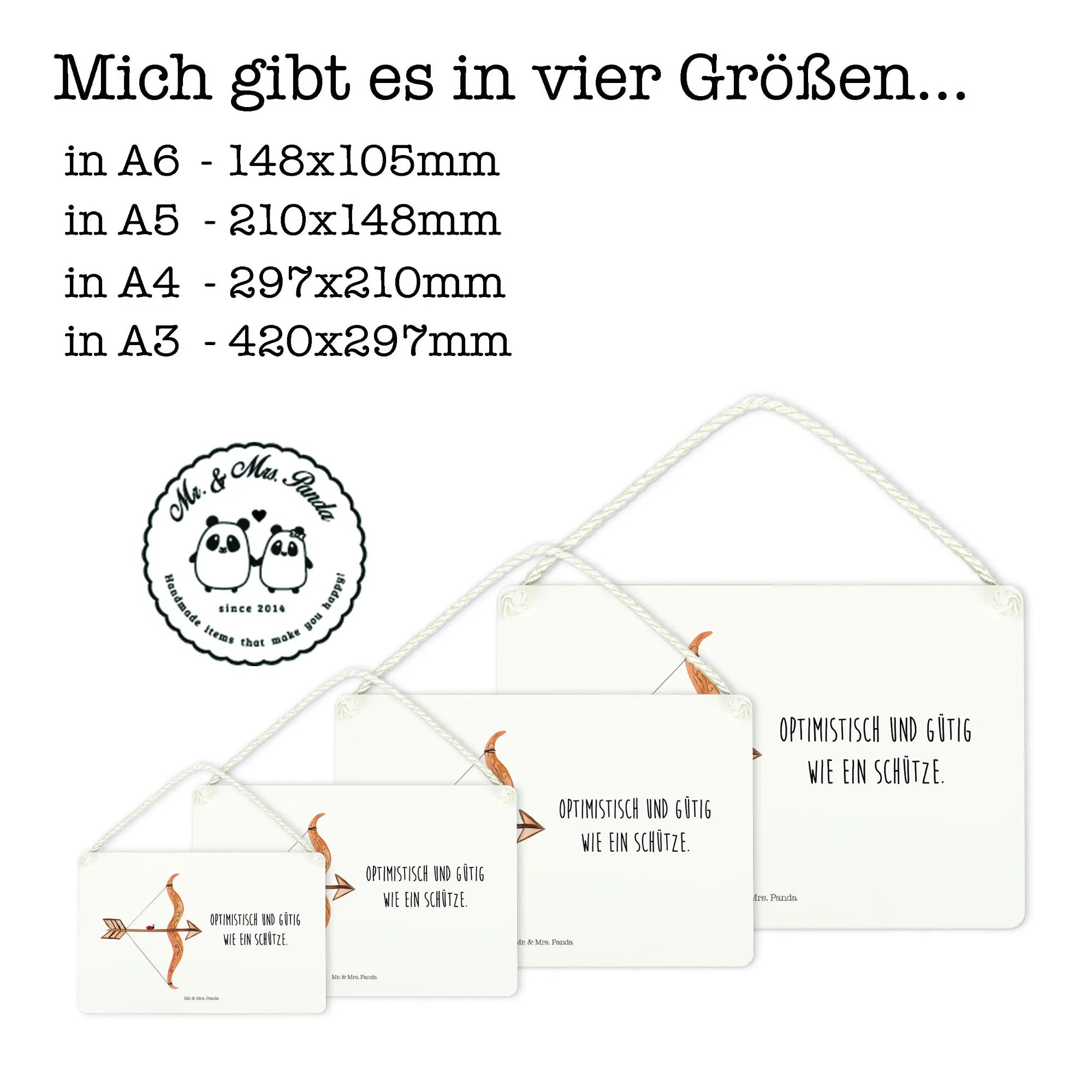 This beautifully crafted wooden sign captures the essence of the Sagittarius spirit, celebrated for their optimism and kindness. Measuring at a convenient DIN A6 size (105 mm x 148 mm), this sign is perfect for any space, whether it's hanging on a door, adorning a wall, or serving as a whimsical wayfinder that adds character to any room.