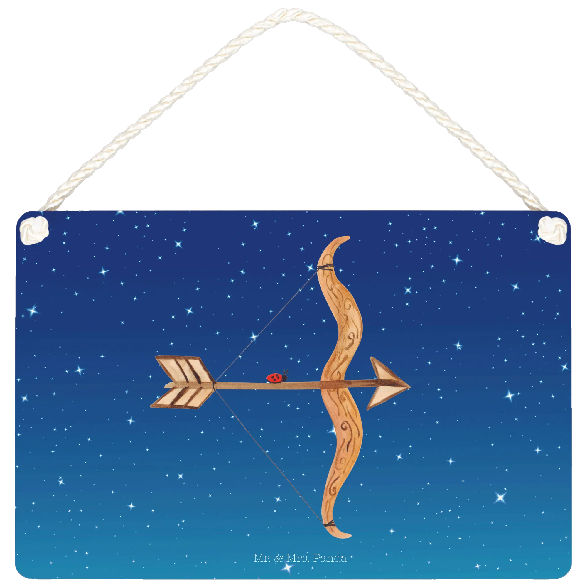 Crafted from high-quality MDF, this sign ensures durability, making it an excellent addition to any home. The captivating design showcases an enchanting starry sky blue background, adorned with a charming motif that reflects the Sagittarius star sign's adventurous nature – the shooter of the zodiac who hits the target with love and friendship.
