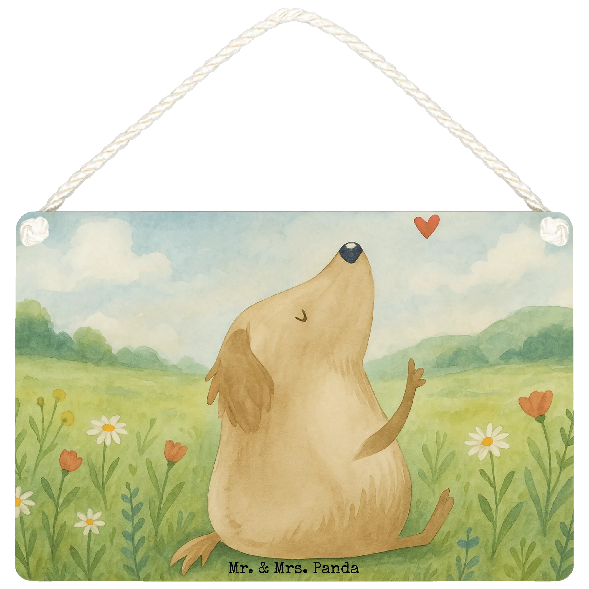 Das Deko Schild „Hund Liebe" aus der Hunde Kollektion von Mr. & Mrs. Panda ist die perfekte Wahl für Hundebesitzer, Frauchen und alle, die ihr Zuhause mit einer warmen, herzigen Stimmung verschönern möchten. Das zarte Aquarell-Motiv eines fröhlichen Hundes mit kleinem Herzchen bringt sofort ein Lächeln an die Wand – ob als Türschild, Wandschild oder Küchenschild.