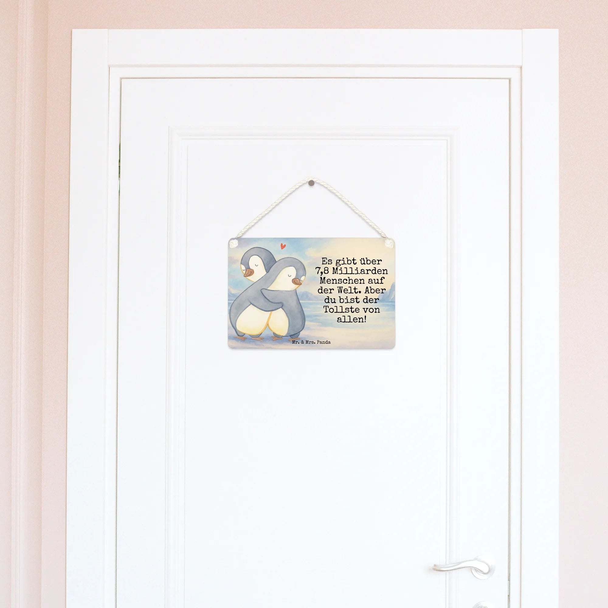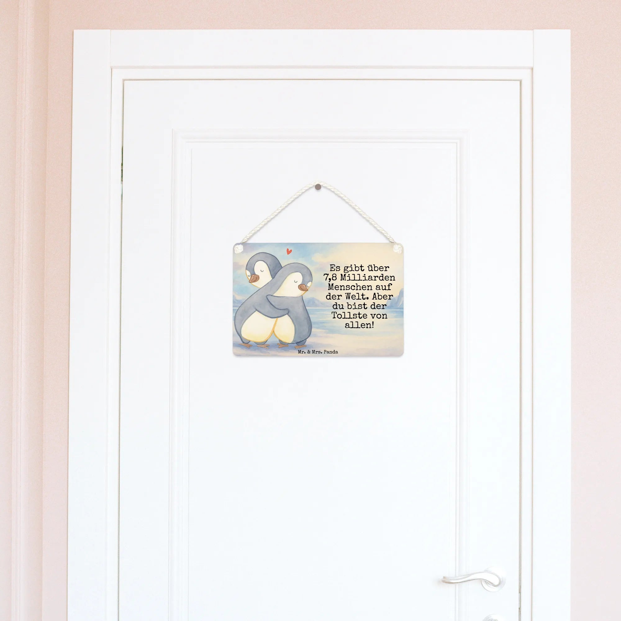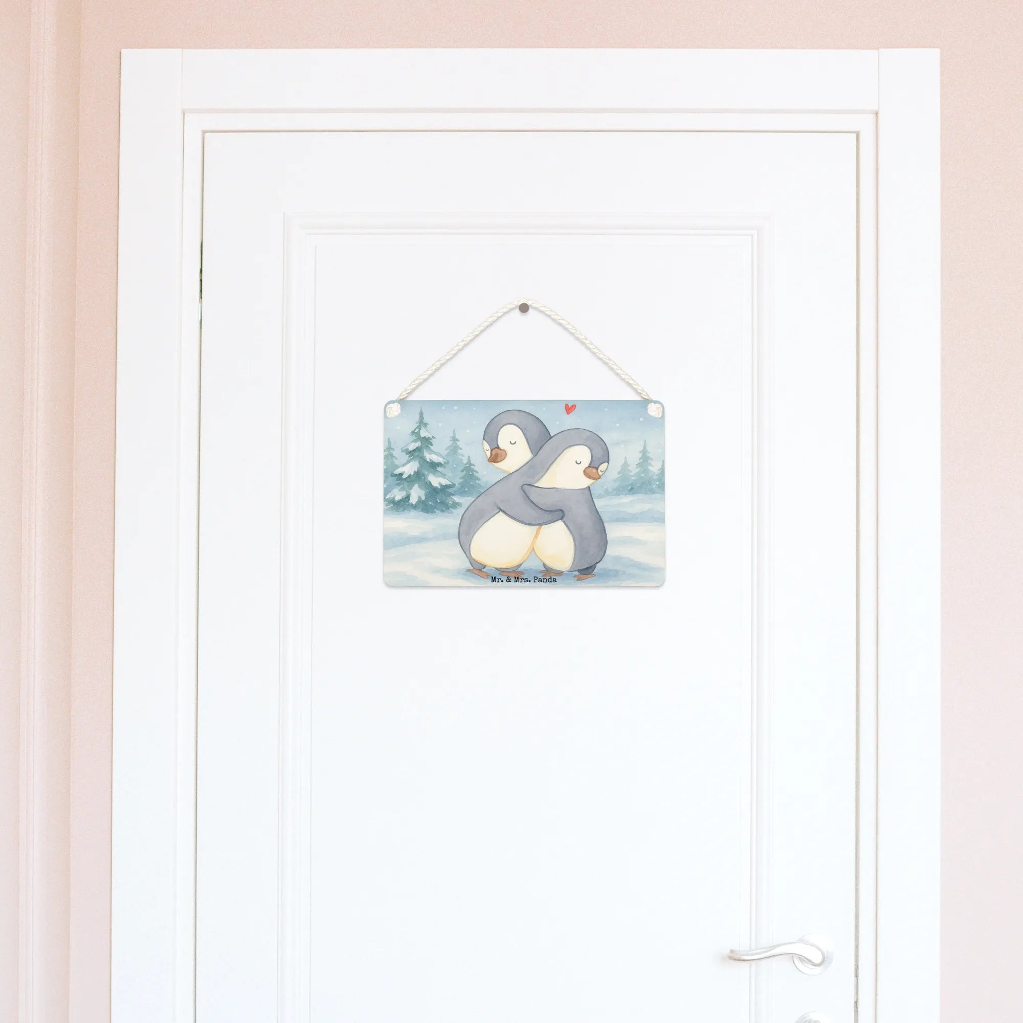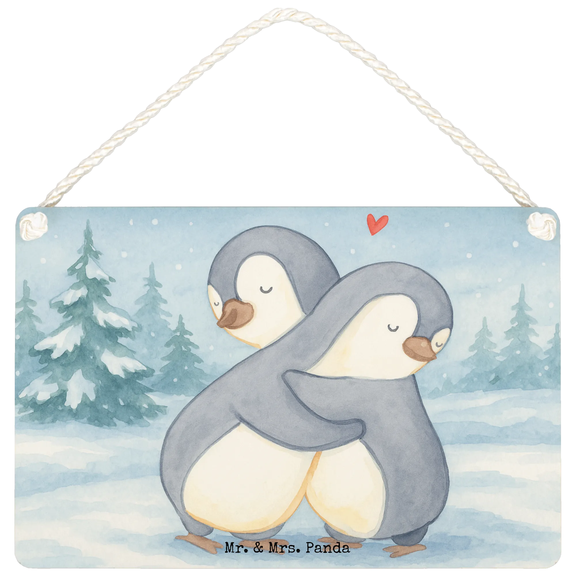 Deko Schild Pinguine Kuscheln Design - DIN A5 - mit Spruch