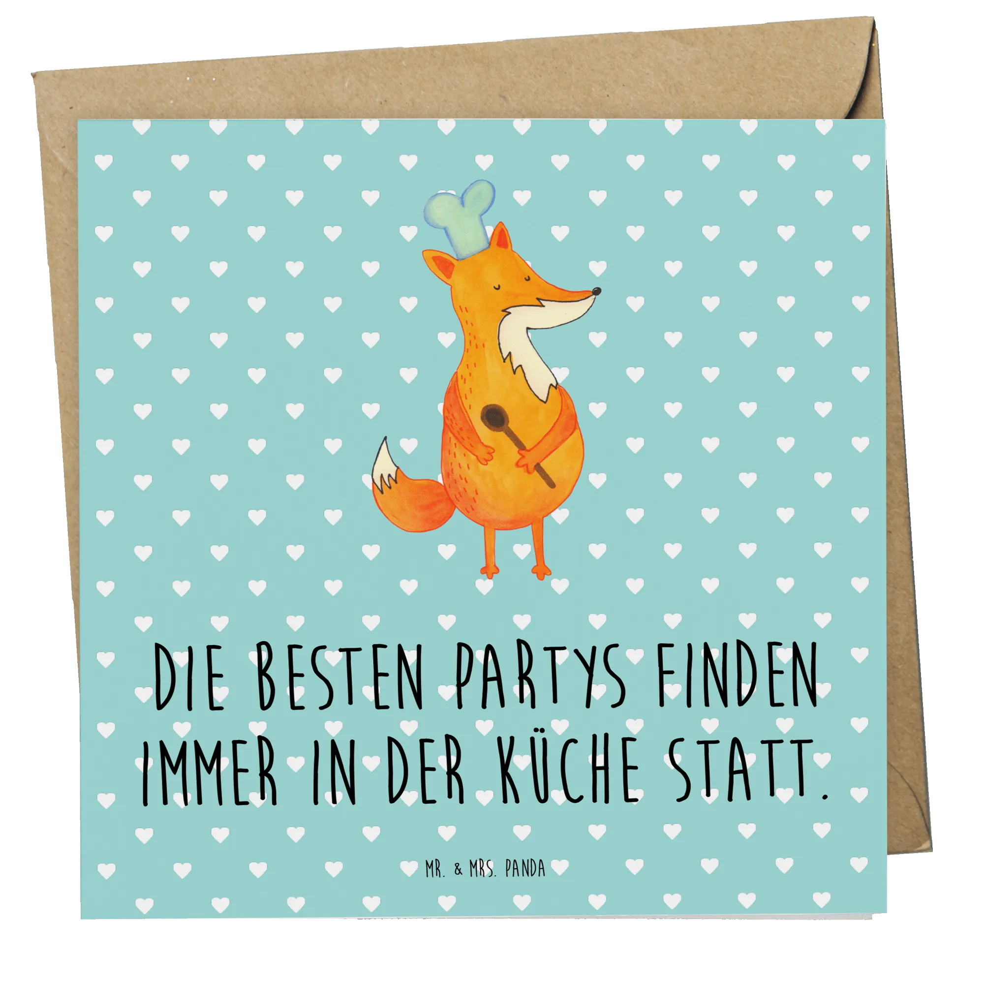 Deluxe Card Fox A cook - with a saying - Turquoise Pastel