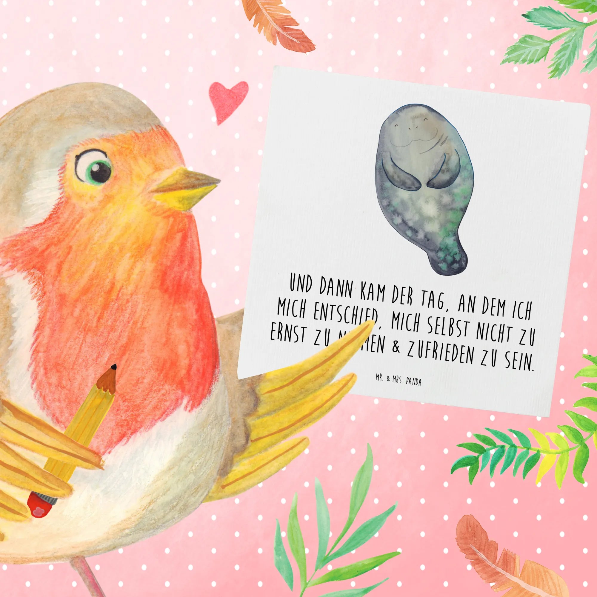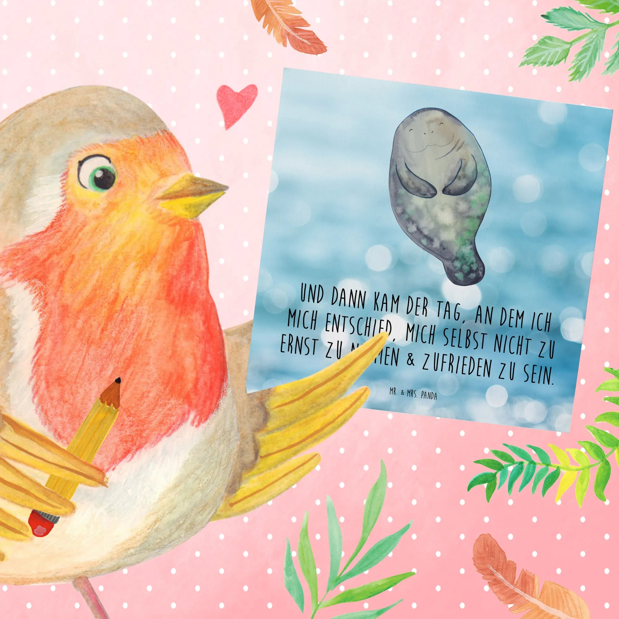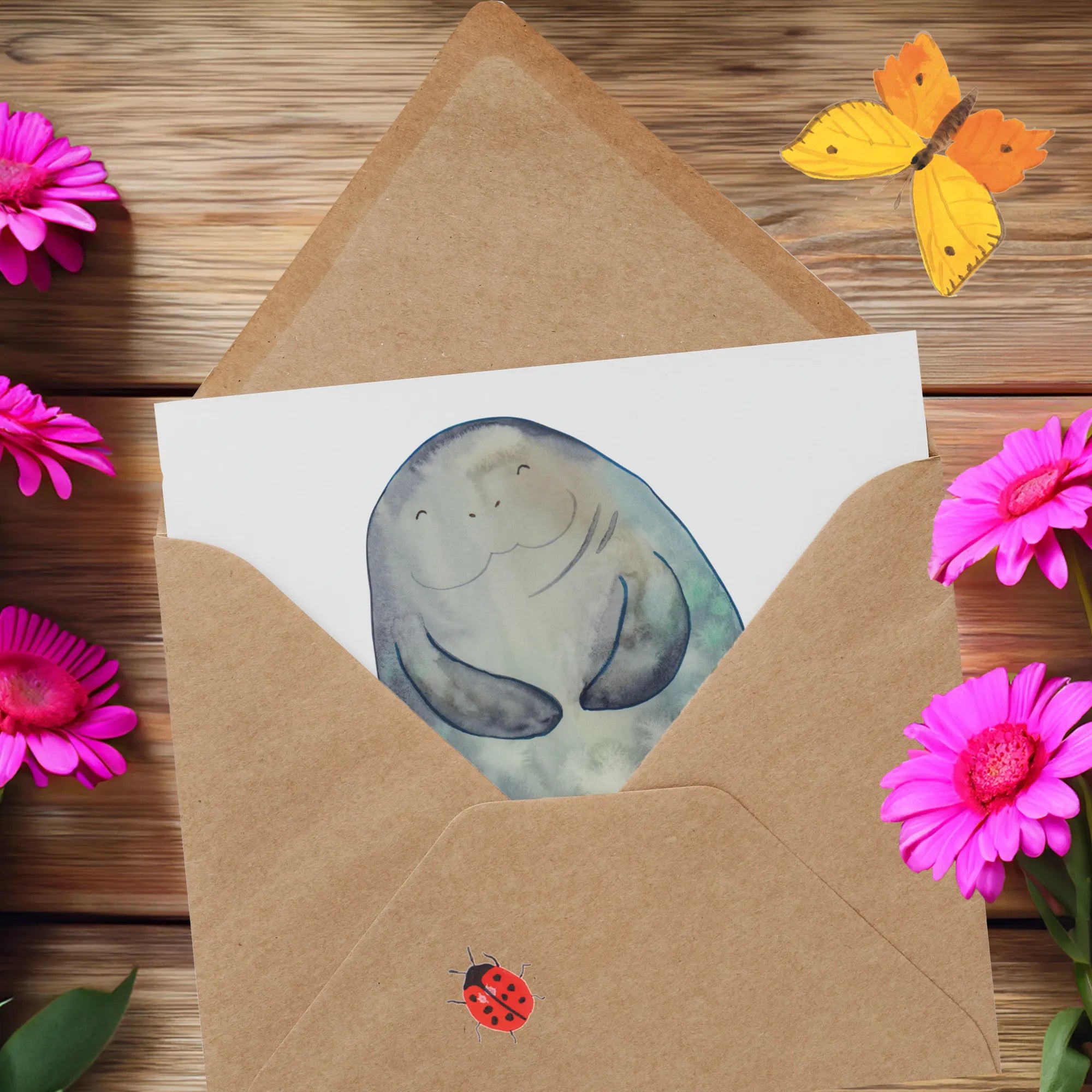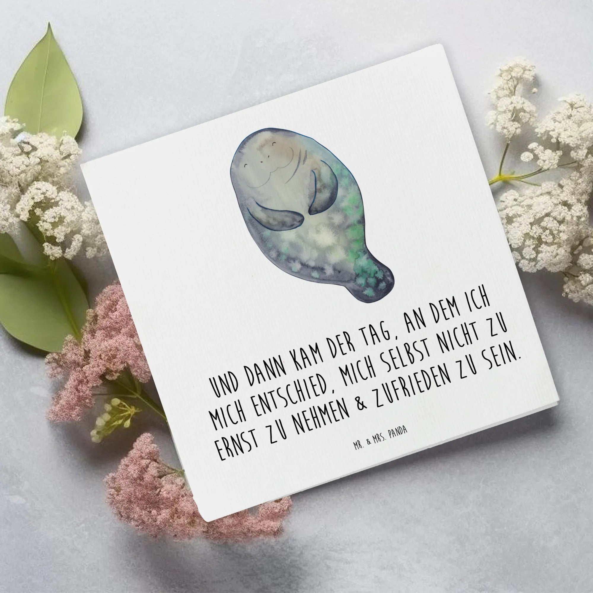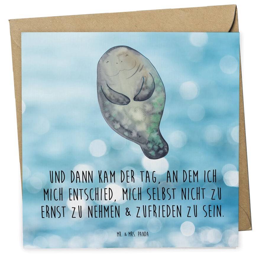 Deluxe Card manatee happy - with a saying - Oceanblue